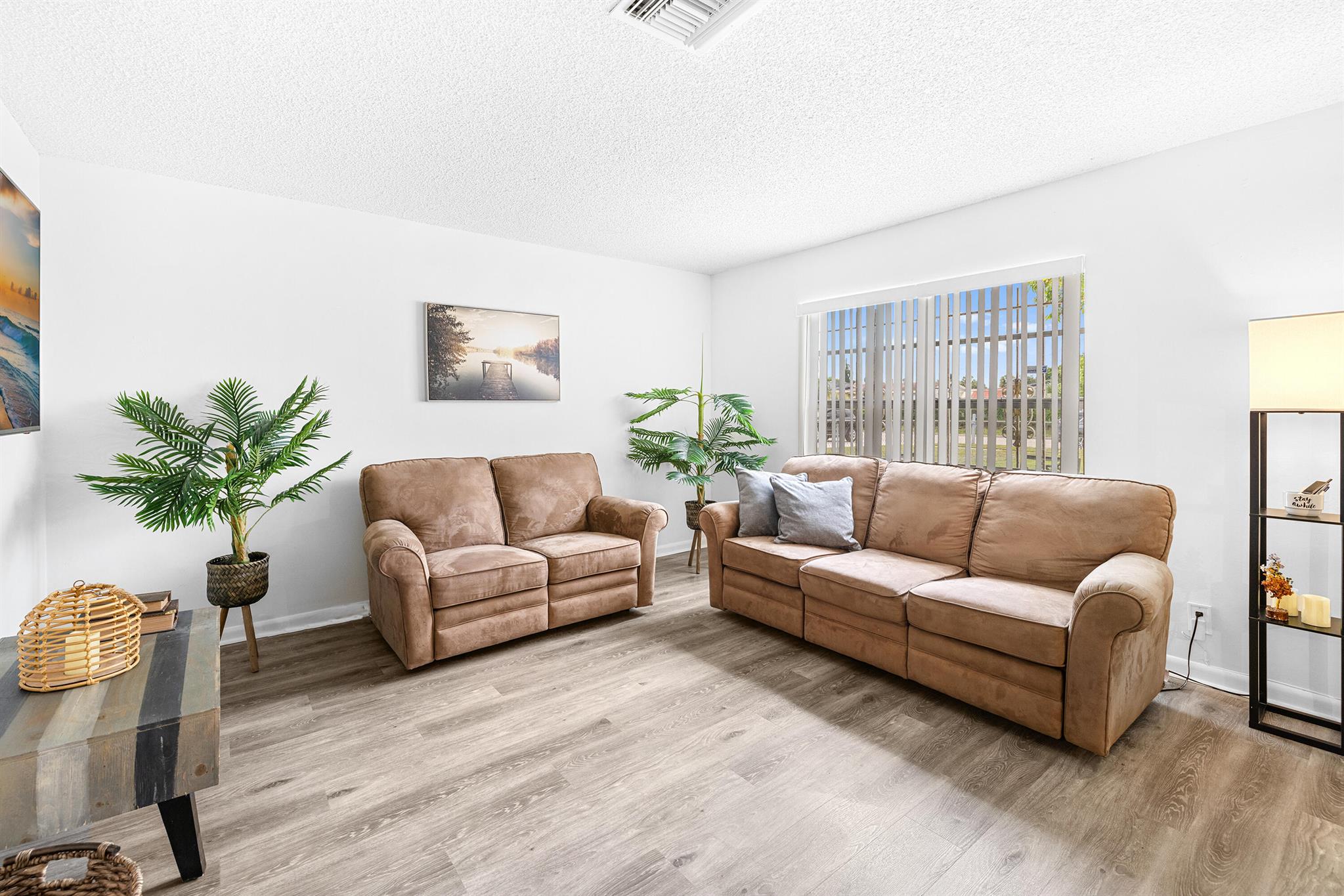 Spacious 3 bedroom plus oversized DEN, 2 bathroom, CBS home on a private 0.17 acre lot, NO HOA! There is brand new LVP flooring in the living room and kitchen (2025), and tile flooring in bedrooms and den. The kitchen was renovated and it is equipped with granite counter tops, low profile microwave, gas stove and shaker cabinets. Notable features include new fire rated impact front and side doors (2025), painted exterior (2024), newer electrical panel (2022), no popcorn, newer toilets and vanities, and tankless water heater (2023). Washer and dryer are inside. Head out to enjoy a fenced-in backyard with plenty of room for a pool. The home is equipped with an alarm and security cameras. The garage was converted into living space. The home is just a short ride away from gorgeous Singer