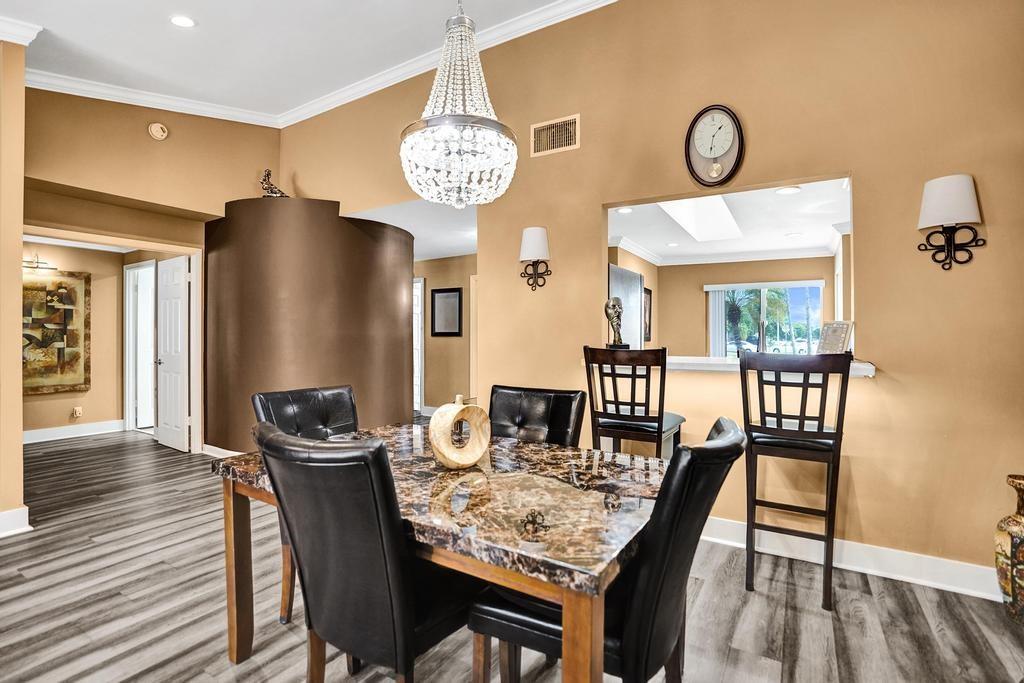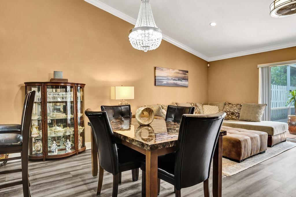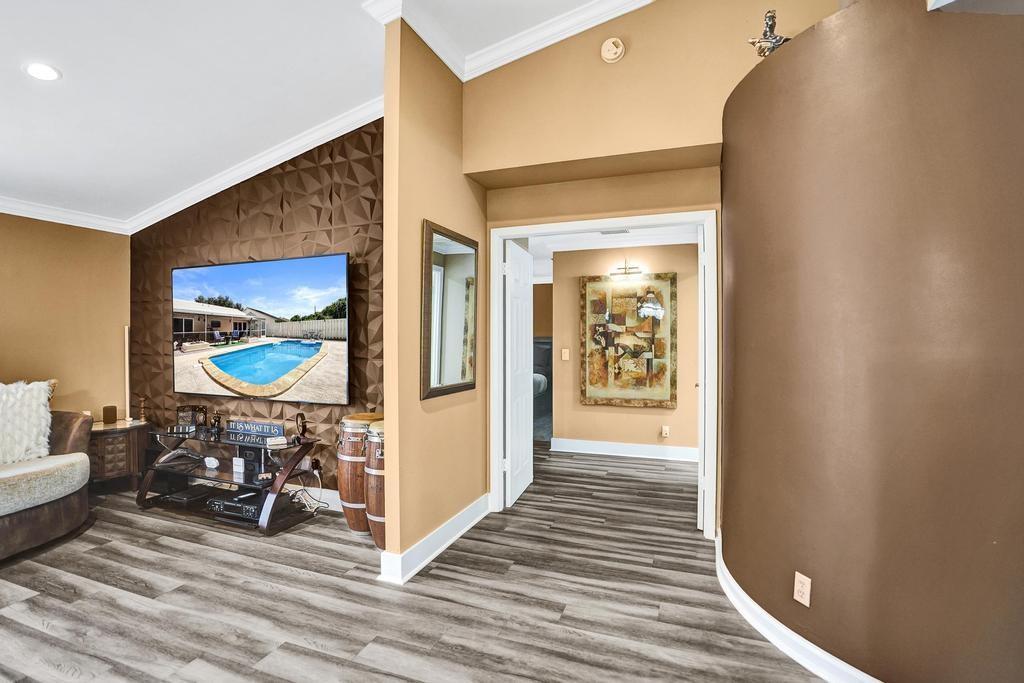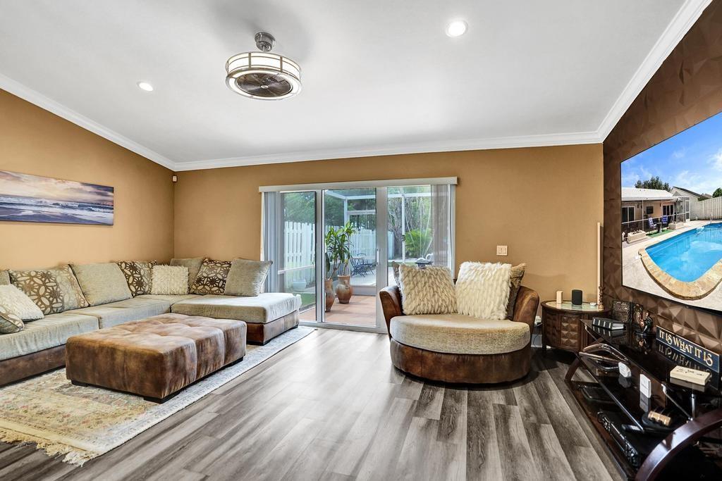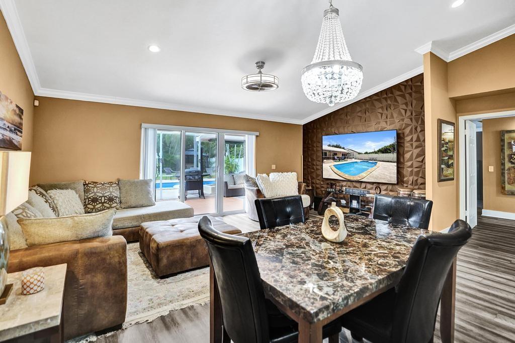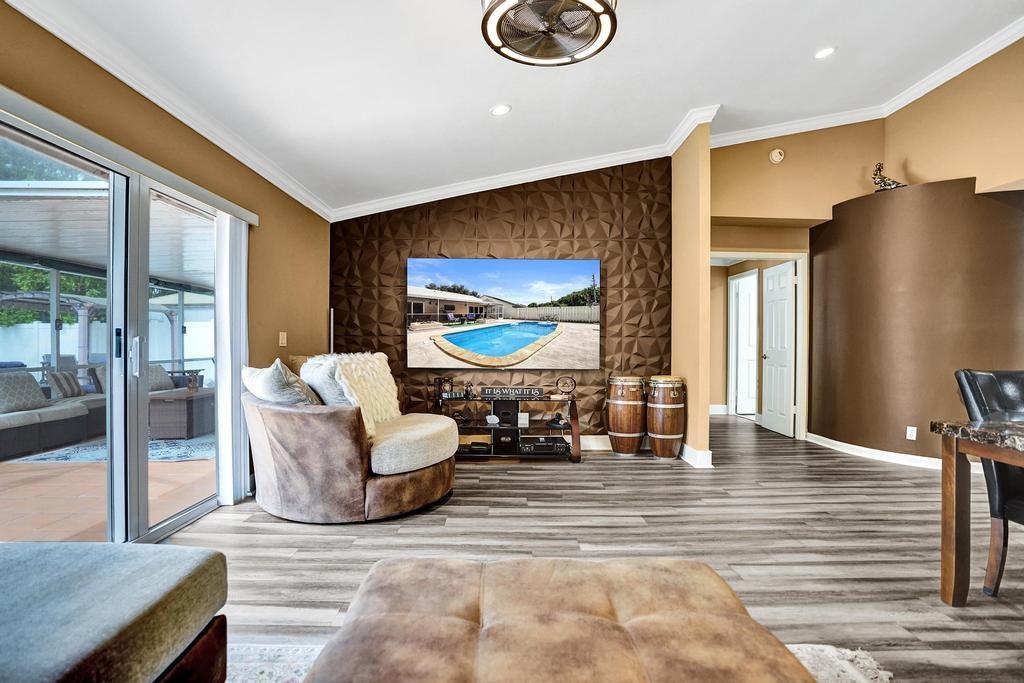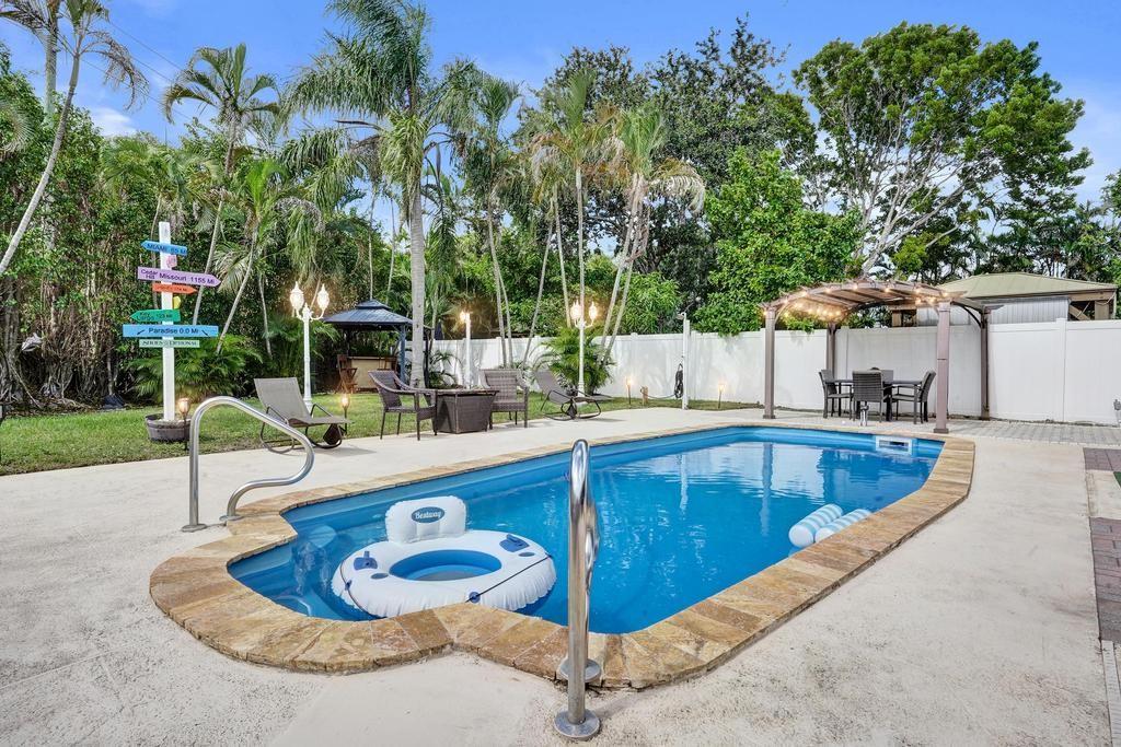 Welcome to your private paradise in Strawberry Lakes! This 3-bed, 2-bath, 2 car garage pool home is designed for entertaining. The backyard is the star, 1 of only 7 in the community with a sparkling pool, tiki hut, & plenty of space to host unforgettable gatherings. Enjoy a covered, screened patio, lush landscaping, & one of the largest lots in the neighborhood. Inside, you’ll find vaulted ceilings with crown molding, recessed lighting, luxury vinyl plank flooring, a modern kitchen & white granite counters, a skylight, & stainless appliances. All windows, doors & sliders are hurricane impact. The primary suite features a double door entrance, an upgraded bathroom with white and blue subway tile, a rain shower, & dual vanities. This home is move-in-ready, ready to host your first party!