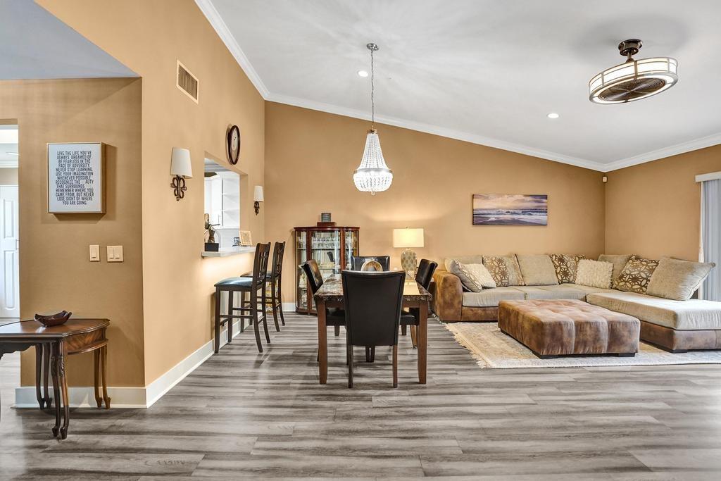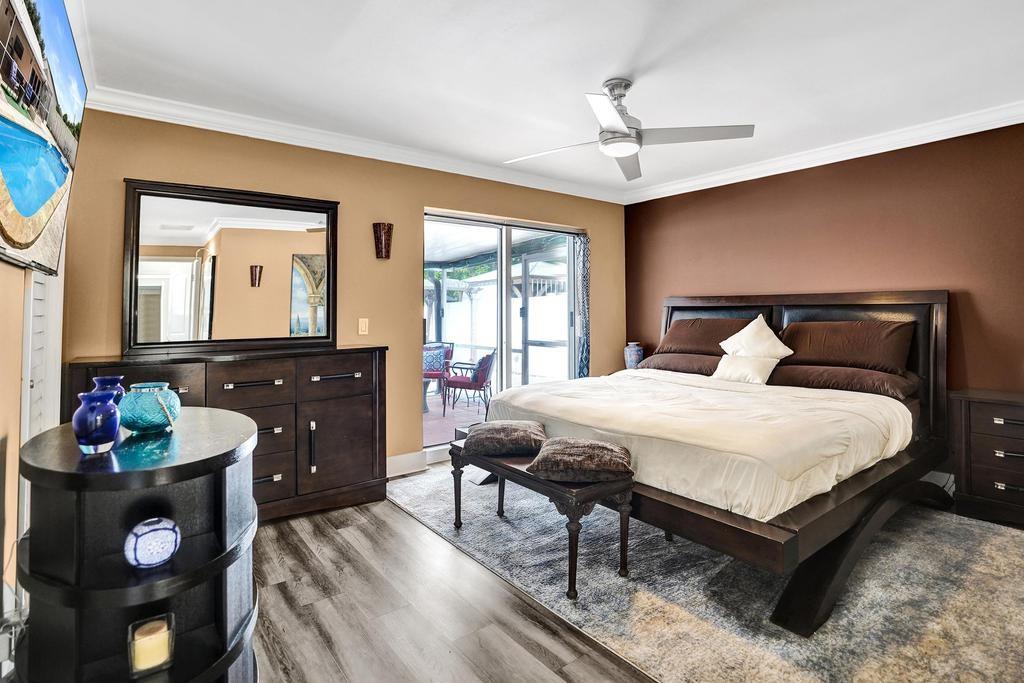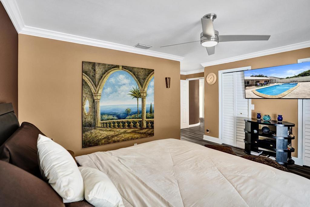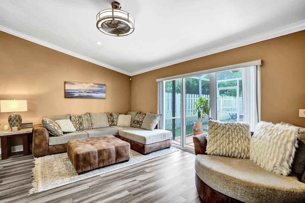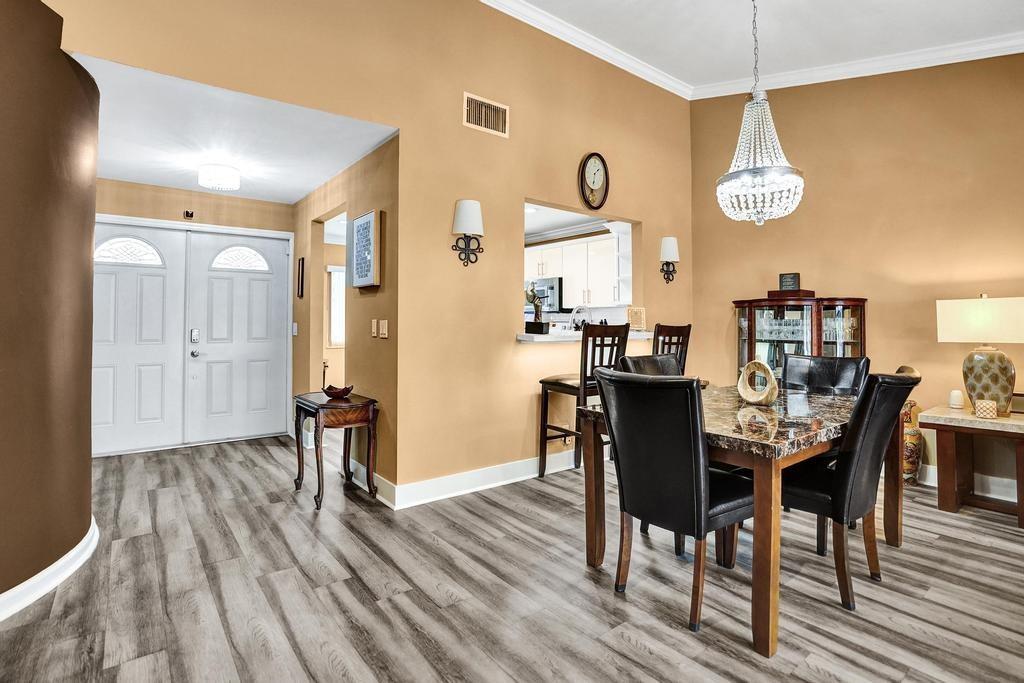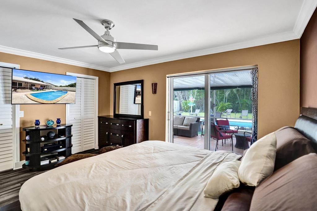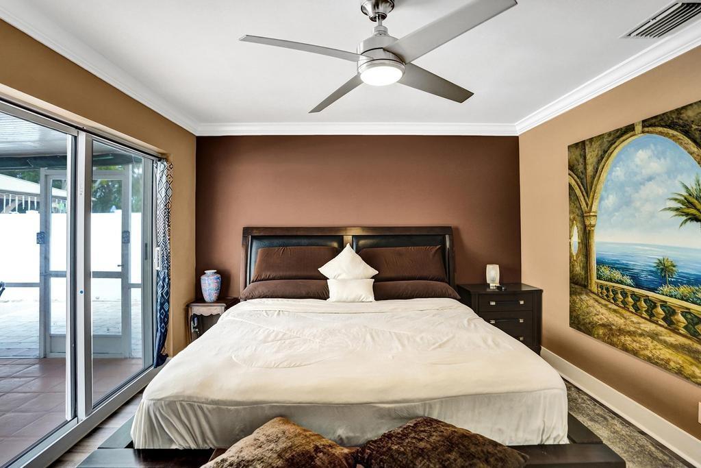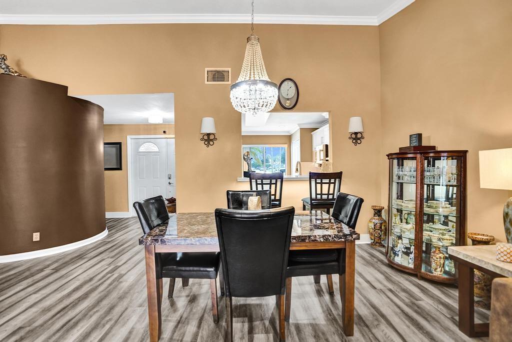 Welcome to your private paradise in Strawberry Lakes! This 3-bed, 2-bath, 2 car garage pool home is designed for entertaining. The backyard is the star, 1 of only 7 in the community with a sparkling pool, tiki hut, & plenty of space to host unforgettable gatherings. Enjoy a covered, screened patio, lush landscaping, & one of the largest lots in the neighborhood. Inside, you’ll find vaulted ceilings with crown molding, recessed lighting, luxury vinyl plank flooring, a modern kitchen & white granite counters, a skylight, & stainless appliances. All windows, doors & sliders are hurricane impact. The primary suite features a double door entrance, an upgraded bathroom with white and blue subway tile, a rain shower, & dual vanities. This home is move-in-ready, ready to host your first party!