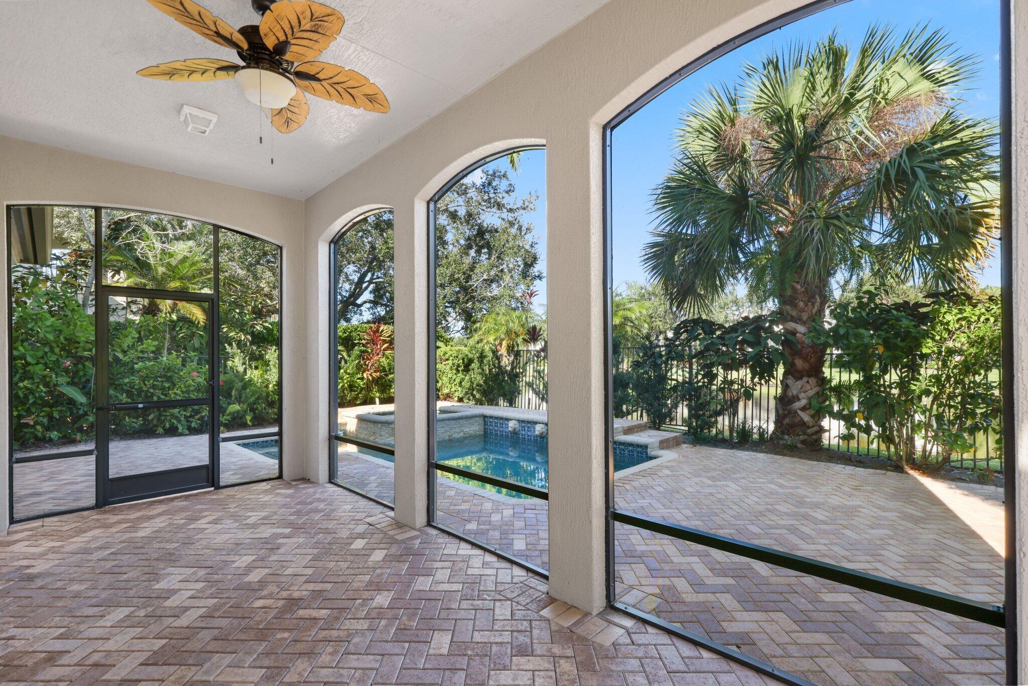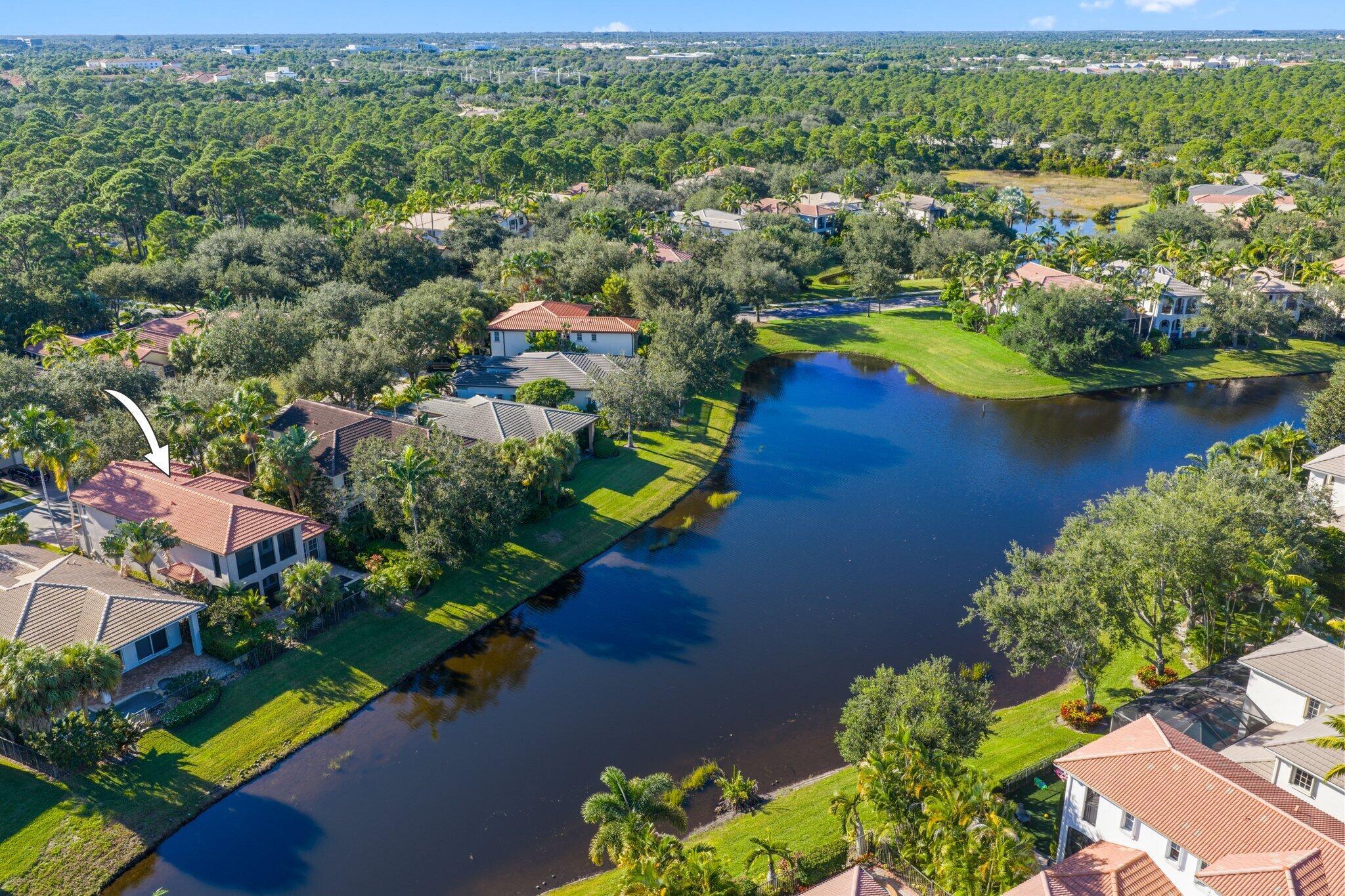 Welcome to 1820 Flower Drive, an elegant 3 bedroom, 2.5-bath lakefront residence located in the prestigious gated community of Evergrene in Palm Beach Gardens. This beautifully updated home offers an open, light filled layout with volume ceilings, wood and tile flooring, and expansive lake views throughout. The chef's kitchen features white cabinetry, gas cooking, and a center island flowing seamlessly to the living and dining areas. Upstairs, a flexible loft space and a serene primary suite with private balcony provide comfort and tranquility. Step outside to a heated pool and spa with screened patio overlooking the lake perfect for entertaining or relaxing in privacy.Residents of Evergrene enjoy 24 hour manned security, a resort-style clubhouse with infinity-edge pool and Tiki Bar,