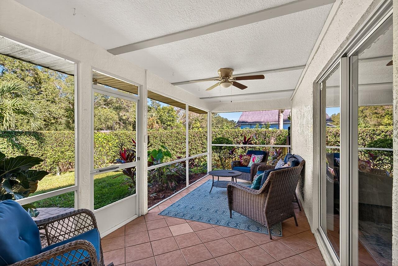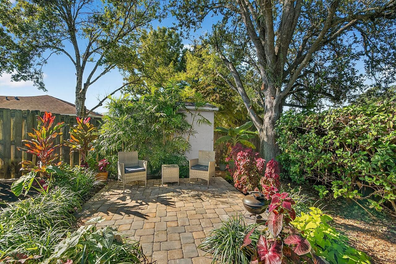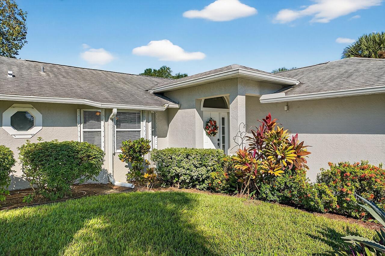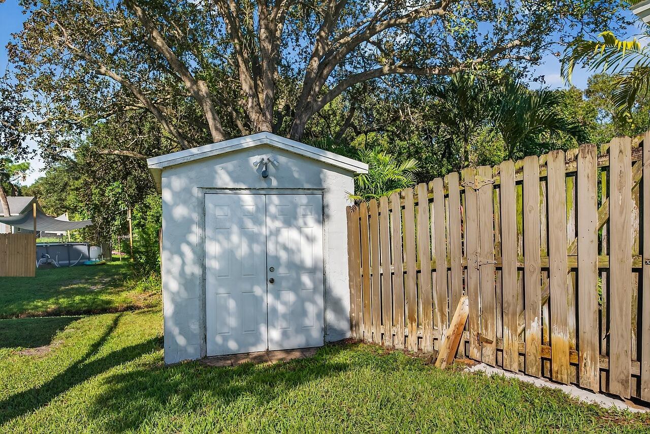 Welcome to your Private Tropical Retreat in desirable Treasure Trail Vero Beach! A rare blend of timeless elegance, comfort, and privacy. This impeccably maintained 3 bedroom, 2 bath, 2 car garage w/ storage shelving CBS home - Not WOOD FRAME- is perfectly situated in one of Vero Beach's most sought after LOW HOA neighborhoods, known for its charm and tranquility. Crafted with enduring CBS construction. Not wood frame! This home rests on a lush, oversized fenced in lot framed by mature, colorful and manicured landscaping, creating a peaceful sense of seclusion. Follow the beautifully paver stone walkway to the expansive screened lanai, ideal for morning coffee, al fresco dining, or evening gatherings under the palms. Inside, a thoughtfully designed split-bedroom