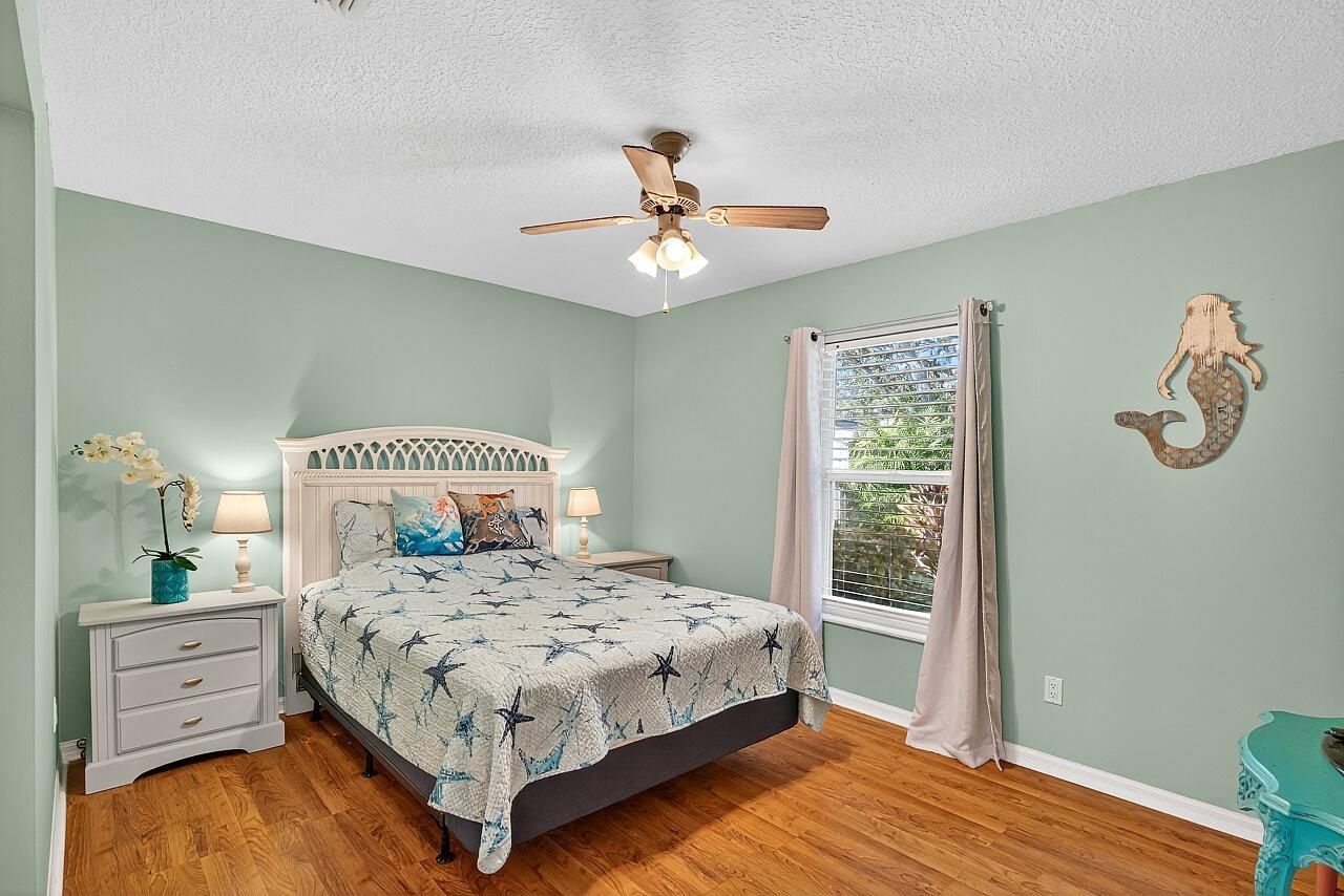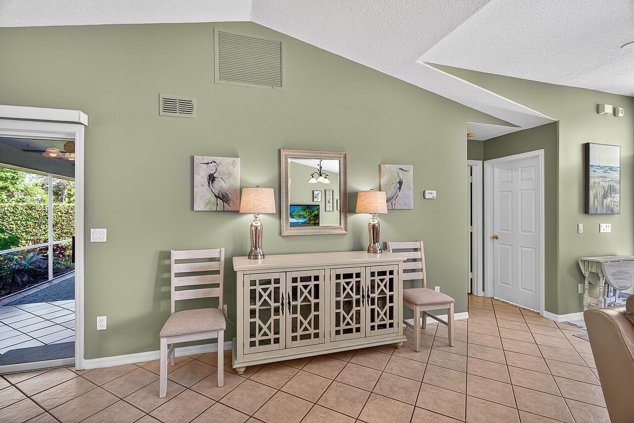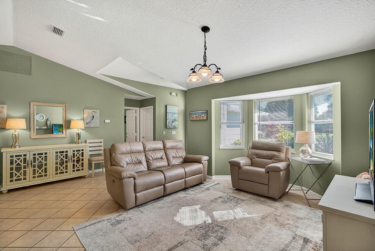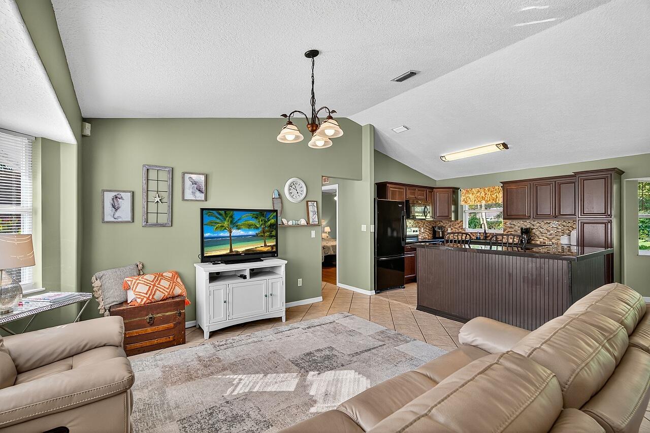 Welcome to your Private Tropical Retreat in desirable Treasure Trail Vero Beach! A rare blend of timeless elegance, comfort, and privacy. This impeccably maintained 3 bedroom, 2 bath, 2 car garage w/ storage shelving CBS home - Not WOOD FRAME- is perfectly situated in one of Vero Beach's most sought after LOW HOA neighborhoods, known for its charm and tranquility. Crafted with enduring CBS construction. Not wood frame! This home rests on a lush, oversized fenced in lot framed by mature, colorful and manicured landscaping, creating a peaceful sense of seclusion. Follow the beautifully paver stone walkway to the expansive screened lanai, ideal for morning coffee, al fresco dining, or evening gatherings under the palms. Inside, a thoughtfully designed split-bedroom