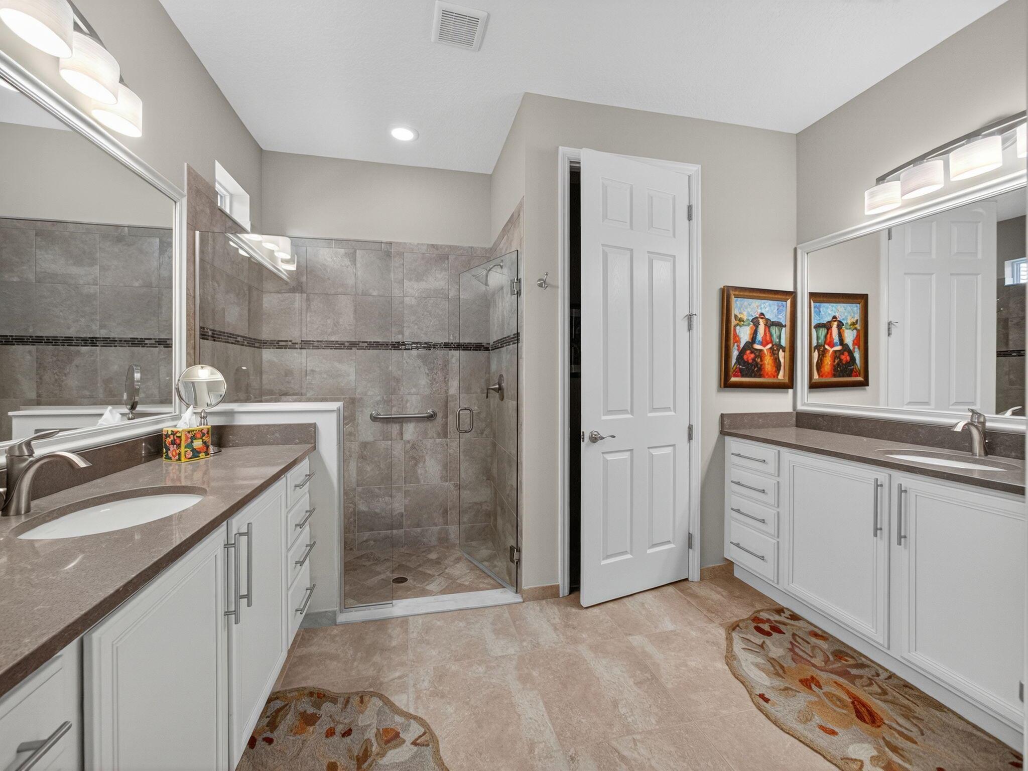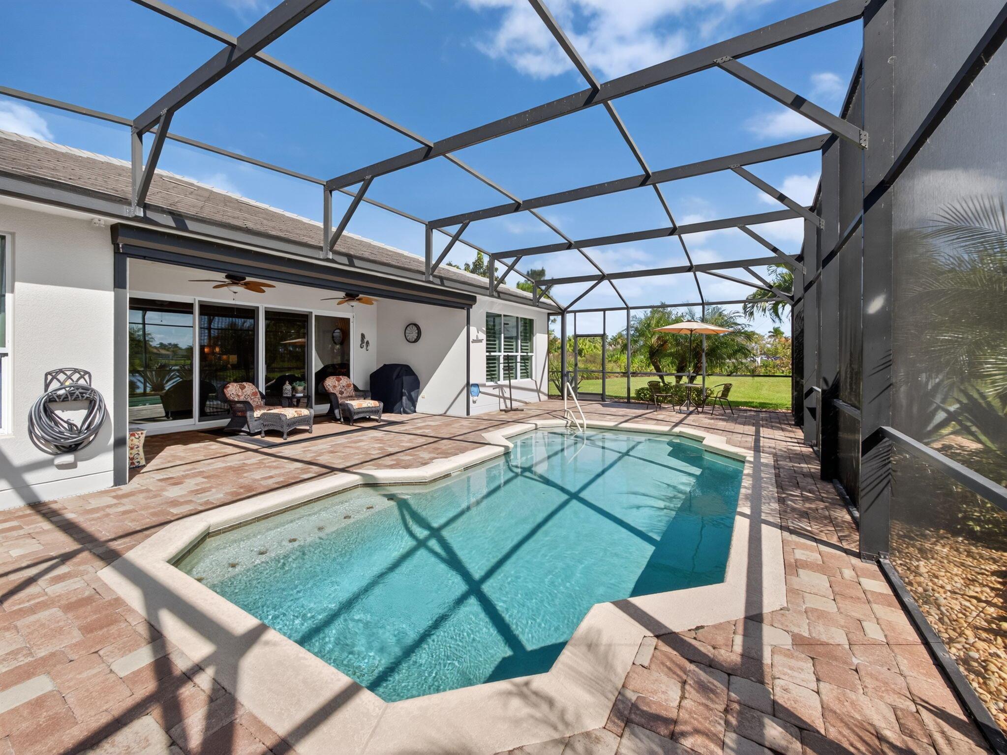 This Immaculate Limited Edition 'SpaceCoast' w/Pool & Lake has a Gated Courtyard w/ separate entrance to the Casita w/ Closet & Full Bath; Perfect for 4th Bdrm, Office, Hobby Rm or Man Cave. This is an exceptionally private & unique lot w/ Special Lake Views. Featured is Full Impact Glass, Screened Lanai w/Solar-Heated Pool, Automatic Roll Down Hurricane Protection, Dual Master Suites, Formal Dining Rm, Ceiling Fans, Upgraded Light Fixtures & Closets, Raised Wall Detail, Crown molding, Extensive Landscaping. Kitchen features Wall Oven & Microwave, Gas Stovetop w/ SS Hood, New Granite & Subway Tile Backsplash, Under-Cabinet Lighting, Pantry,