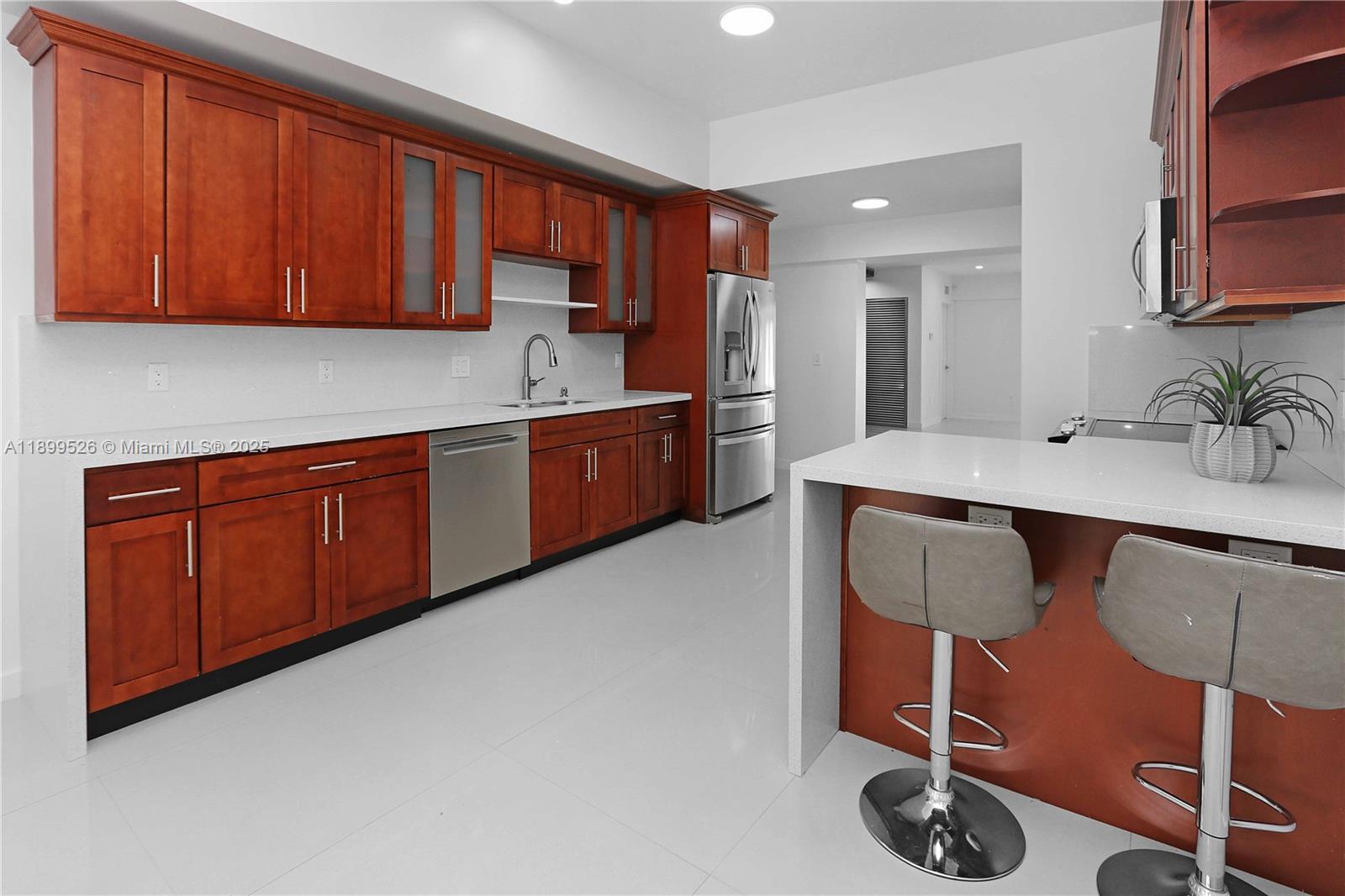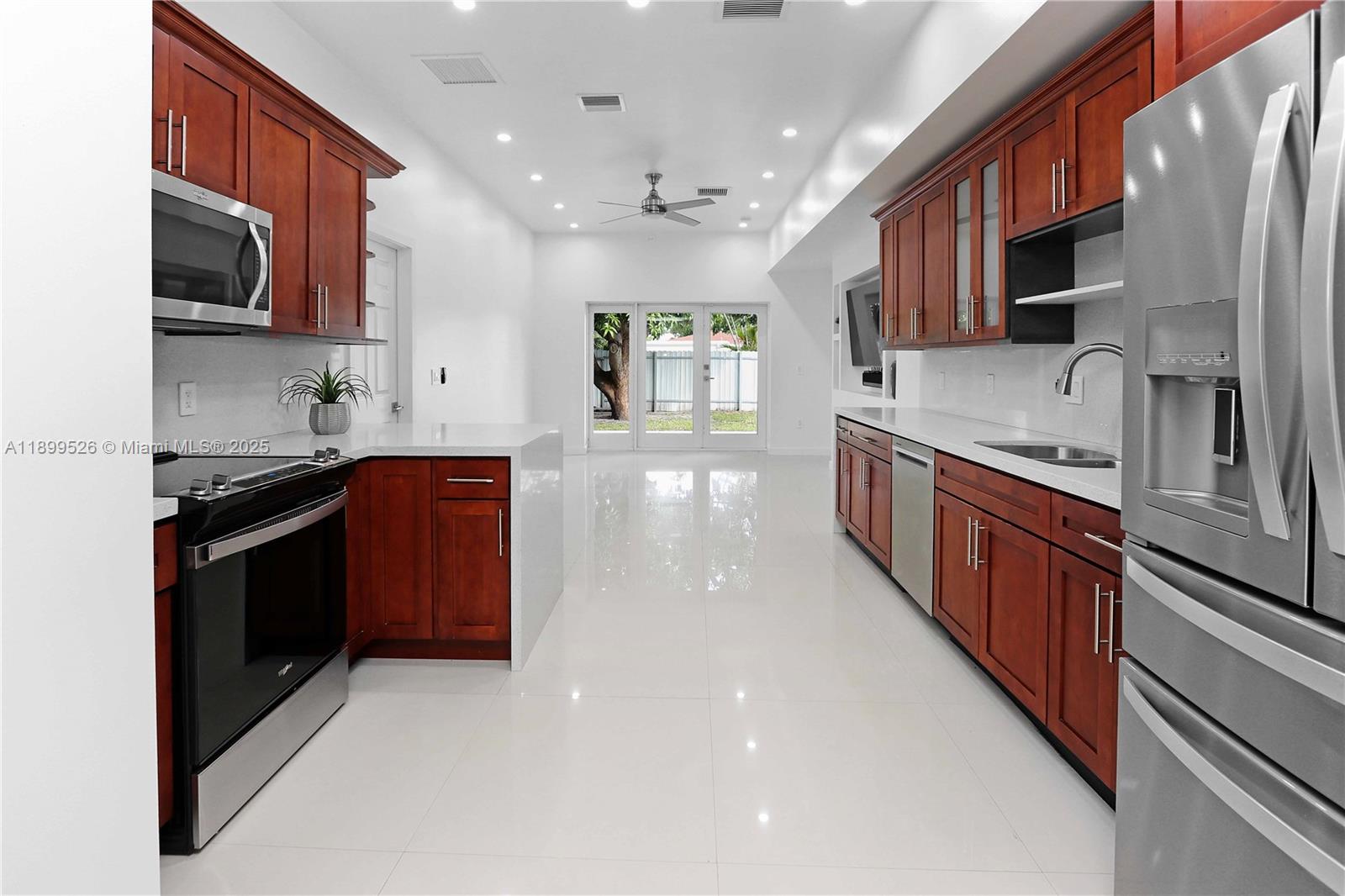 Spacious and beautifully designed, this 4-bed, 4-bath home spans over 2,700 sq ft. An open layout w/ high vaulted ceilings, sleek 31x31 porcelain tile floors, recessed lighting through out & an abundance of natural light. A chef’s kitchen features quartz counters with a waterfall edge, stainless double sink, newer appliances, & a large pantry. Two primary suites include elegant baths with rain showers and glass enclosures, while a Jack-and-Jill bath connects addt'l bedrooms. Key features: Impact windows/ doors, a new roof, newer A/C units, & hardwired security system. Outside, you'll find beautiful curb appeal, a covered front porch, large circular driveway, a fenced backyard with room for a pool.