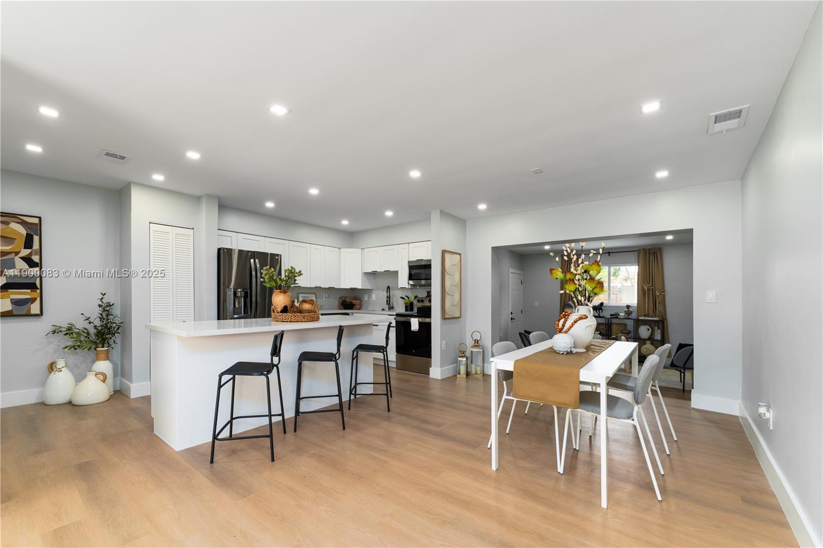 Completely remodeled home with brand new electrical, plumbing, windows with shutters, and impact doors. Open concept layout with a spacious kitchen designed for entertaining, new flooring, brand new bathrooms, and modern appliances. The massive master suite includes a private entrance. The backyard is large with mature fruit trees and plenty of space for gatherings. Roof and A/C are only 3 years old. The property also features a fully remodeled 1 bedroom 1 bath apartment with a private entrance, perfect for in-laws or rental income. This is a must-see property that offers style, comfort, and instant cash flow.