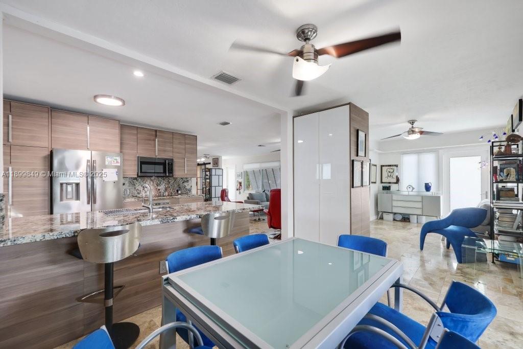 Upscale WATERFRONT home with mid-century flair in the hidden gem of Melaleuca Gardens! Enjoy total privacy on a spacious lot with an open concept layout, marble floors, high-end European cabinets, and massive windows flooding the space with natural light. Versatile den with attached bath can easily convert to a 2nd bedroom. Kitchen is perfect for entertaining with ample storage. Remodel in the last few years include roof, paint, impact/soundproof windows & doors, electrical panel, and A/C ducts, Heated pool and water heater. Relax on the screened porch or dock your boat (fits 45'+) at the shared dock with 100 feet of seawall. For boaters - Ocean access minutes to intercoastal and inlet. Beautiful gardens. Boat/RV parking, carport. Close to the airport, shopping, beach, dining & more!
