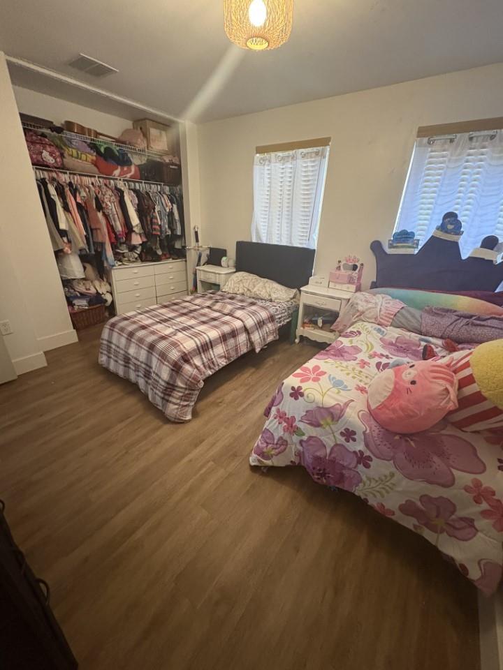 Highly Sought-After Madison Green Gated Community. This 4-bedroom, 3-bath home with a 2-car garage offers stunning garden and pond views. Step inside to discover soaring vaulted ceilings, a charming bay window, tile & wood flooring throughout, and a spacious master suite with walk-in closets. The fenced backyard has plenty of room to add a pool, and the home is equipped with exterior shutters for added protection. Resort-style living with amenities, including excercise room,pickleball & basketball courts, community pool, clubhouse, and more. The HOA fee is $247/month and includes high-speed internet, basic cable, and landscaping for common areas. Don’t miss your chance to own this modern gem in one of the area's most desirable communities!