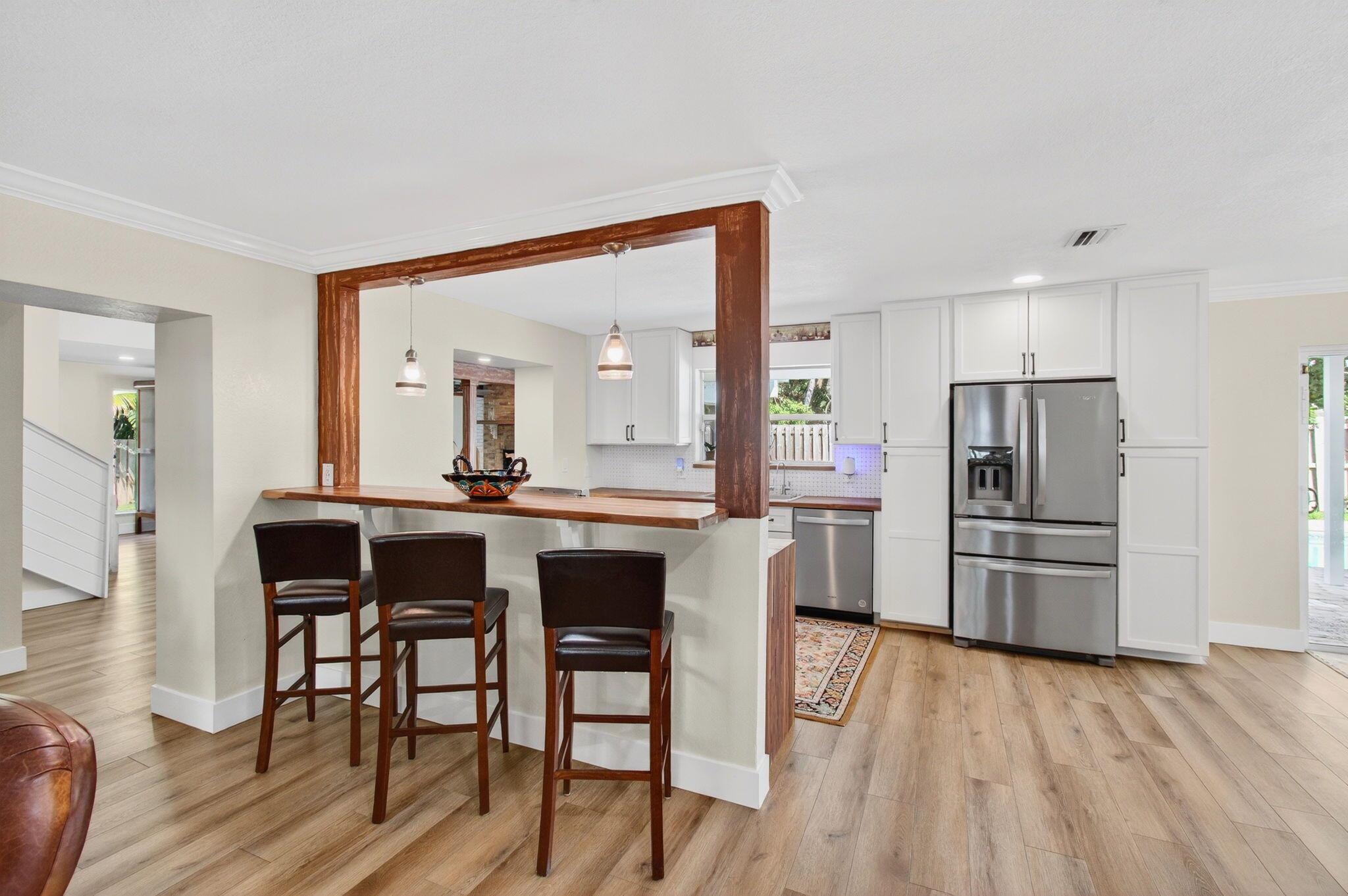 Welcome to 920 Lighthouse Drive, a spacious and updated two-story home located in the highly sought-after Village of North Palm Beach. With over 3,200 sq ft & plenty of room for Boat or RV Storage, this 4-bedroom, 3-bathroom residence offers the perfect combination of comfort, function, and Florida charm.Step inside to discover a thoughtfully updated open-concept kitchen featuring all new appliances, a dedicated breakfast area, and seamless flow into the living and dining spaces. The main floor includes a full cabana bath and a versatile fourth bedroom that also works perfectly as a home office or guest suite. Upstairs, the expansive master suite boasts a fully remodeled spa-like bathroom with a 5x7 walk-in shower, dual vanities, a linen closet, and a large custom walk-in closet.