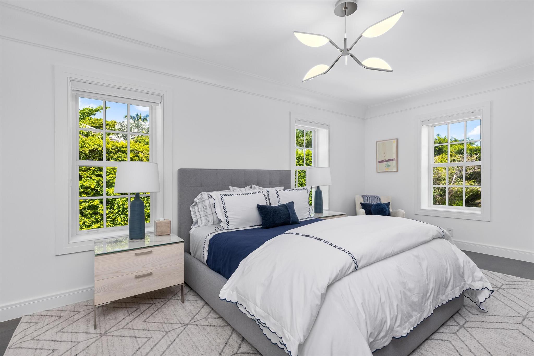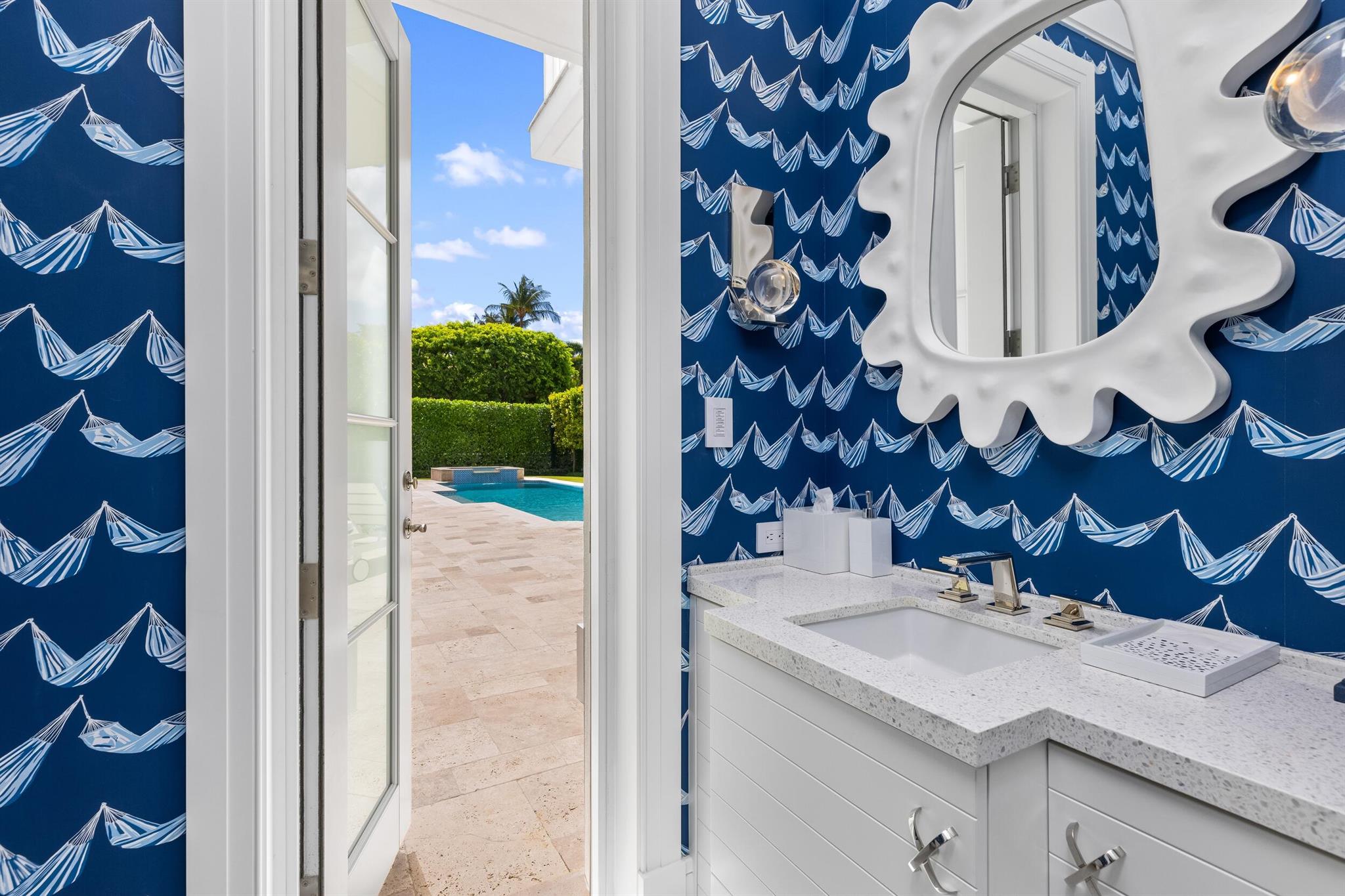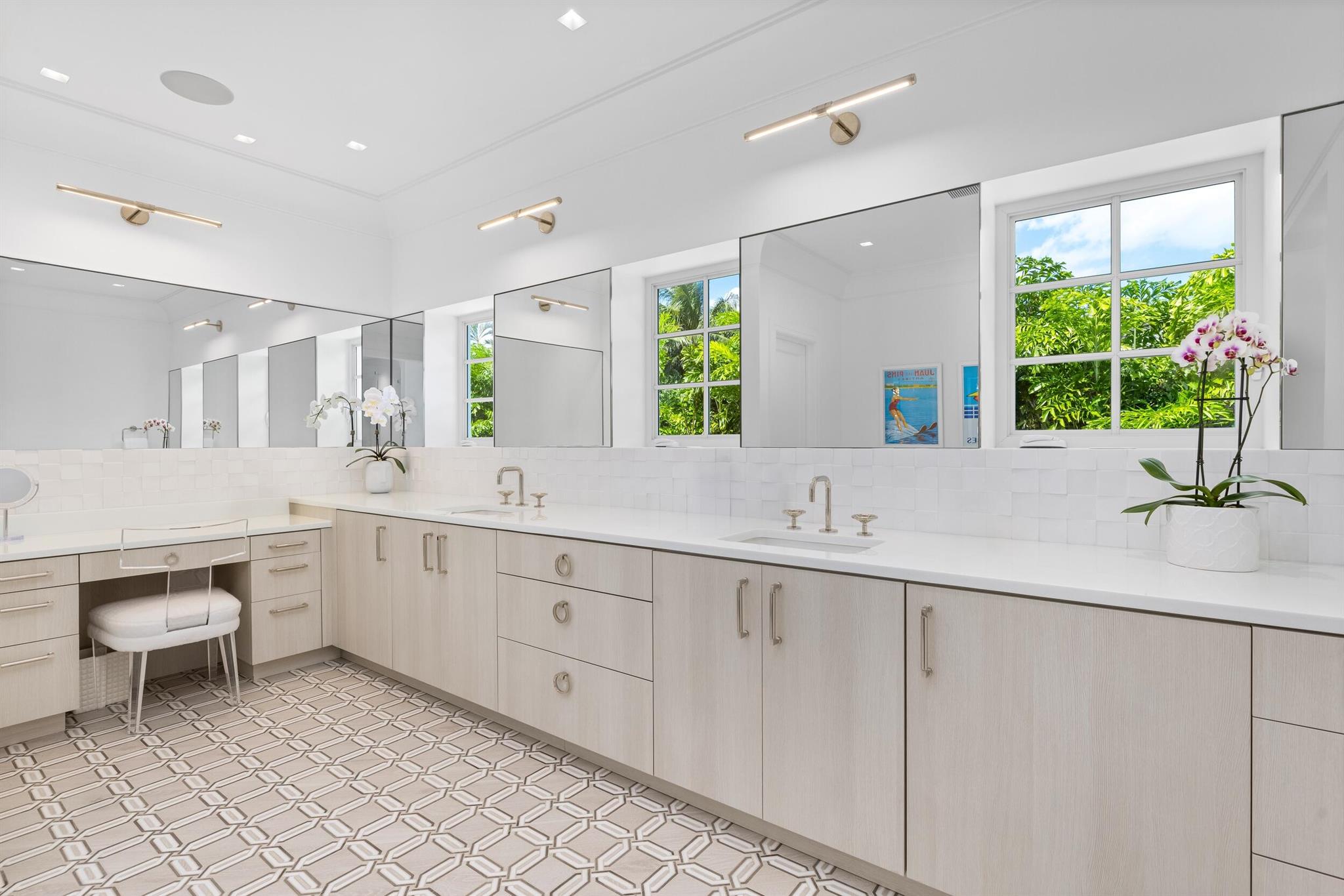 Stunning and pristine 5BR/5.2BA Georgian home beautifully renovated in 2022 with 7,500+/- square feet. Gorgeous and sophisticated marble and hardwood finishes throughout. Thoughtful interior design by Kenny Alpert. Immaculate landscaping surrounding fabulous backyard with resort-style pool, spa, and oversized loggia with fireplace. Living room features fireplace and stunning bar with wine fridges. Top-of-the-line eat-in kitchen with chef's island, wine fridge, and beautiful detailing. Sunny library with built-in shelving. Soaring ceilings, impact windows, and generator. Fantastic Estate Section location with beach access.