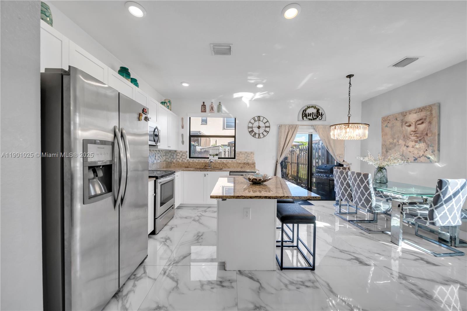 Beautiful 2019-built corner-unit townhouse with very low HOA fees! This spacious 3-bedroom, 3-bath home offers an open-concept layout with a modern kitchen, granite countertops, and a large granite island perfect for entertaining. Fully tiled with laminate in select areas, it blends style and comfort effortlessly. Two bedrooms feature elegant glass-enclosed standing showers. Enjoy outdoor living with a private fenced patio. Washer and dryer conveniently located on the second floor. Tile roof, 2 assigned parking spaces, and move-in ready condition! The low-maintenance HOA fee of $236.44 includes landscaping and rodent pest control. Community amenities include a pool, gym, clubhouse, kids play area and country club—offering resort-style living at an incredible value!