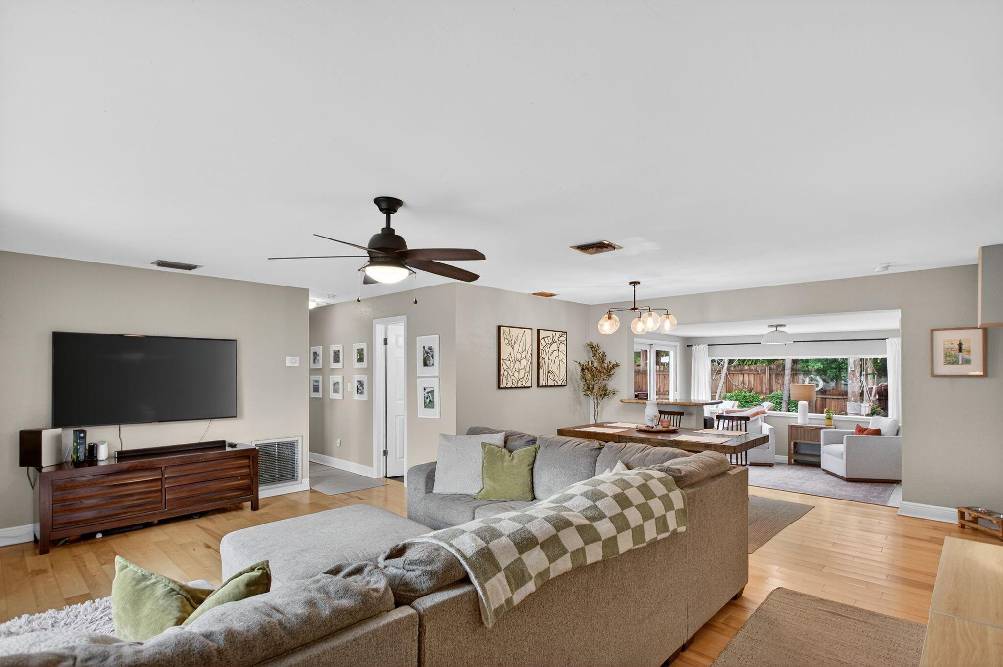 Welcome home to a move-in-ready South Florida retreat where every detail has been upgraded for comfort, style, and peace of mind! This 3-bedroom, 2-bath pool home offers an inviting feel from the moment you walk in bright, open, and thoughtfully designed for effortless everyday living. Inside, wood and tile flooring flow throughout no carpeting anywhere. The semi-split floor plan provides versatility, with the primary suite and guest room on one side and a third bedroom privately tucked off the den. The updated galley kitchen features modern Samsung appliances and connects seamlessly to the dining and living areas for easy entertaining.Both bathrooms were fully remodeled to the studs with quality finishes and new underground plumbing! Message me to see!