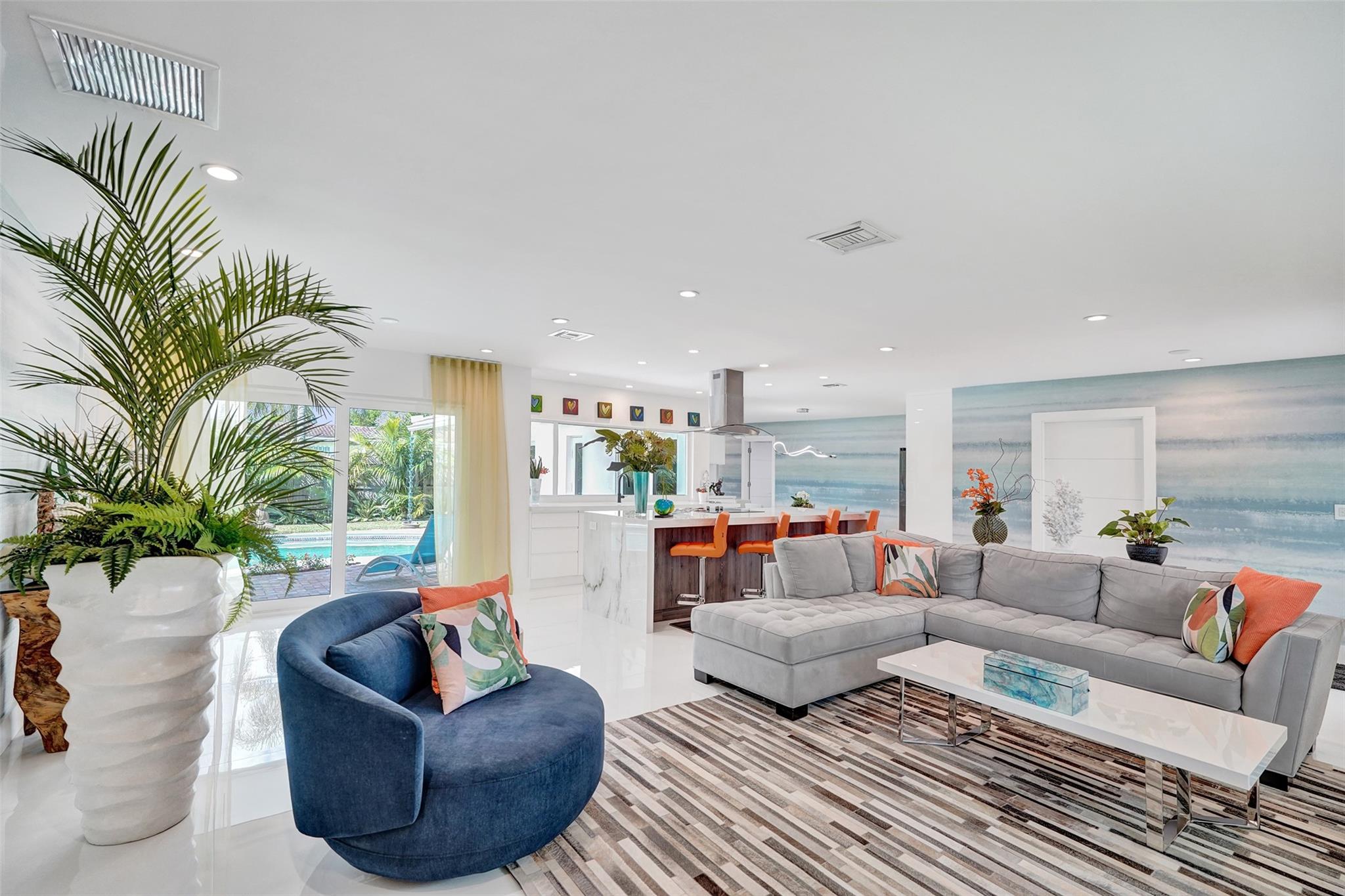 Gorgeous Imperial Point Renovation! This expansive estate home features 4 spacious bedrooms & 3 beautifully appointed bathrooms, including a versatile In-Law/Teen/Rental Suite with private exterior access & kitchenette. Complete interior update in 2021 included open living/kitchen layout with huge island, porcelain waterfall countertops, all bathrooms, white porcelain floors, Philip Jeffrey custom textured wallpaper, custom lighting, AC, electrical, & PVC drainage plumbing. California Closets & custom storage throughout. All impact windows/doors, roof was just professionally cleaned, sealed, & painted. Fresh landscaping front & back, mature Mango tree, auto well irrigation! Large garage with epoxy flooring + even more storage. Sonos, FRAME TV, and portable generator included in sale.