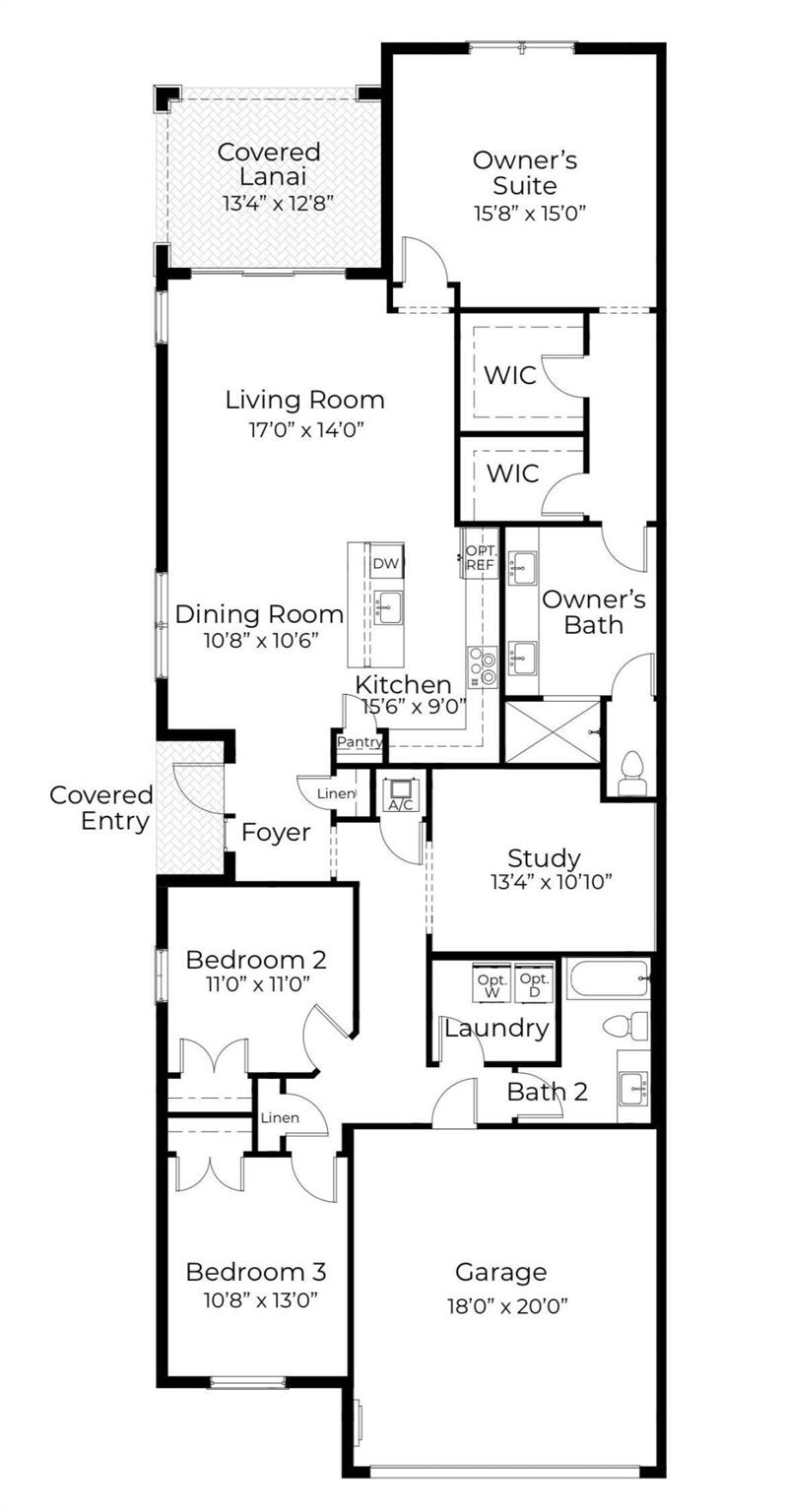 Welcome to this spotless 3-Bed + large Den, 2-Bath, 2-car garage villa on a large lot. Staggered ceramic tiles throughout (no carpets!), quartz countertops, and light kitchen cabinets create a modern and clean look. Two walk-in closets, hers with custom wardrobe cabinets, double sinks in the master, laundry room with extra cabinets. Reinforced, insulated garage door, impact windows throughout. N-S orientation, with an oversized screen-enclosed patio facing north. Large common area at the back, 20 miles of scenic trails, fishing pier, boat launch ramp, tennis, basketball, pickleball, soccer field, 2-level pool, hot tub, gym. Organic farm, new K-5 school within walking distance. Come to the resort-like community of Arden and enjoy life in a meticulously maintained, comfortable home.