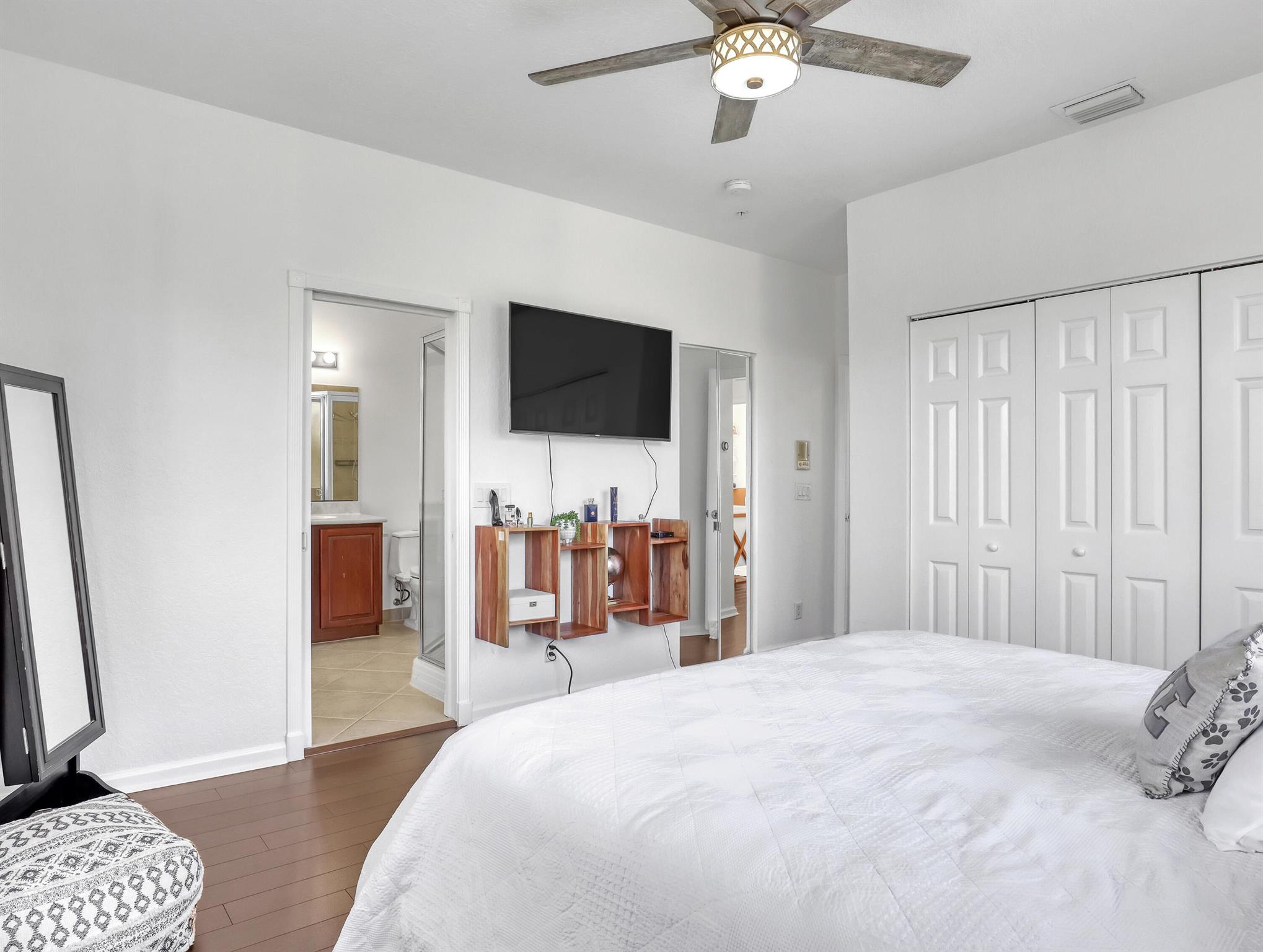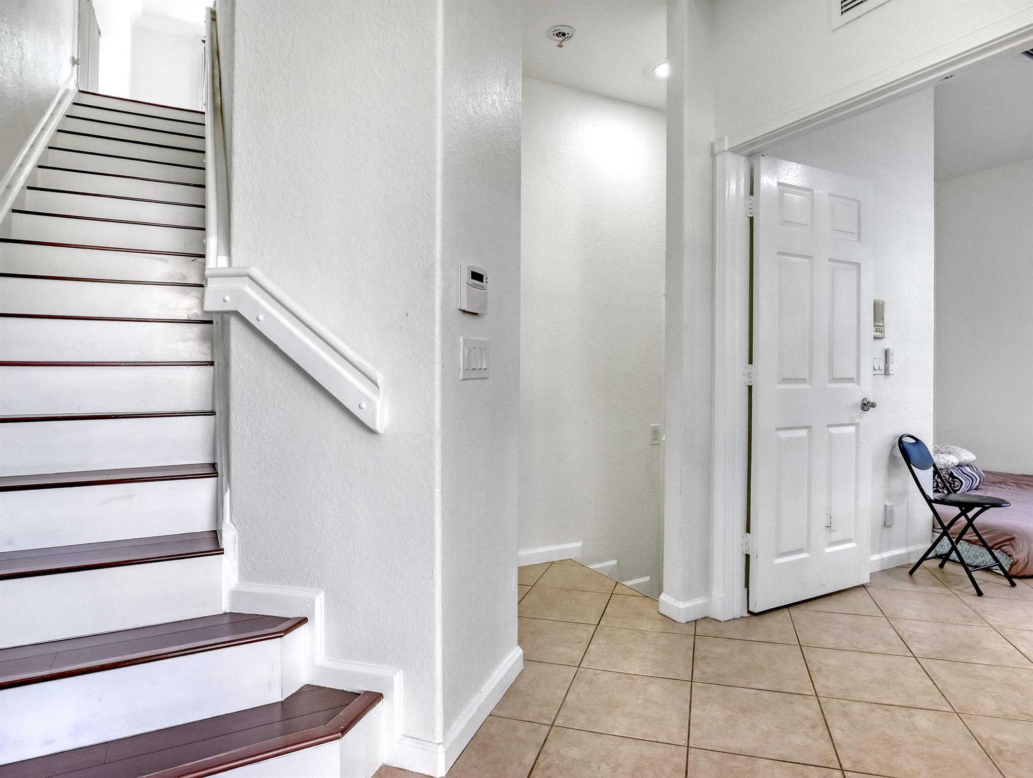 Welcome to Parkside Square, a hidden gem in Boynton Beach. This beautifully maintained 3-story end-unit townhome offers 3 bedrooms plus a den, 2.5 baths, and a 2-car garage with over 1,800 sq. ft. of bright living space. Enjoy an open-concept second floor with a spacious living and dining area, island kitchen with wood cabinetry, stainless steel smart appliances, and a covered balcony with tranquil views. The primary suite features dual vanities, a soaking tub, separate shower, and walk-in closet. Updates include new AC (2024), washer/dryer (2024), hurricane shutters, updated bath, epoxy garage floor, garage mini-split, fresh paint, and new lighting. Low HOA with pool, gym, pickleball, basketball and playground. Close to shopping, dining, I-95, and beach.