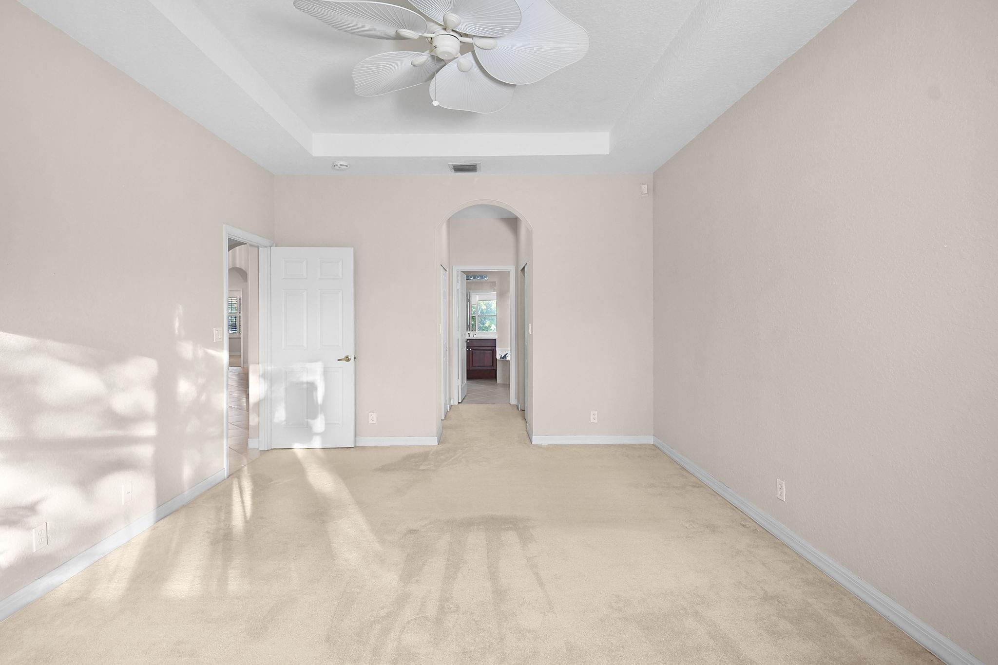 Located on a quiet cul de sac street; this beautiful home has 3 bedrooms, 2 bathrooms, vaulted ceilings, open living and dining area. The split bedrooms floorplan offer privacy for each occupant. The spacious primary bedroom has tray ceilings and 2 walk-in closets. Enjoy all that Florida nature has to offer while sitting in the huge screen lanai. This gated community offers: resort style pool, tennis and pickle ball courts, gym in the clubhouse and several activities organises by residents. HOA of $590 quarterly include: basic cable and internet, access to all amenities and on site manager on weekdays. Capital contribution: $1500. Summerfield Application: $200. The golf course is pay as you play. Located close to all services, beaches and I-95. A must see before you buy in the area!