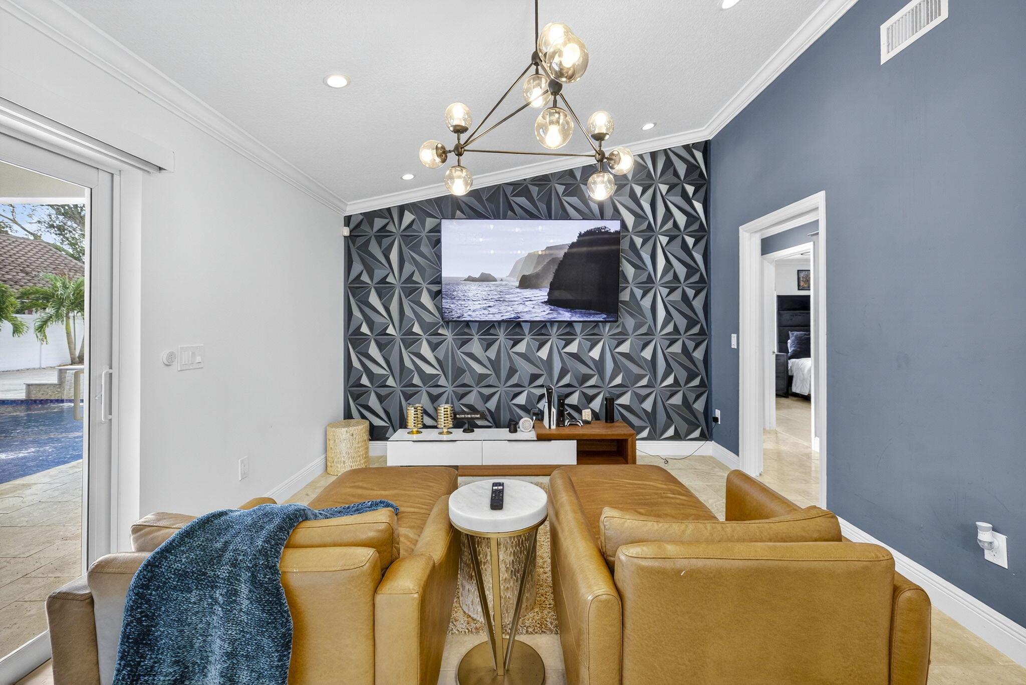 A Perfect Blend of Modern Elegance & Effortless Comfort.Welcome to a residence where thoughtful upgrades, refined design, and smart technology come together to create a lifestyle of sophistication and ease. This beautifully updated home showcases quality craftsmanship and exceptional attention to detail inside and out.From the moment you arrive, you'll appreciate the privacy wall and paver-lined driveway that frame the home's elegant exterior. The 2019 roof and impact windows ensure peace of mind, while the covered gutters and Trane 4-ton A/C (installed 2023)--professionally serviced by Hi-Vac and controlled directly from your phone--add convenience and reliability.