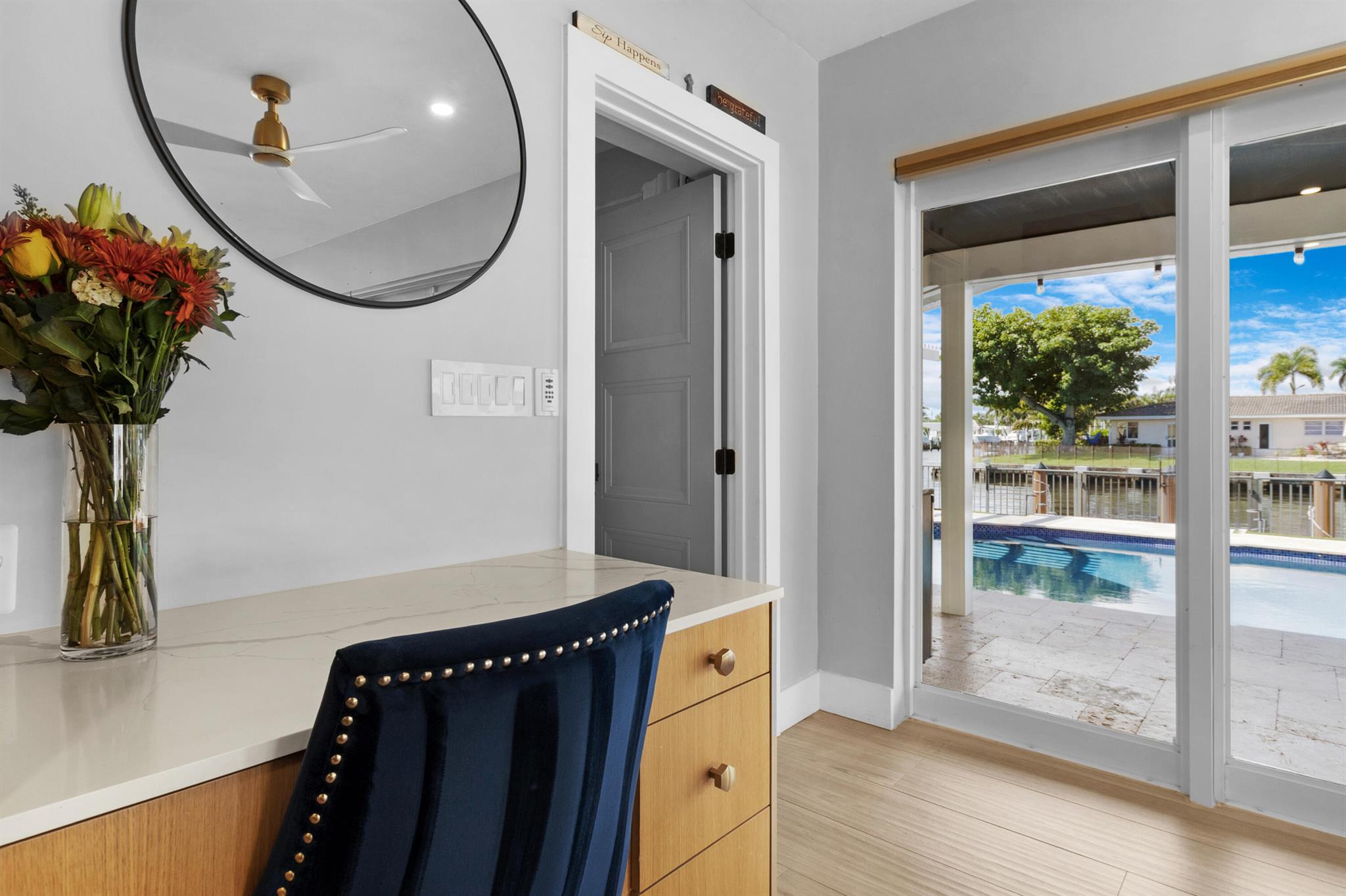 Welcome to this exquisite waterfront residence where luxury living meets modern comfort in one of Pompano Beach's most sought-after neighborhoods. Boasting 75 feet of prime waterfront, this fully remodeled 3-bedroom, 3-bathroom home embodies the ultimate South Florida lifestyle.Inside, the open-concept design blends sophistication and ease. Large impact glass windows fill the home with abundant natural light while providing peace of mind during storm season. The custom chef's kitchen is both stylish and functional, featuring Quartz countertops, a coffee bar, gas stove, and upgraded stainless-steel appliances--perfect for everyday living and entertaining.The primary suite offers a serene retreat with a spacious master bathroom that includes dual sinks, a private enclosed area
