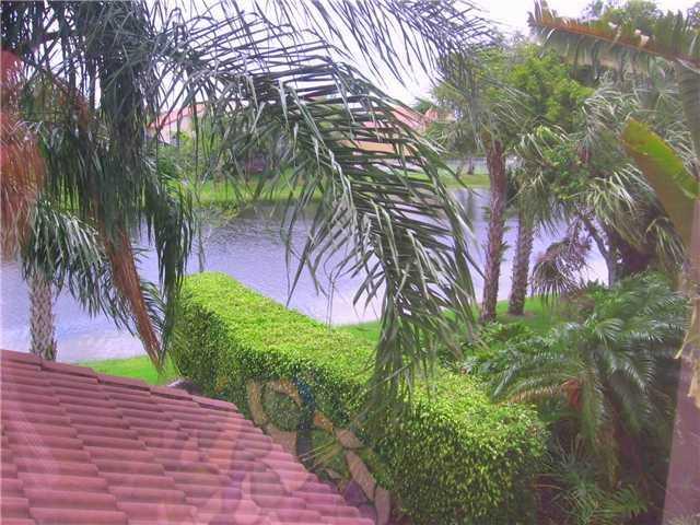 Dramatic 2 story volume & cathedral ceilings w/ tranquil water views from most rooms. Arched windows & doorways. Newer S/S appliances & A/C. Accordion hurricane shutters & front door. Very convenient to shopping, restaurants & I-75. 45 min. or less to bea ches, FLL & MIA airports. A 27 hole golf course, tennis courts, soccer areas, spa & exercise facility & gorgeous tree lined sidewalks in subd. Mainten.incl. Lawn, cable, monitored alarm, manned guard gate & roving patrol.Chandelier will be replaced.