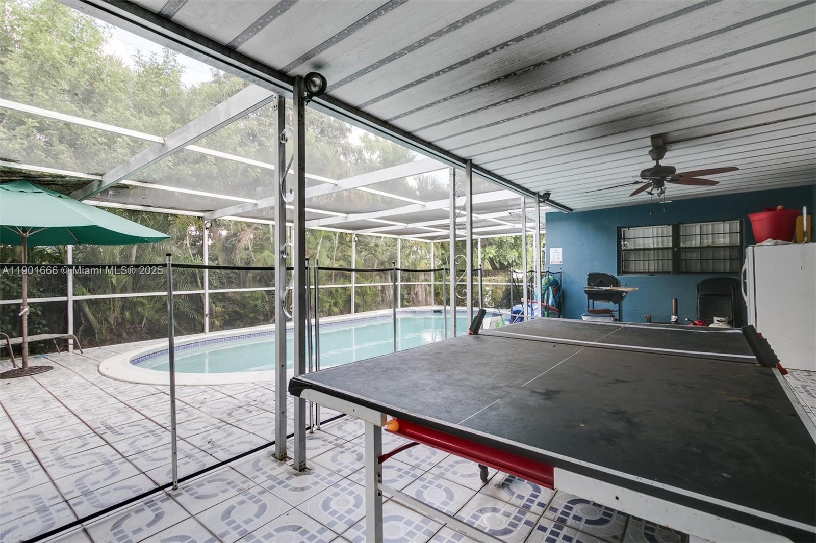Welcome to this charming family home! Nestled on a quiet tree-lined street, this spacious property boasts high ceilings and a large functional floor plan, perfect for gatherings. Enjoy the screened-in pool and covered patio, ideal for relaxation and entertainment. With a newer roof and located on a desirable, family-oriented block, this gem is just a short walk away from houses multiple worship.
