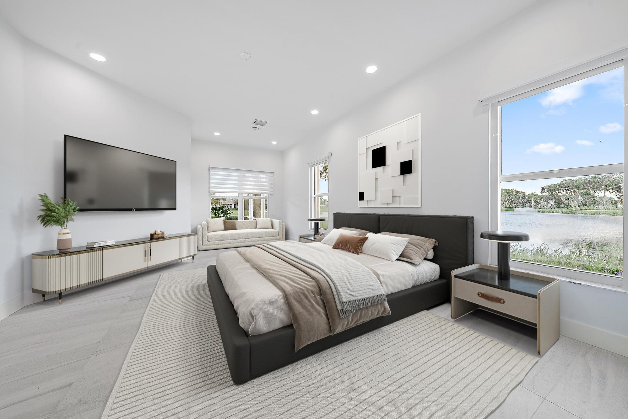Sleek modern luxury meets breathtaking golf and lake views in this fully reimagined Ibis Lakes residence. Completed in 2022, this exquisite home combines cutting-edge design with timeless sophistication, perfectly positioned on a premier cul-de-sac lot with wraparound water and golf vistas of the newly redesigned Nicklaus Heritage Course's 8th hole. With over 3,100 square feet of light-filled living space, this home offers a rare balance of elegance, comfort, and peace of mind. Every major component was upgraded in 2022, including a new roof with a 30-year warranty, impact glass windows and doors, two new HVAC systems, and a new water heater. Step inside and experience a home that feels brand new--