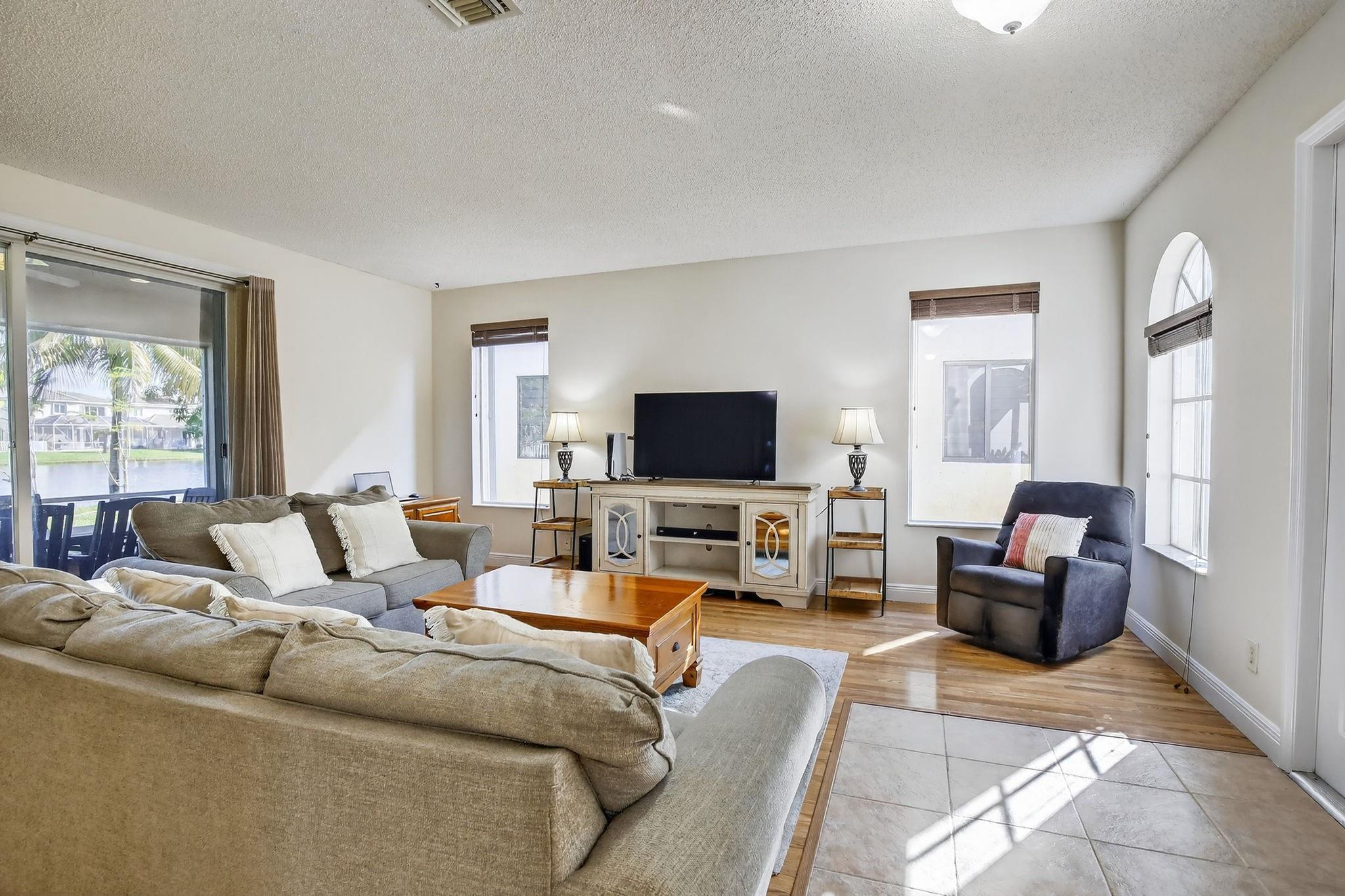 Rare DelMar Model in Laguna Isles! Beautifully updated 5 bed 3.5 bath, 2-sty home with over 2,500 sqft in sought-after Laguna Isles. This unique model offers a side-load garage and a builder-optioned addition, adding 2 extra bedrooms and a full bath for a spacious, flexible layout. The upgraded kitchen features crowned wood cabinets, granite counters, stainless appliances, and natural gas cooking and water heater. The dining room and primary bedroom showcase tray ceilings, and large windows fill the home with natural light. Enjoy wood and tile floors throughout, updated baths, and a freshly painted interior. Outdoor highlights include a screened, covered patio, paver brick driveway and patio, plus accordion shutters. A rare opportunity to own one of Laguna Isles’ most desirable floor plans
