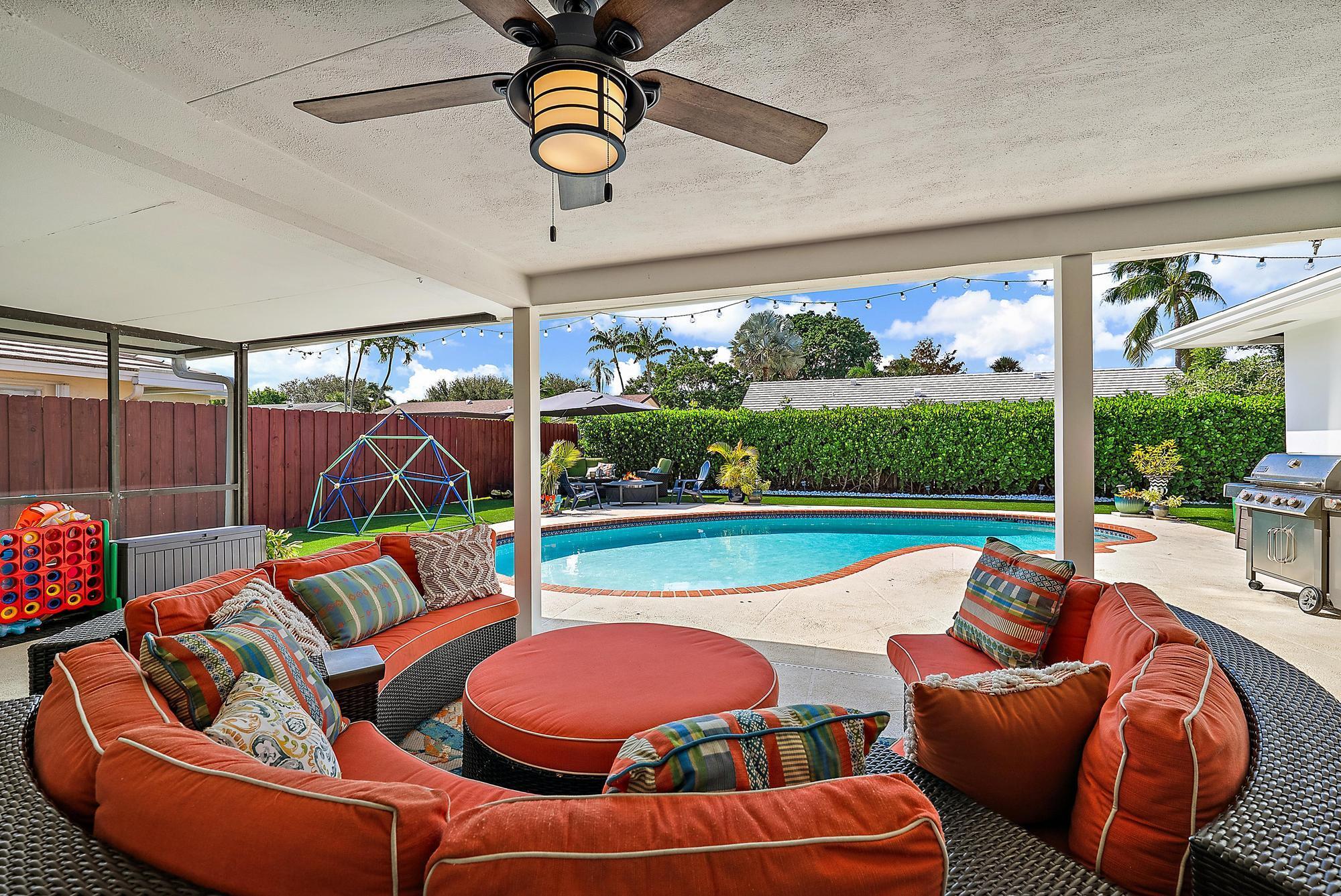Experience the ideal blend of Florida elegance and Serena & Lily-inspired design in this light & airy Palm Beach Gardens CBS home. Featuring designer finishes throughout, this residence exudes modern sophistication & comfort with sleek, modern details such as 36'' porcelain flooring (2024), crown molding, Impact glass, new interior/exterior paint, 2024 professionally designed bathroom renovations & a 2024 customized resort-style entertainment area -- featuring an expansive covered patio, large heated saltwater pool, lush turf backyard, and plenty of space for soccer, a garden party or a backyard BBQ. Perfect for fun or relaxed Florida evenings with friends. (see more)