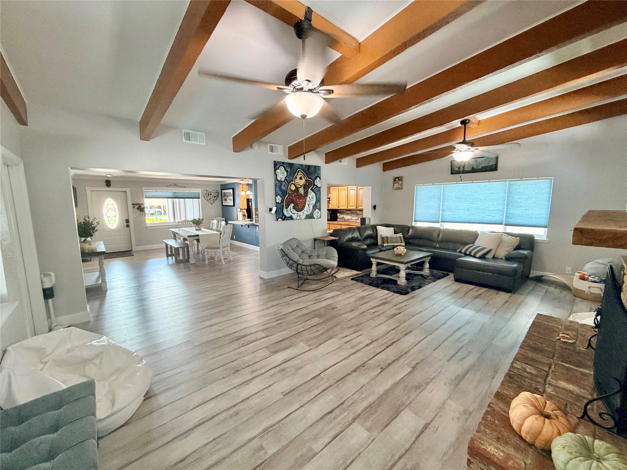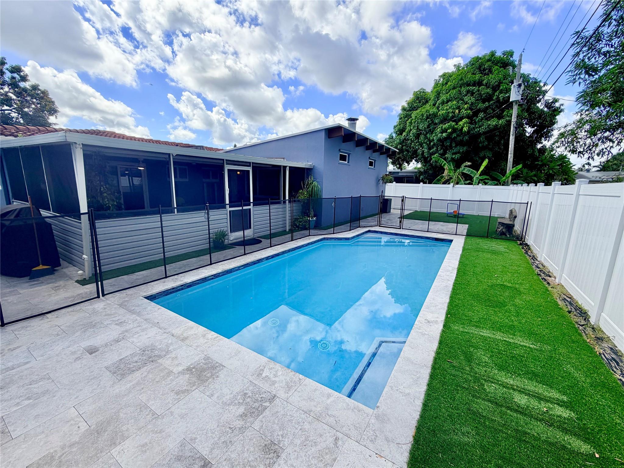 Wilton Manors Home made for Entertaining!!! Wood burning fireplace. Vaulted ceilings with exposed beams. New ductwork throughout. HVAC 2022. Saltwater pool with Screened in Patio. Backyard has new PVC fencing and artificial grass. Pool was redone in 2024. House has all impact windows.