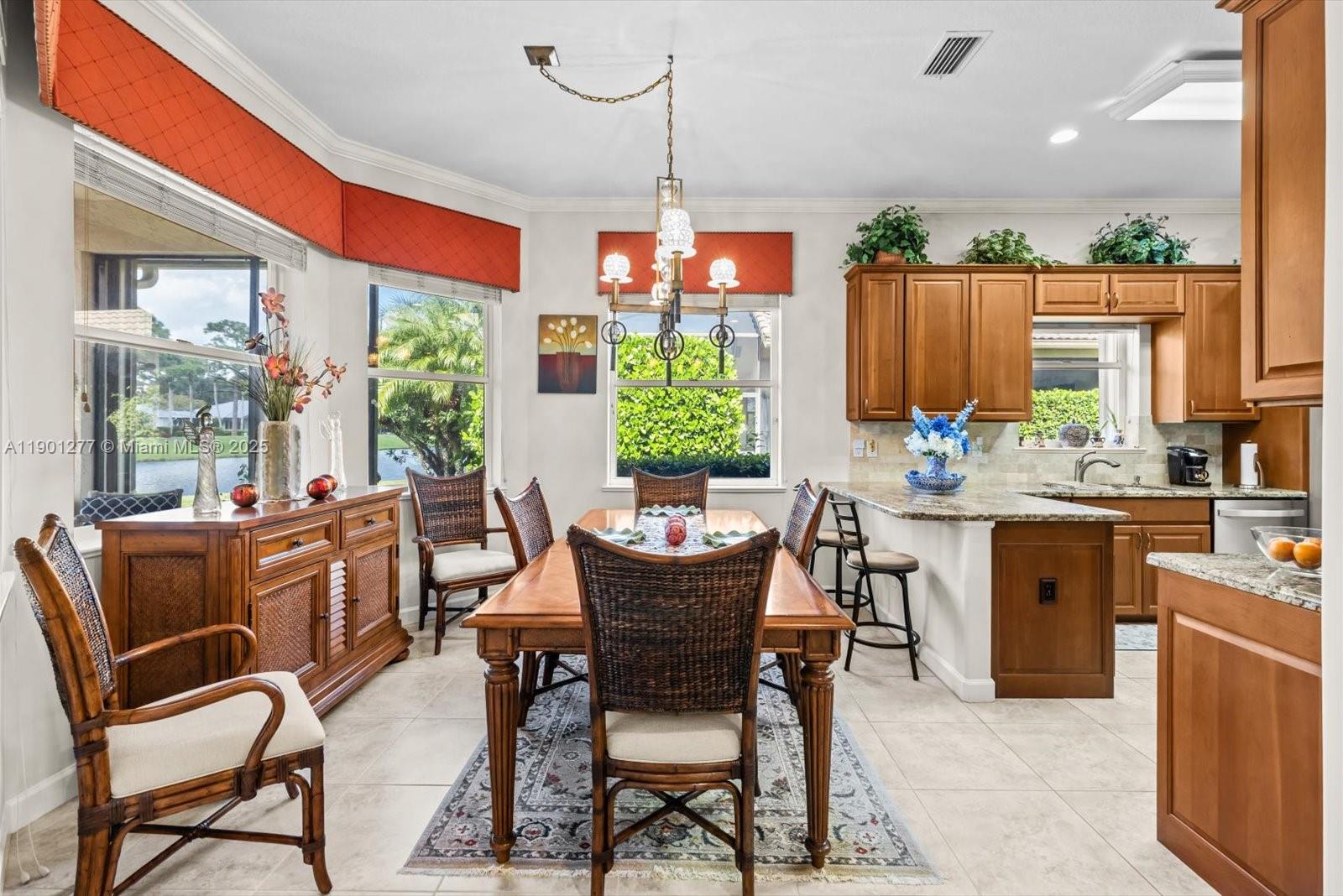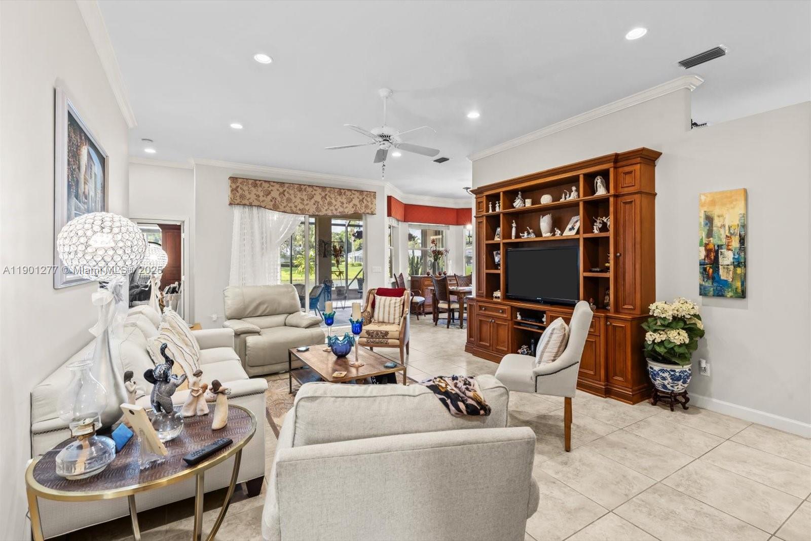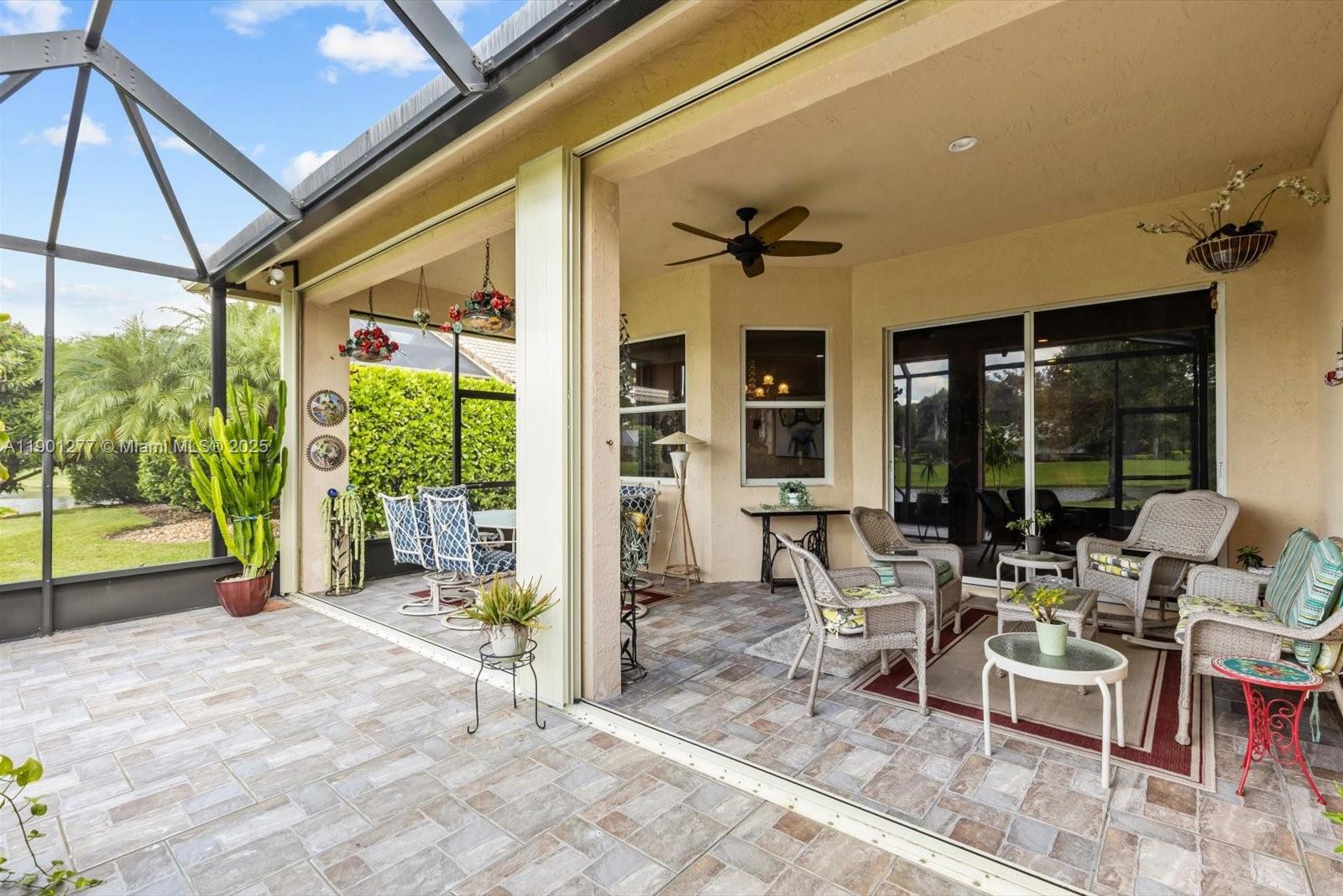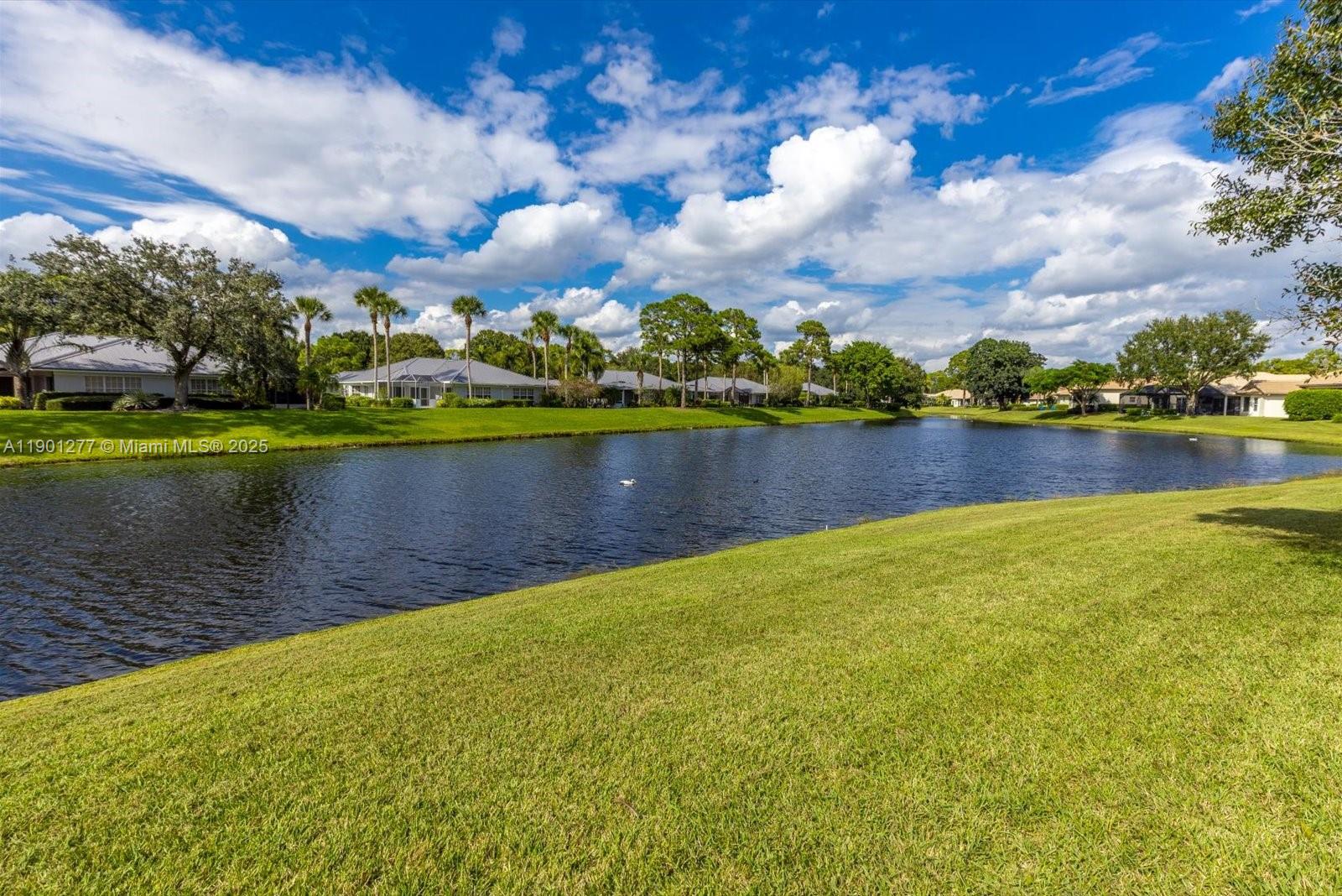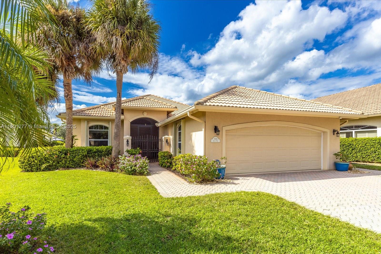 Welcome to this beautiful 2BR+Den, 2BA, 2CG single-family home in the highly sought-after PGA Village! Step through the gated entry & elegant French doors into a bright living space. Gorgeous kitchen features wood cabinets, granite countertops, & newer SS appliances. Enjoy stunning lake views from the covered patio & extended screened-in lanai. Room for pool. Thoughtful split layout offers privacy & functionality, with two spacious bedrooms and an office with custom-built-in wood cabinets and wine cooler. Accordion shutters throughout for peace of mind. Extra-long driveway on cul-de-sac lot. Resort-style living surrounded by championship golf courses, lush landscaping, & world-class amenities, PGA Village offers an unparalleled Florida lifestyle. Furniture is included at no cost. Must see