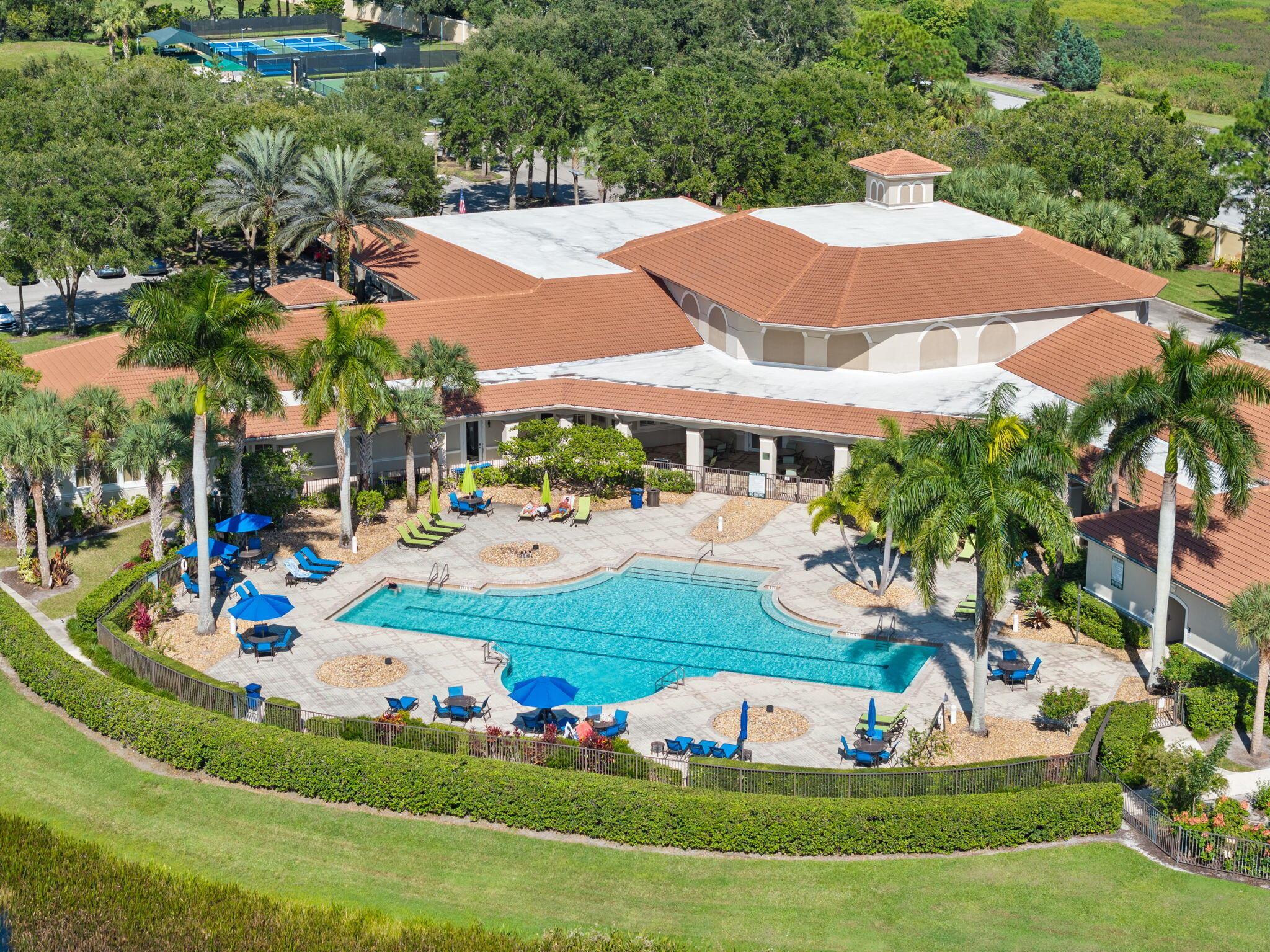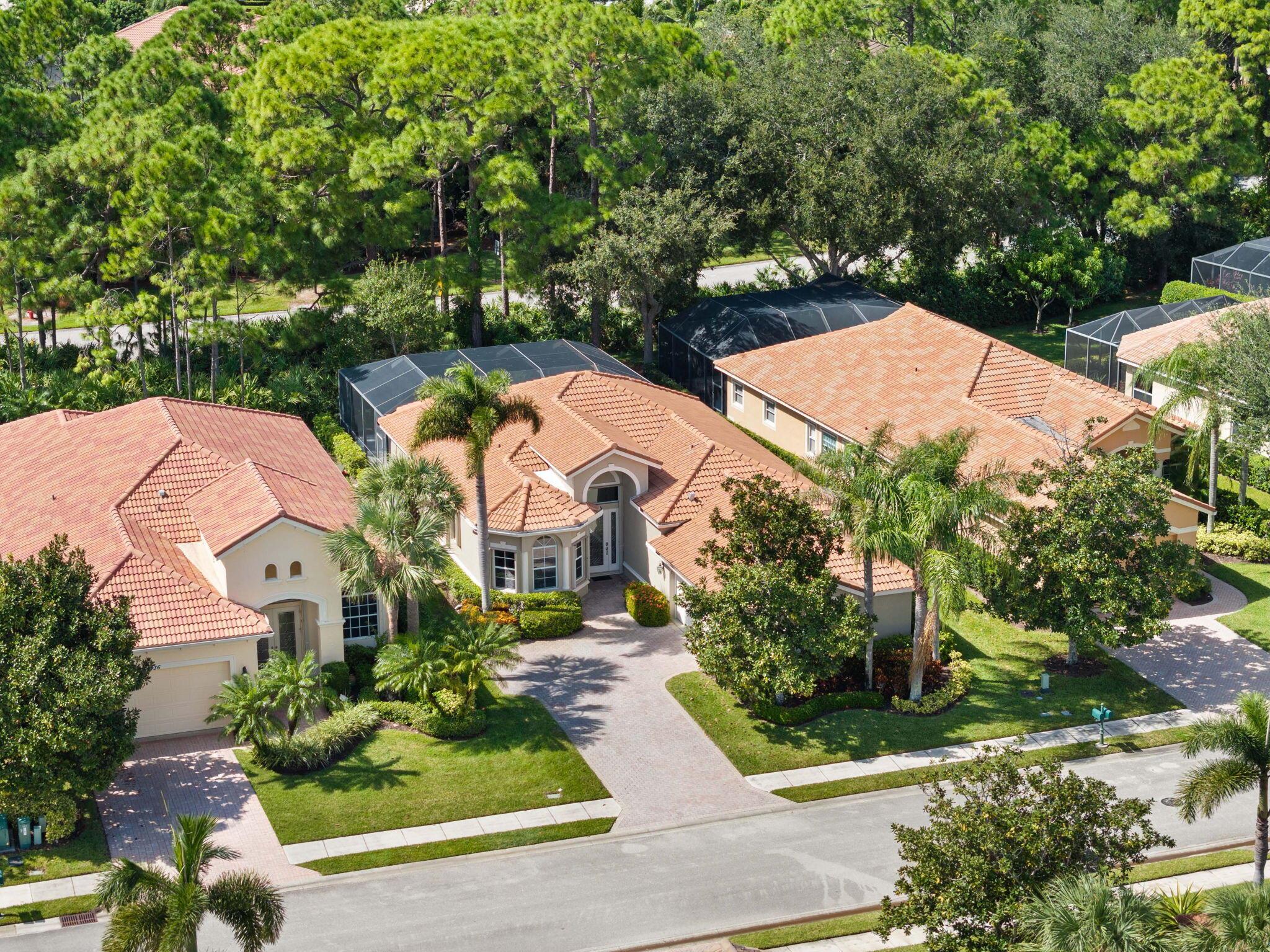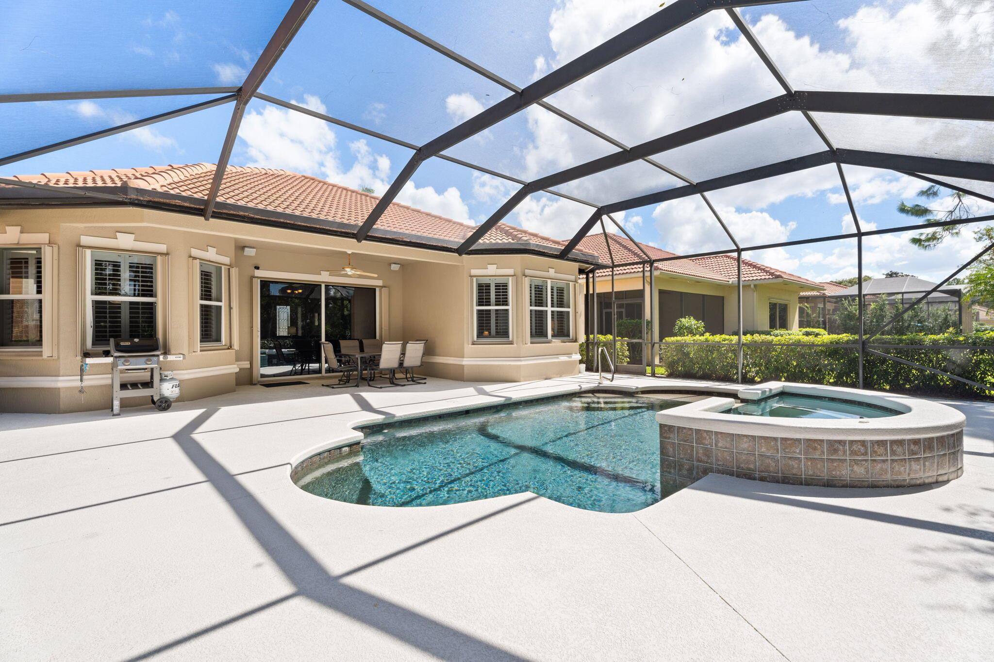 Welcome to Maidstone at PGA Village, where timeless design meets relaxed Florida living. This 2BR + den, 2.5 bath retreat offers a heated pool and spa surrounded by vibrant tropical landscaping. Light pours through plantation shutters onto wood-look tile floors that flow through open, inviting spaces designed for comfort and connection. The kitchen and family room open to the screened lanai for effortless indoor-outdoor living. Dues include lawn care, cable, internet, + access to exclusive amenities, fitness center, lap pool, tennis, & pickleball. Optional memberships available at The Legacy and PGA Golf Club's championship courses. Experience the ultimate blend of serenity, sophistication, and resort-style living, where every day feels like a private getaway in the heart of PGA Village.