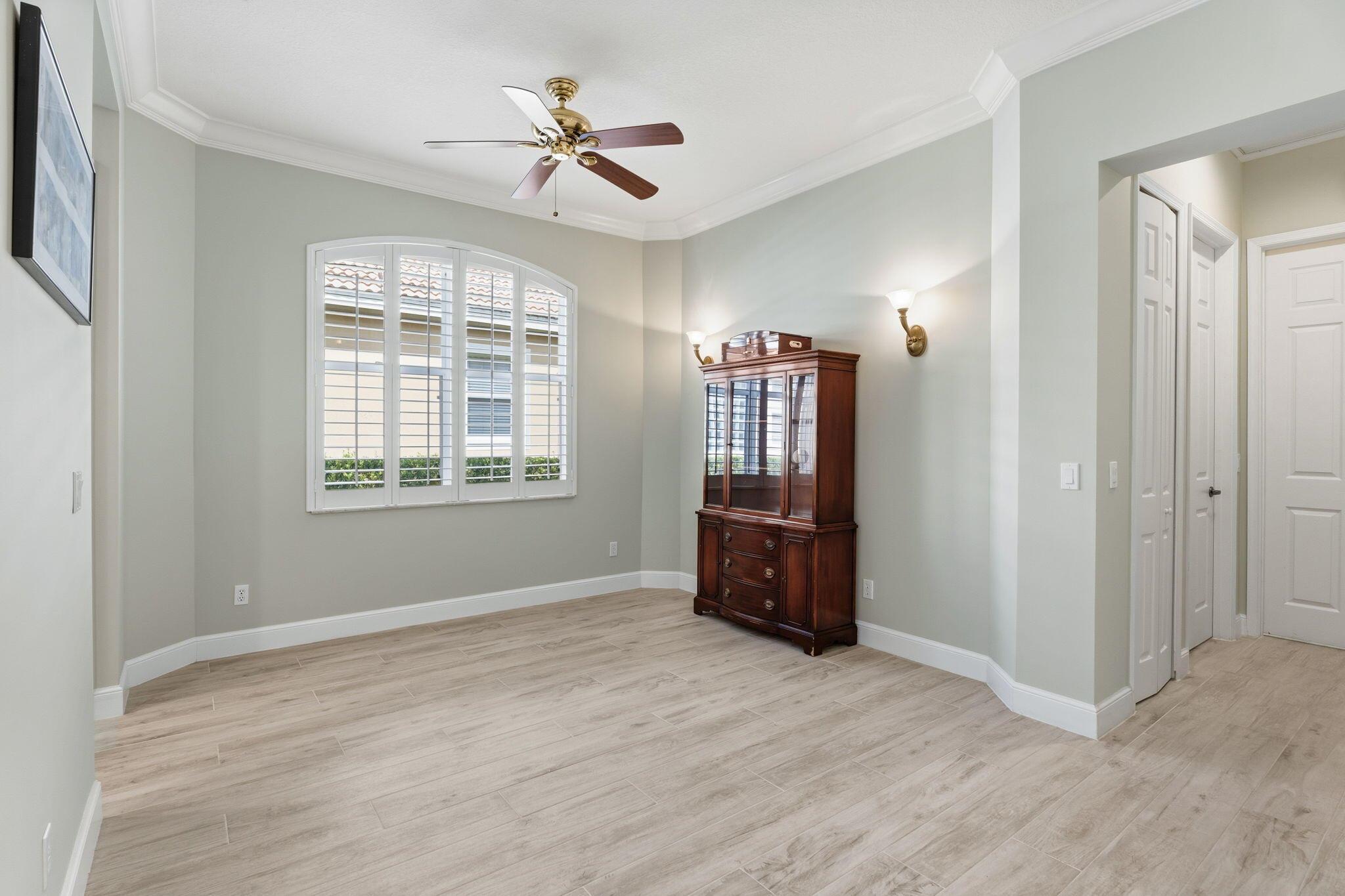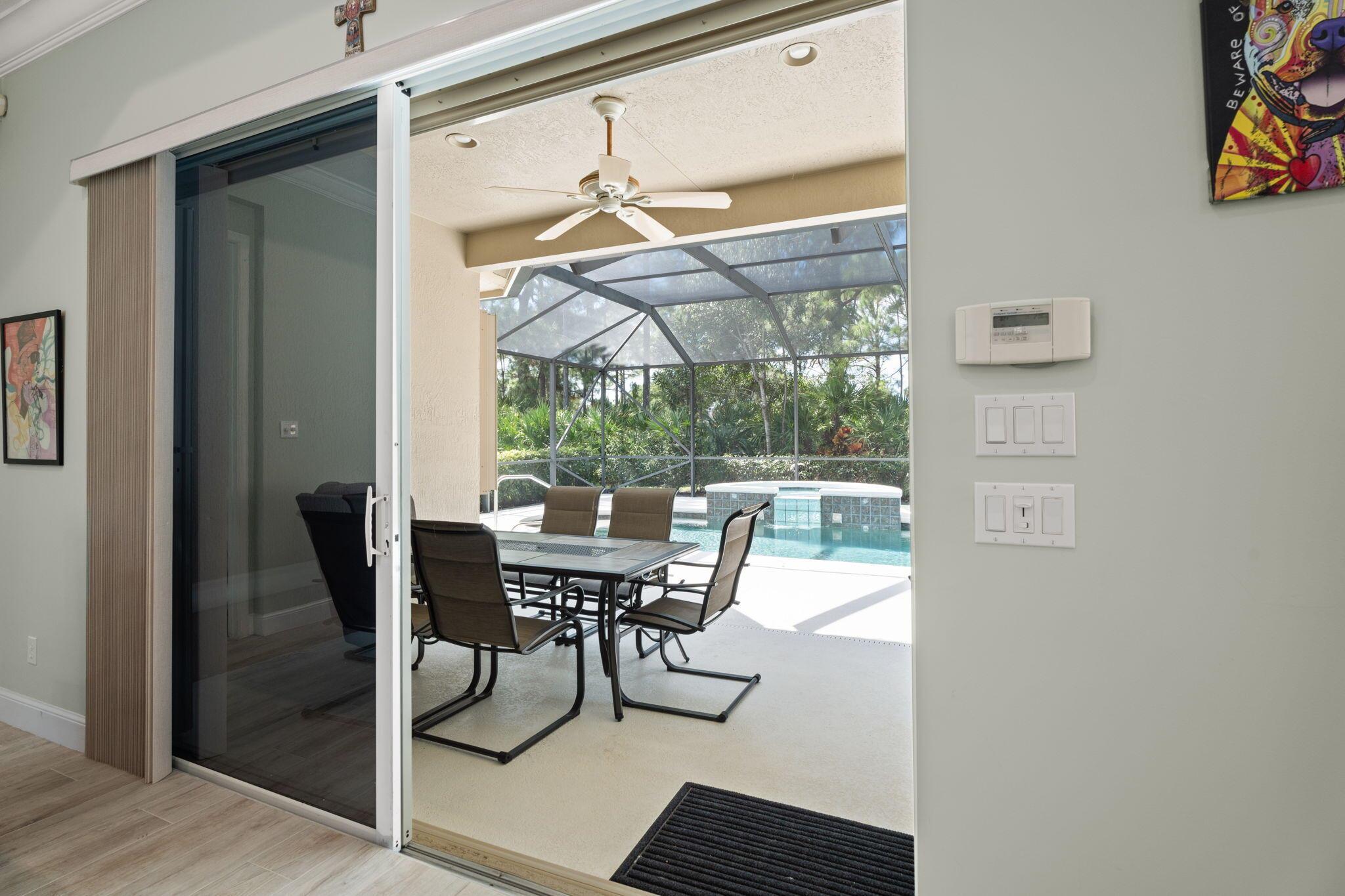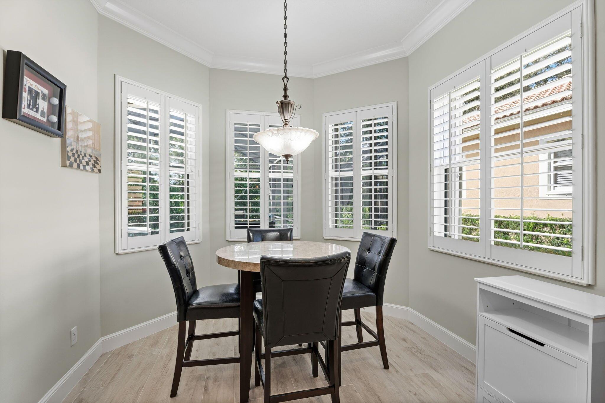 Welcome to Maidstone at PGA Village, where timeless design meets relaxed Florida living. This 2BR + den, 2.5 bath retreat offers a heated pool and spa surrounded by vibrant tropical landscaping. Light pours through plantation shutters onto wood-look tile floors that flow through open, inviting spaces designed for comfort and connection. The kitchen and family room open to the screened lanai for effortless indoor-outdoor living. Dues include lawn care, cable, internet, + access to exclusive amenities, fitness center, lap pool, tennis, & pickleball. Optional memberships available at The Legacy and PGA Golf Club's championship courses. Experience the ultimate blend of serenity, sophistication, and resort-style living, where every day feels like a private getaway in the heart of PGA Village.
