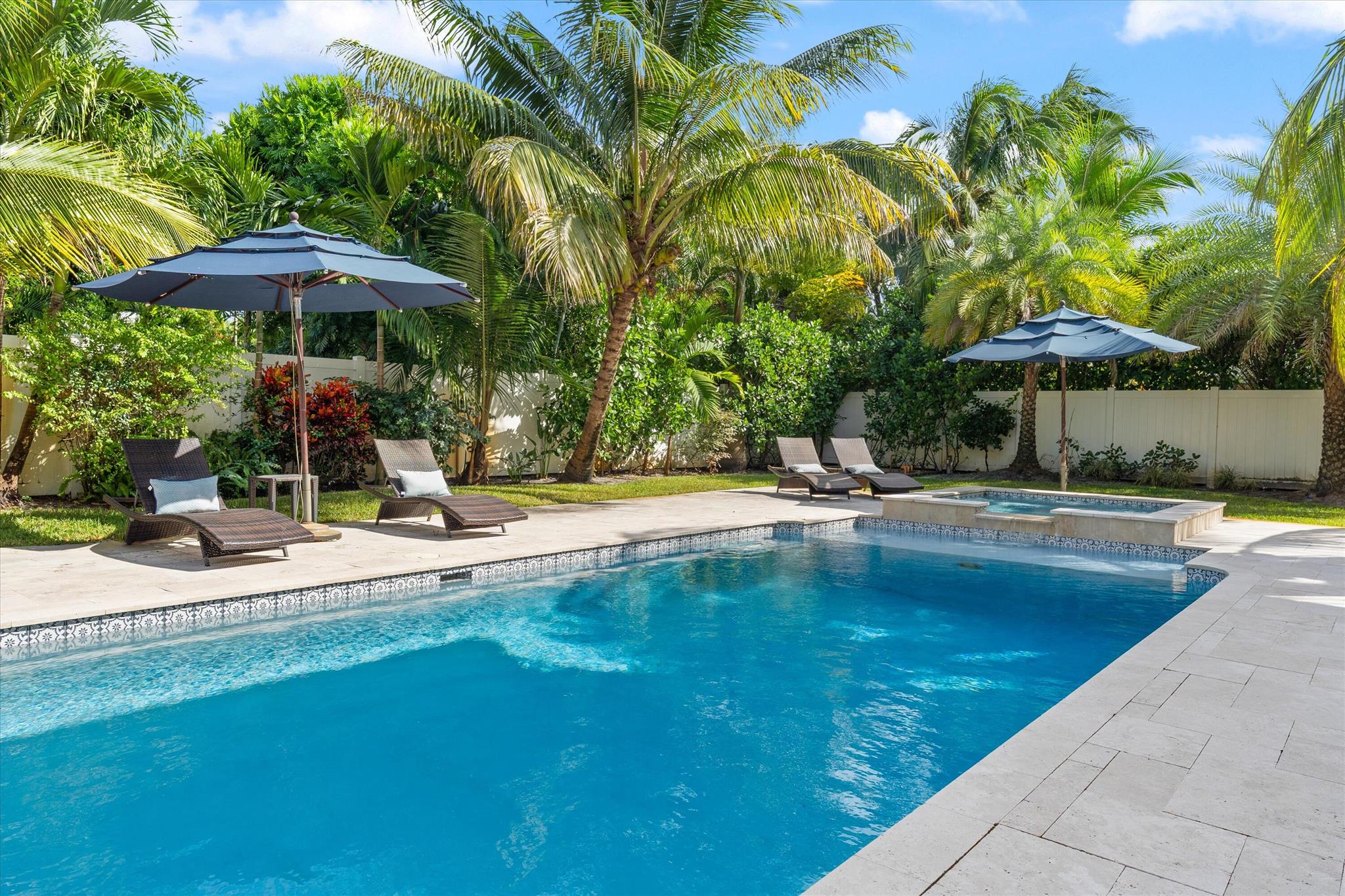 Located in East Delray's coveted Lake Ida community, this spacious and versatile Key West-style residence blends timeless Florida charm with modern functionality, offering a lifestyle that's as vibrant as it is relaxing. Set on a lushly landscaped oversized lot (.33 acre), this 6-bedroom, 5.1-bathroom home spans 3,740 square feet and is perfectly suited for multi-generational living, entertaining, or simply enjoying the comfort of spacious indoor-outdoor living.A circular driveway winds through a palm-shaded front yard and leads to a 2-car garage, welcoming you to this tranquil retreat. Inside, the formal living room opens to sweeping views of a newly renovated 30-foot saltwater pool and oversized spa, while the adjacent formal dining room connects seamlessly to a well-appointed