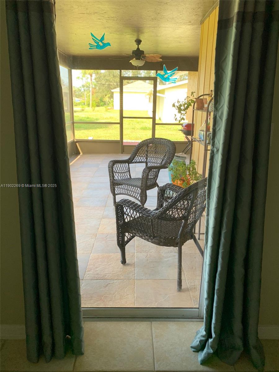 Welcome to this beautifully updated 2-bedroom, 2-bath home with a 1-car garage, nestled in a quiet, friendly neighborhood. Freshly painted and thoughtfully designed, it’s perfect for relaxed Florida living. Inside, enjoy a bright, open layout with stylish tile flooring, recessed kitchen lighting, and sleek granite countertops. French doors open from the dining area to a spacious screened lanai—ideal for entertaining or morning coffee—overlooking a private backyard. Highlights include a large pantry, stackable washer/dryer, and impact windows (with one exception). The 2-year-old roof offers peace of mind. Whether you’re a first-time buyer, downsizing, or seeking a winter retreat, this home has it all—comfort, style, and low-maintenance living.