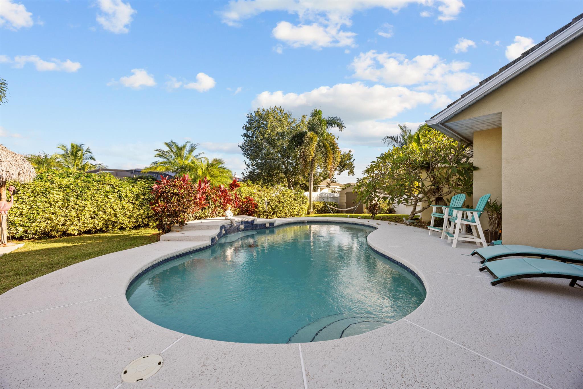 An elegant 4-bedroom, 2-bathroom, heated pool home featuring high ceilings and a bright split open floor plan that blends timeless style with everyday comfort. The interior flows effortlessly to a private outdoor oasis complete with a sparkling pool, tiki hut, and spacious screened patio -- perfect for entertaining or relaxing in true Florida fashion. Beautifully maintained and thoughtfully designed, this residence offers charm, functionality, and convenience in a desirable neighborhood close to shopping centers, dining, and major highways including the Turnpike and I-95 for easy access across South Florida.
