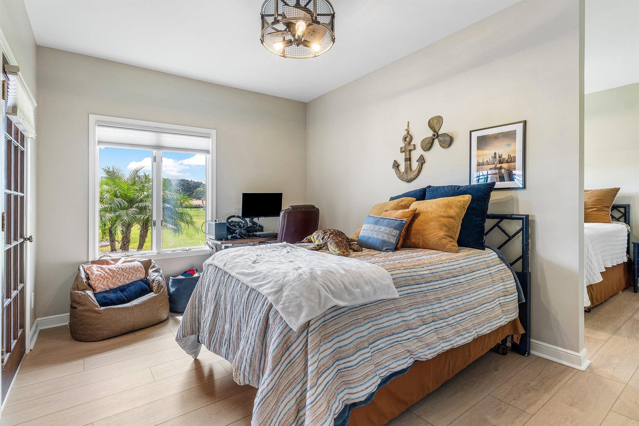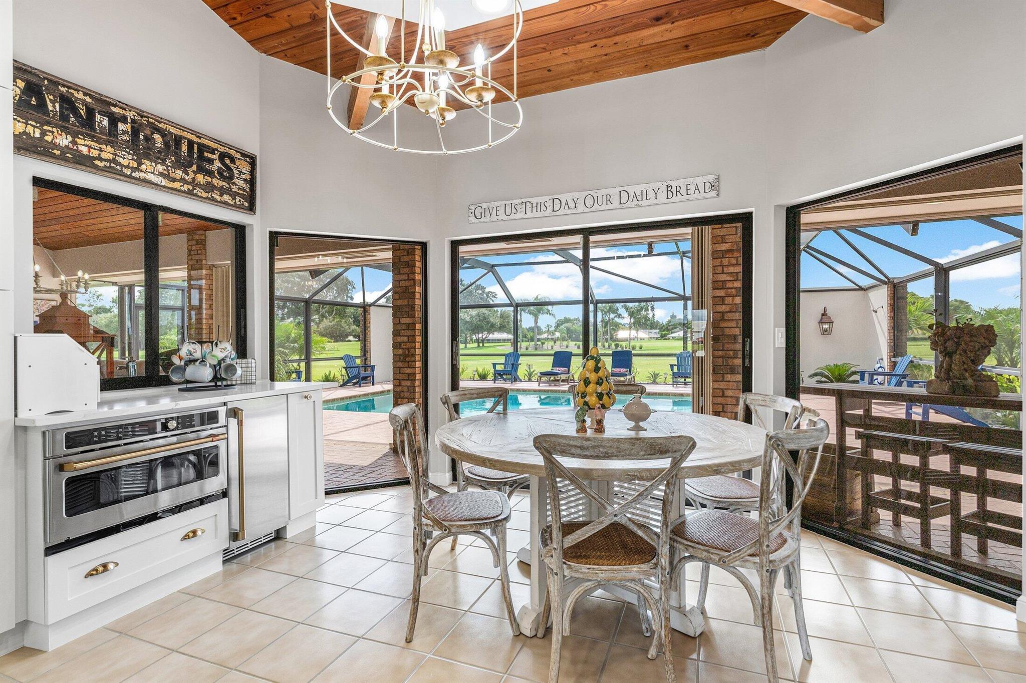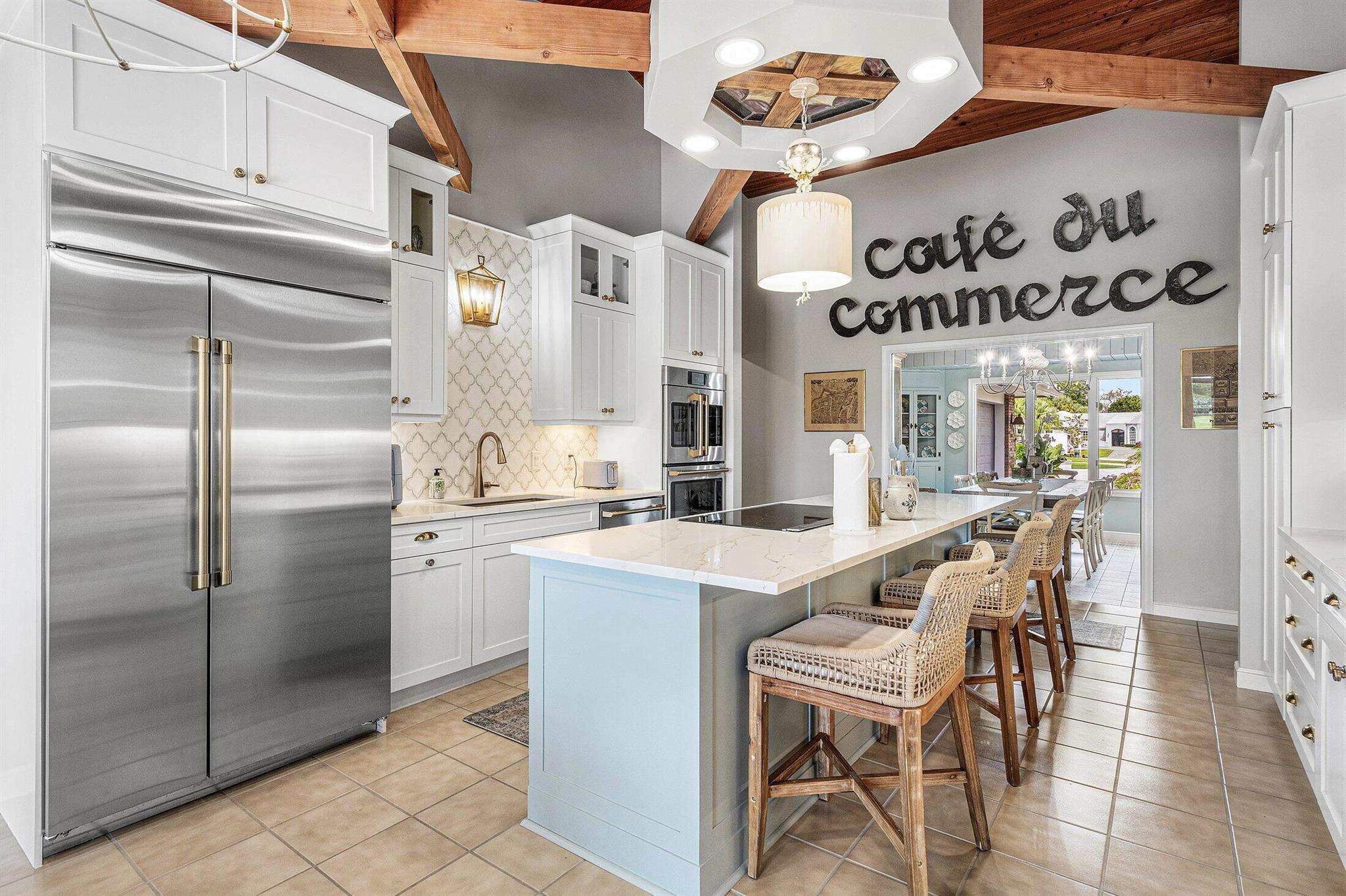 Looking for renovated, move-in ready, golf course living- w/o HOA or club membership fees? This rare beauty checks the boxes that 99% of golf communities cannot: NO HOA, No membership required, Golf and pool views, Brand new 2025 roof! This 4BR/3.5BA home delivers the ''wow'' factor in every room-wood cathedral ceilings, custom beams,and much more! A chef's dream kitchen features a 48'' built-in refrigerator, premium appliance package, custom cabinetry, quartz, and beautiful marble backsplash. Spacious bedrooms with beautifully appointed baths. Pocket office, and large den that could be 4th bedroom. Enjoy golf-course views and the convenience of living in a secure, amenity-rich community with two golf clubs, parks, and more. This is the one you've been waiting for!