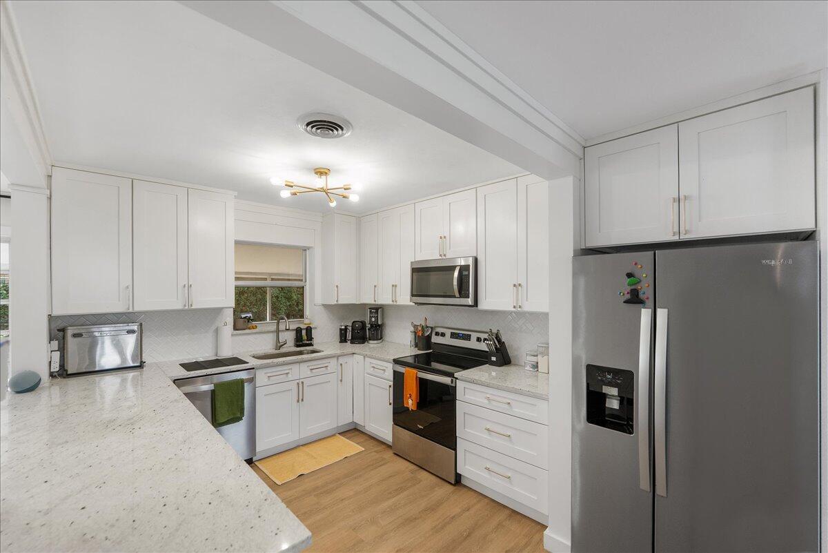 This tastefully designed home is Move-In Ready! Located in the sought after and very quiet and friendly community of Vero Shores. With no HOA dues, it's adjacent to the Harmony Oaks Conservation Preserve. Also Minutes from the beach and the Indian River for Ocean Access. Remodeled in 2022 with granite counters, herringbone tile backsplash, custom soft-close cabinets and trim work throughout, floors, tiled screened patio, updated bathrooms and electrical. Most plumbing has been re-piped, and there is a dedicated generator line. Relax in the peaceful butterfly garden with producing mango & avocado trees and a pool with a serene nook for lounging. NEW A/C 2024 A Must See!
