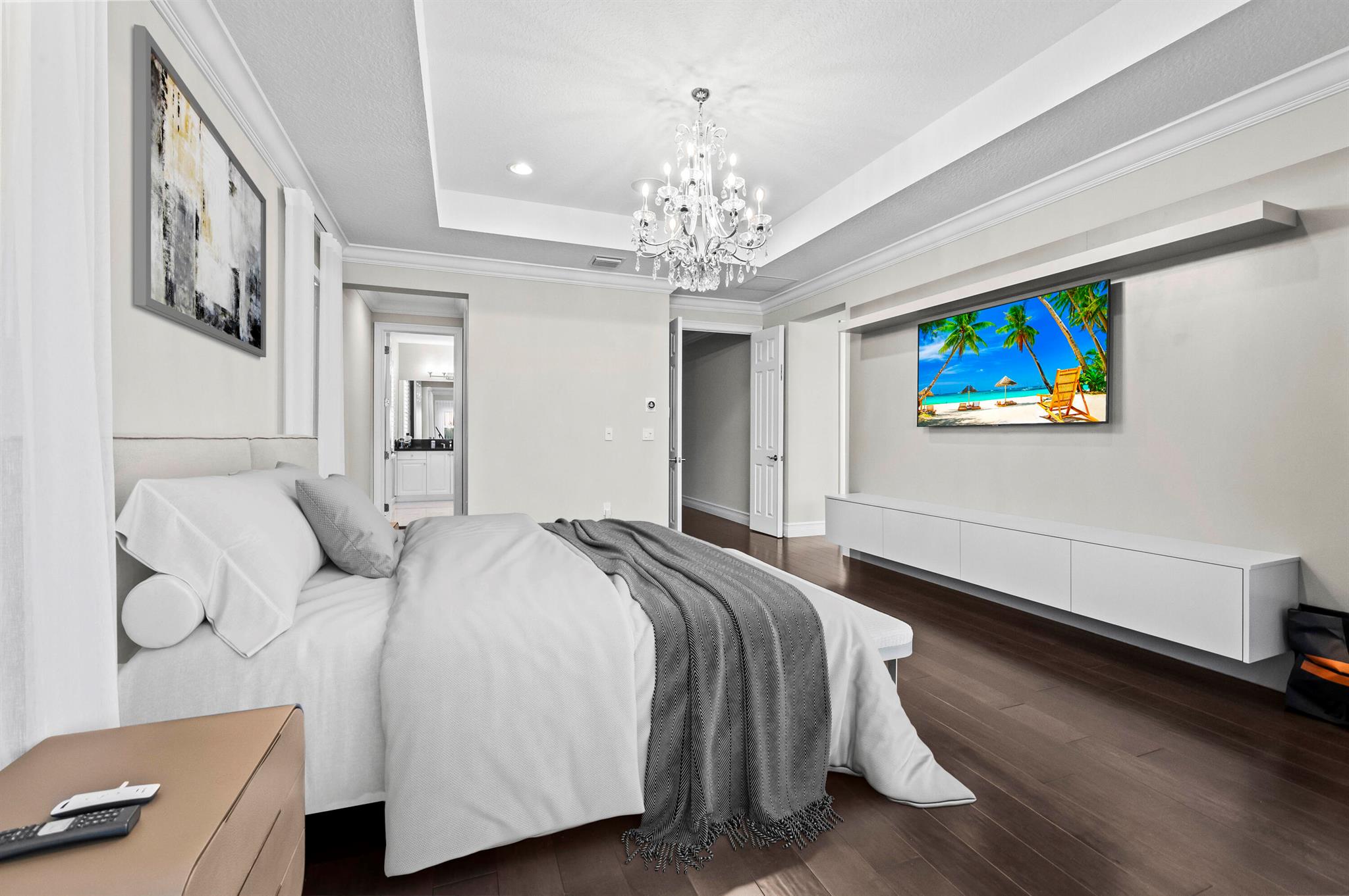 Perched on a picturesque lakefront lot with mesmerizing fountain views, this impeccably designer-decorated Bassano Grande spans nearly 6,000 square feet of luxurious, modern living. The backyard is an entertainer's paradise, featuring a screened, heated saltwater pool and spa, an outdoor TV, and a fully equipped summer kitchen with a brand-new premium grill. Inside, sophisticated high-end finishes elevate every detail, complemented by a state-of-the-art media room, a built-in office, and rich woodwork throughout. The primary suite serves as a private sanctuary, boasting his-and-hers bathrooms, custom closets, a cozy sitting area, and an exclusive balcony. Additional highlights include spacious oversized bedrooms, elegant lighting, custom window treatments, newly upgraded garage flooring,