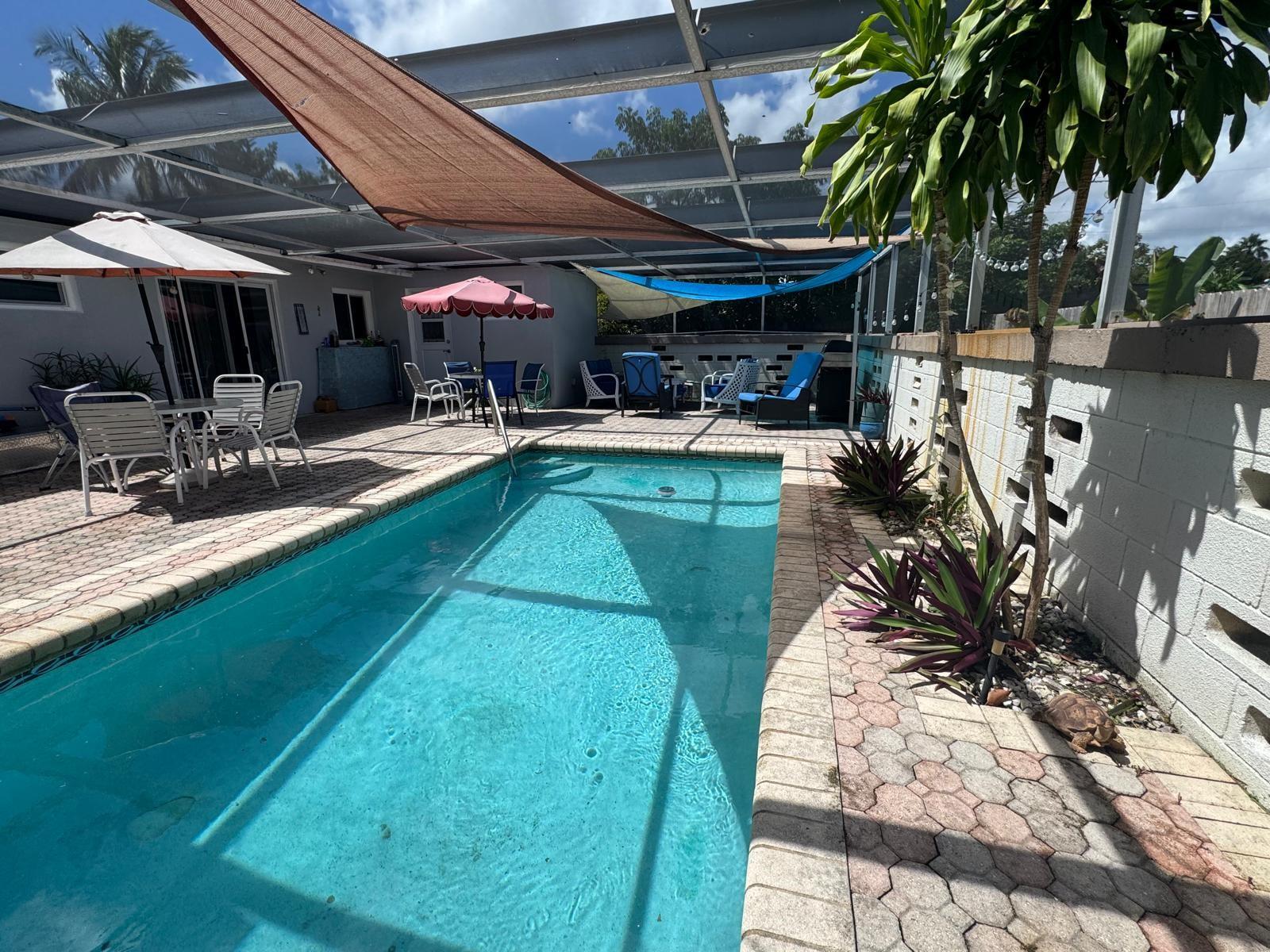 Beautifully remodeled 3-bedroom, 2-bath pool home located in desirable North Andrews Gardens. This cozy home features all impact windows, doors, and sliding door. Remodeled kitchen with wood cabinets, granite countertops, and stainless steel appliances. Both bathrooms have been recently remodeled; second bathroom offers convenient access to the pool area. Tile floors throughout. Interior laundry/utility room for added convenience. Private fenced backyard with pavered pool deck, perfect for entertaining. Roof replaced in 2017. Cast iron pipes under ground were replaced approximately 5 years ago for kitchen and baths . Water heater is about 4 years old. Located on a quiet street close to shopping, dining, gym, train station, and movie theater. Move-in ready and well maintained!