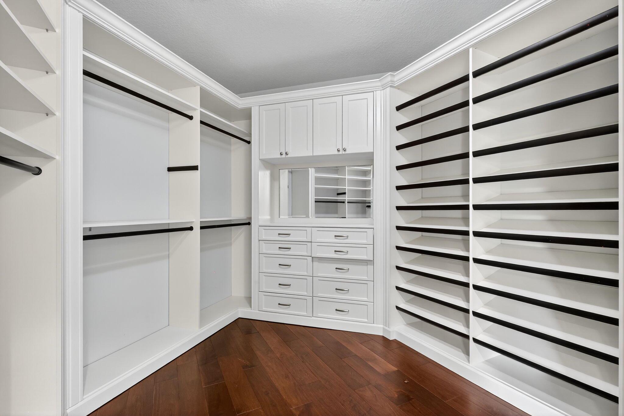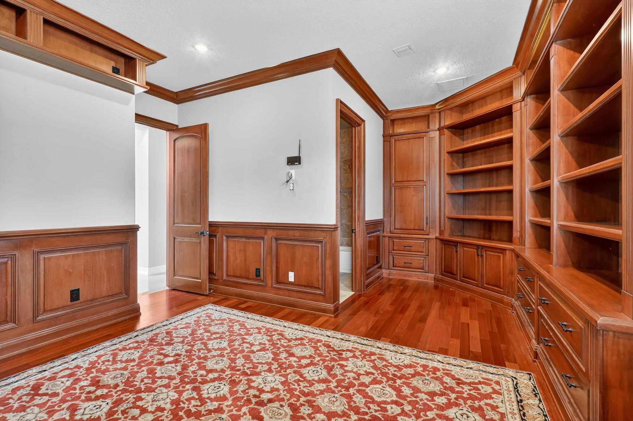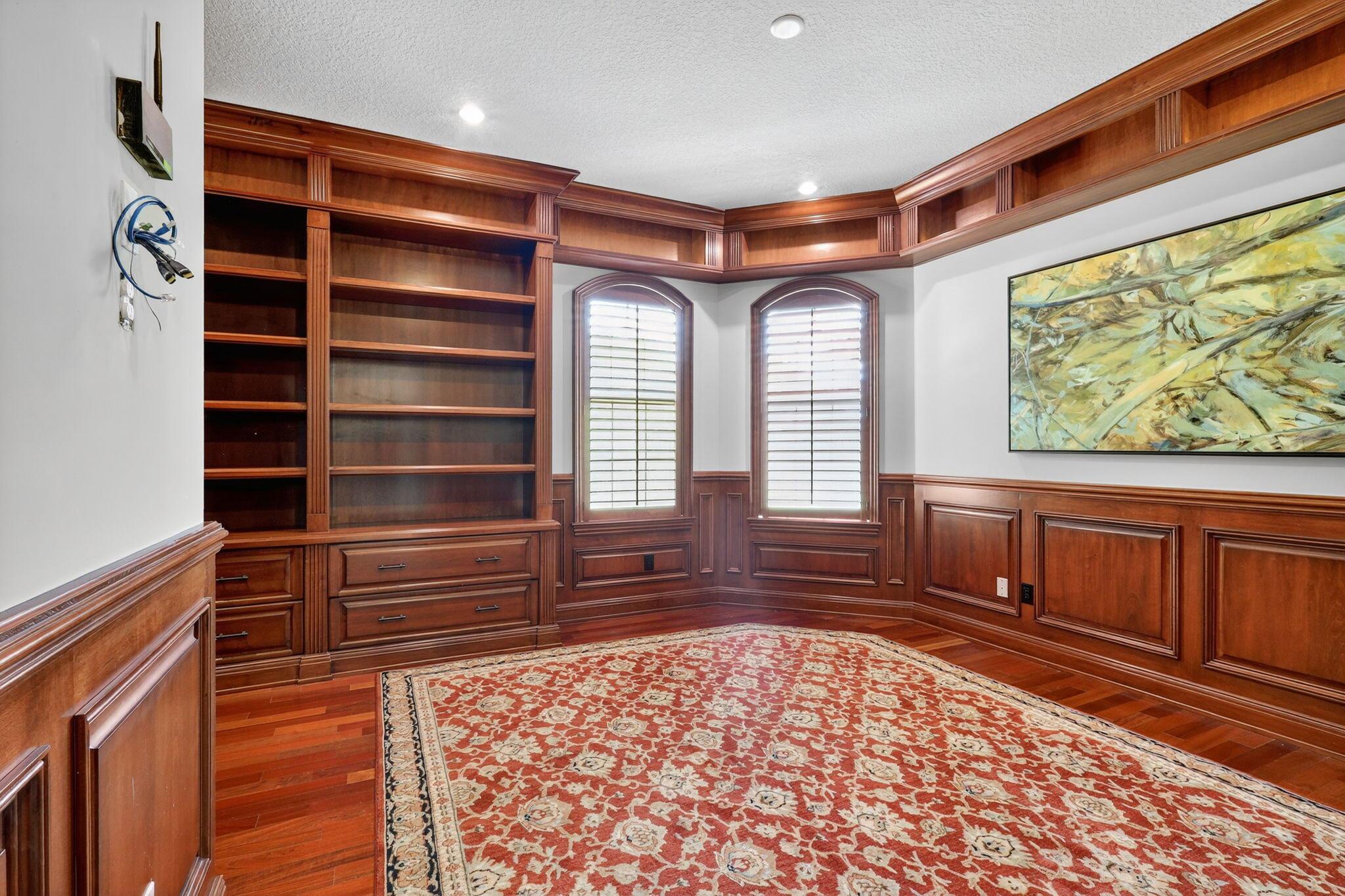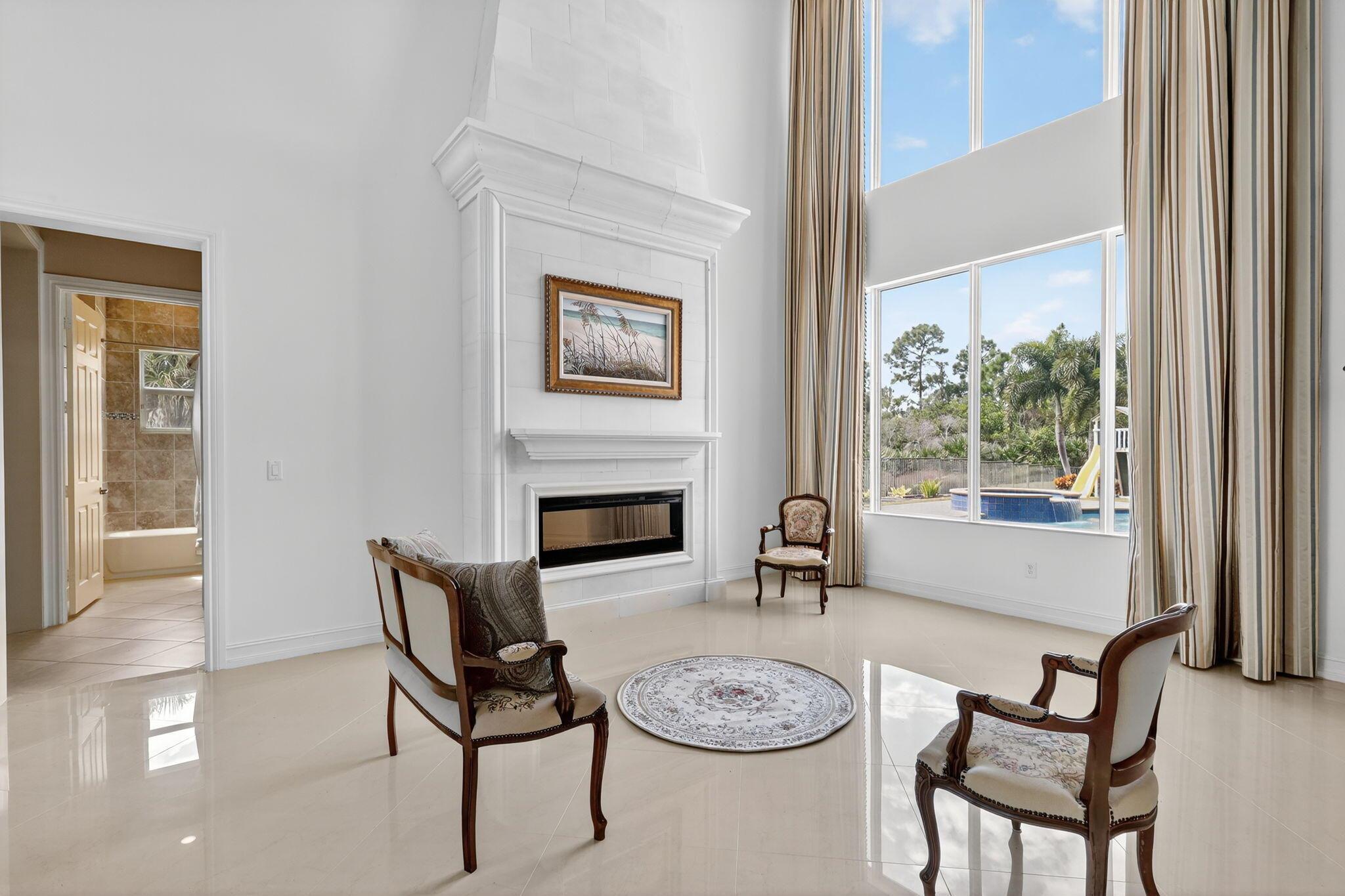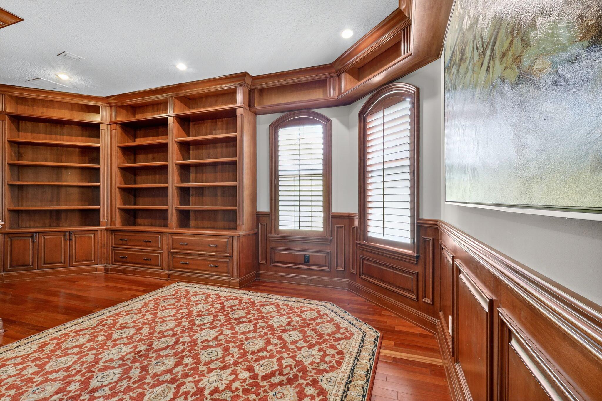 This half acre cul-de-sac home is finished to an impeccable standard using extremely high-end materials. Luxury features such as custom built wood library, custom closet built ins, crown moldings, high end appliances and illuminated kitchen island. 2 primary bedrooms with spa like bathrooms. It strikes a perfect balance of luxury craftmanship and functional design, inviting unforgettable gatherings and serene family moments. From the dramatic foyer, wrought iron stair case and chef's kitchen to the tranquil master spa and resort- style outdoor spaces, every detail exudes sophistication and comfort. Indulge in a luxurious primary suite featuring a private sitting area, his/hers vanities & closets. This elegant home is surrounded on two sides by preserve. 500 gallon propane tank generator