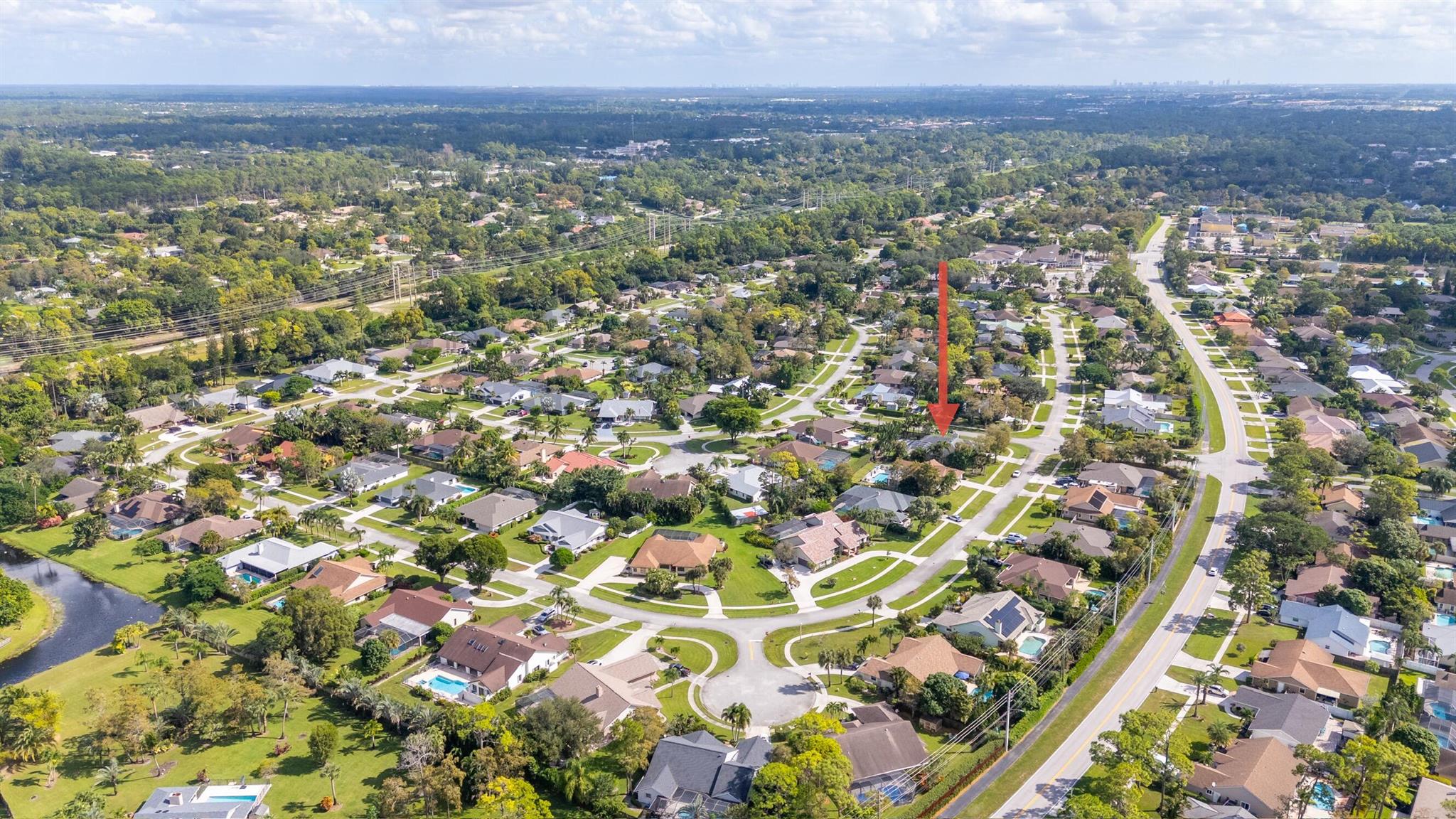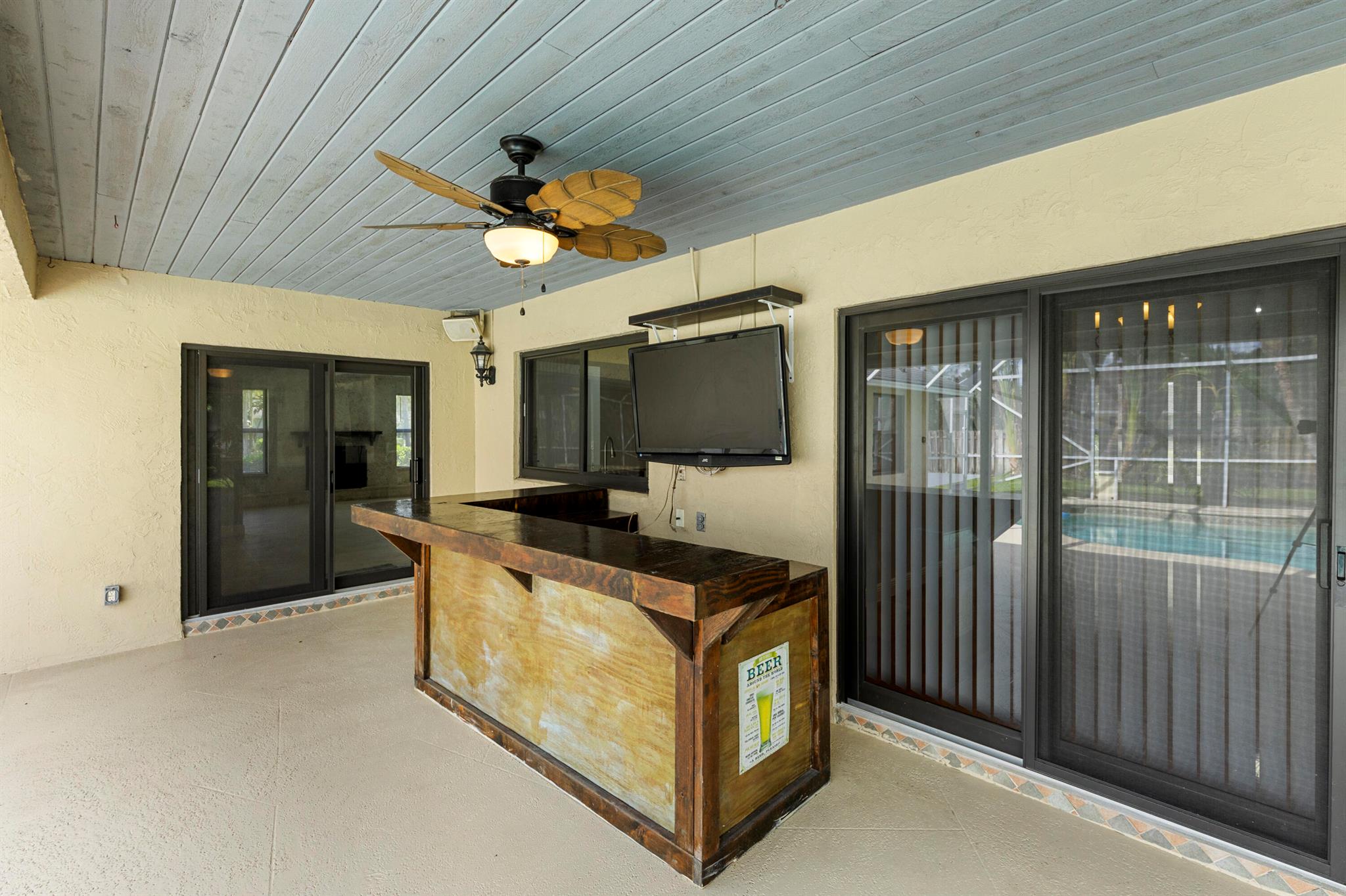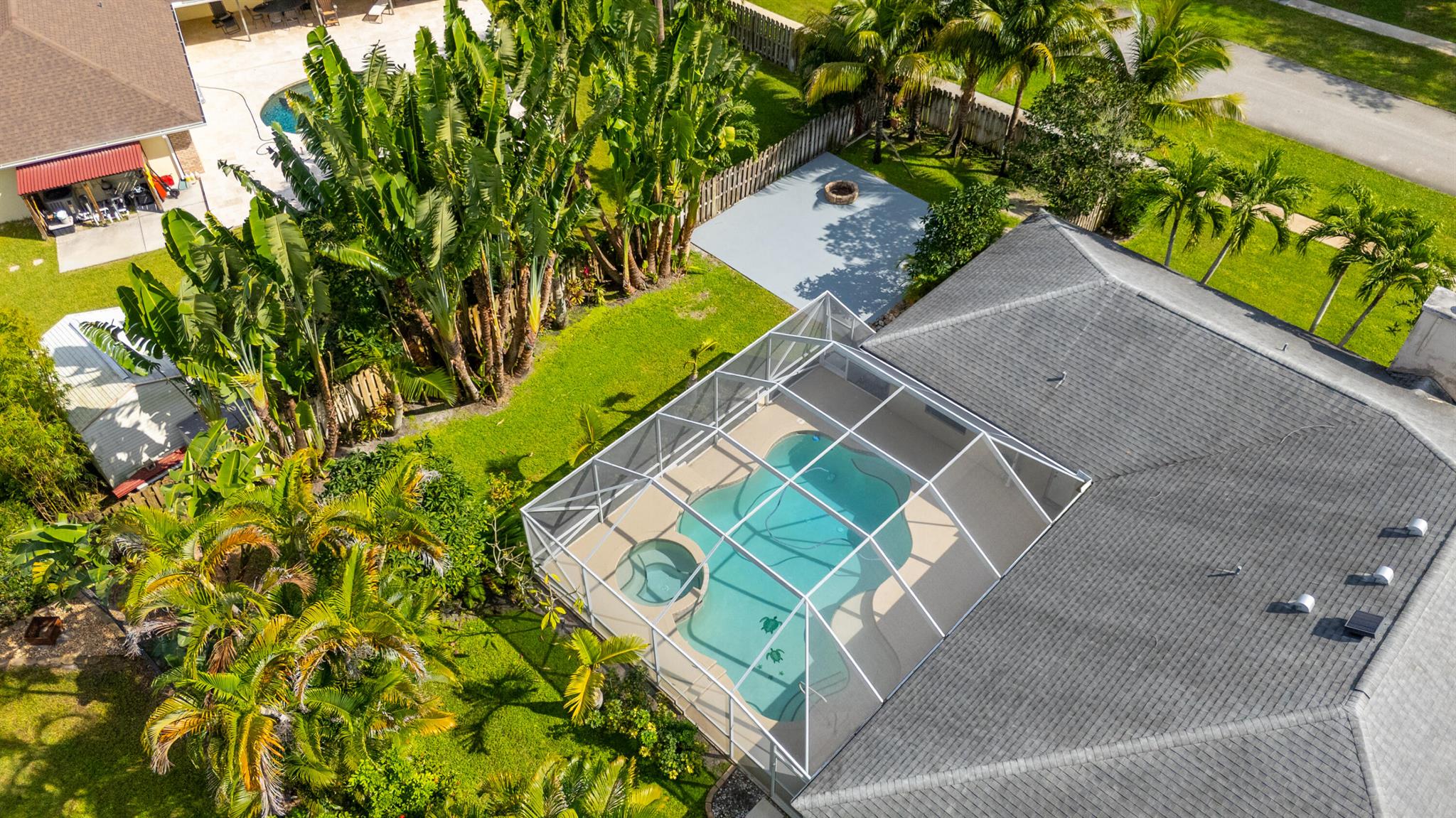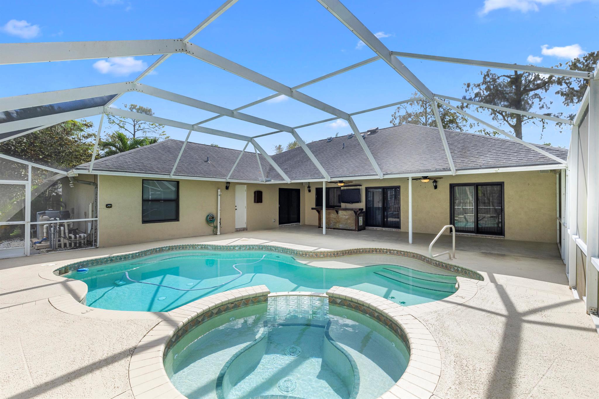 Stunning 4-bedroom, 2.5-bath pool /spa home offering approximately 2,400 sq. ft. of air-conditioned living space on a sprawling 1/3-acre corner lot in Pinewood Manor, featuring NEW impact windows and sliding doors (2025), impact-rated front door and bathroom pool door (2025), an impact-rated garage door (2021), a newer roof (2017), and a resort-style screened-in pool with heated spa and custom patio bar! Located in one of Wellington's most desirable non-HOA neighborhoods, this home offers the perfect blend of comfort, quality, and South Florida lifestyle living. NO HOA and NO restrictions! Bright split floor plan with high ceilings, wood floors in all bedrooms, a renovated kitchen opening to a spacious family room with fireplace and wet bar.