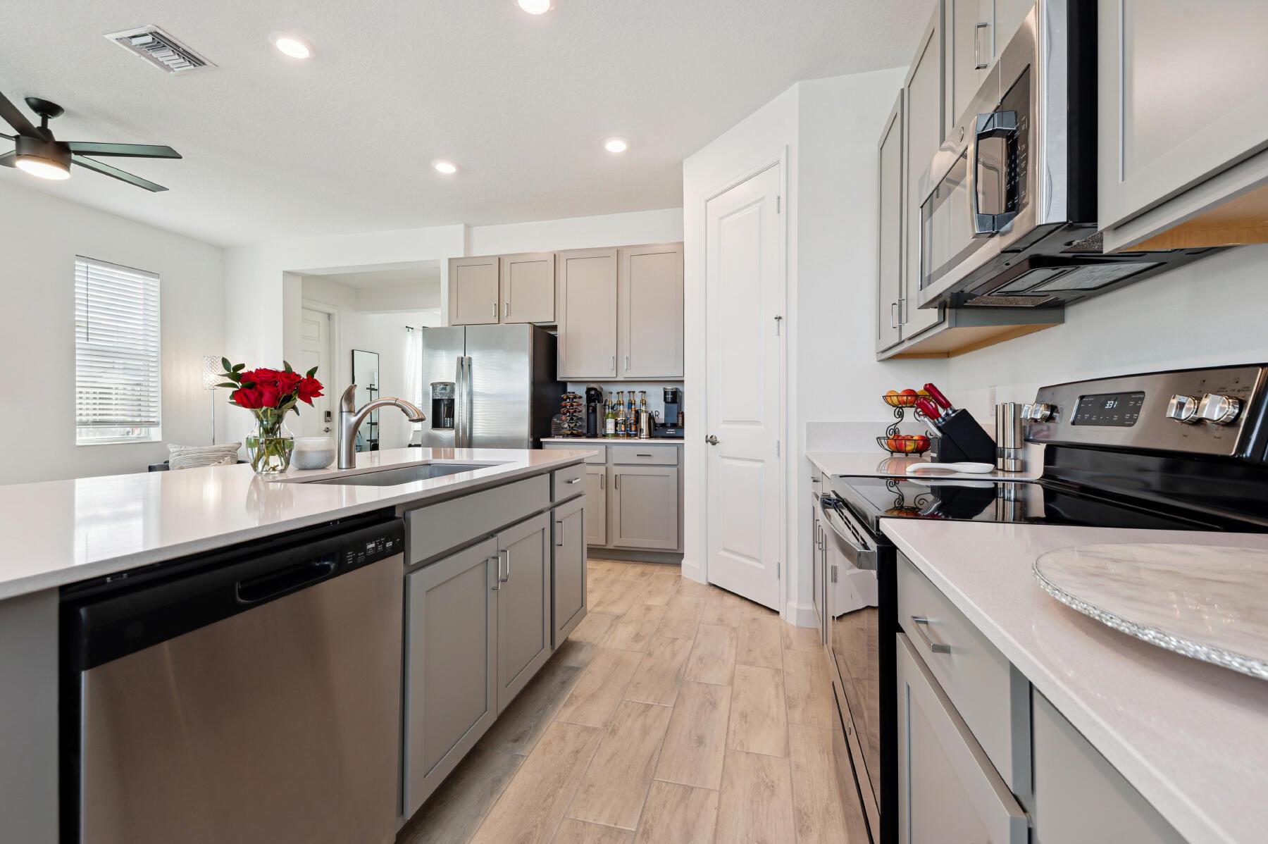 PREMIUM Lakefront Corner lot in Andalucia. This meticulously maintained townhouse, built in 2021, offers modern living with timeless comfort and style. Inside, enjoy an open floor plan with a large foyer, featuring 3 bedrooms, 2 full baths + powder room, and a spacious open loft. Impact windows and doors throughout, including the garage. The beautiful eat-in kitchen offers lake views, quartz countertops, a large island, pantry, and stainless steel appliances. Perfect for both everyday living and entertaining.Upstairs, the primary suite offers breathtaking long lake views, a modern en-suite bath, and a generous walk-in closet. Two additional guest rooms, a full bathroom, laundry room, and a large loft area complete the second level. For added