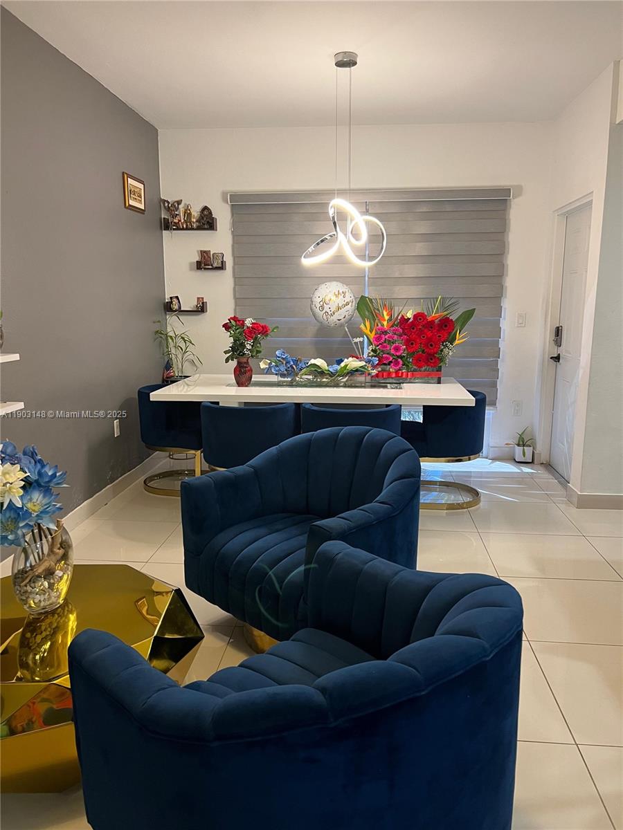 Modern townhouse featuring impact windows, located in front of the community garden. This beautiful property offers 4 bedrooms and 3.5 bathrooms with a mix of laminate and ceramic flooring. One bedroom is conveniently located on the first floor with a full bathroom, ideal for guests or family members. Enjoy a spacious terrace perfect for gatherings and relaxation. The home is built with solid concrete construction, ensuring durability and low insurance costs. Flood insurance is not required. Its prime location near the Turnpike and US-1 provides excellent accessibility and convenience for everyday living.