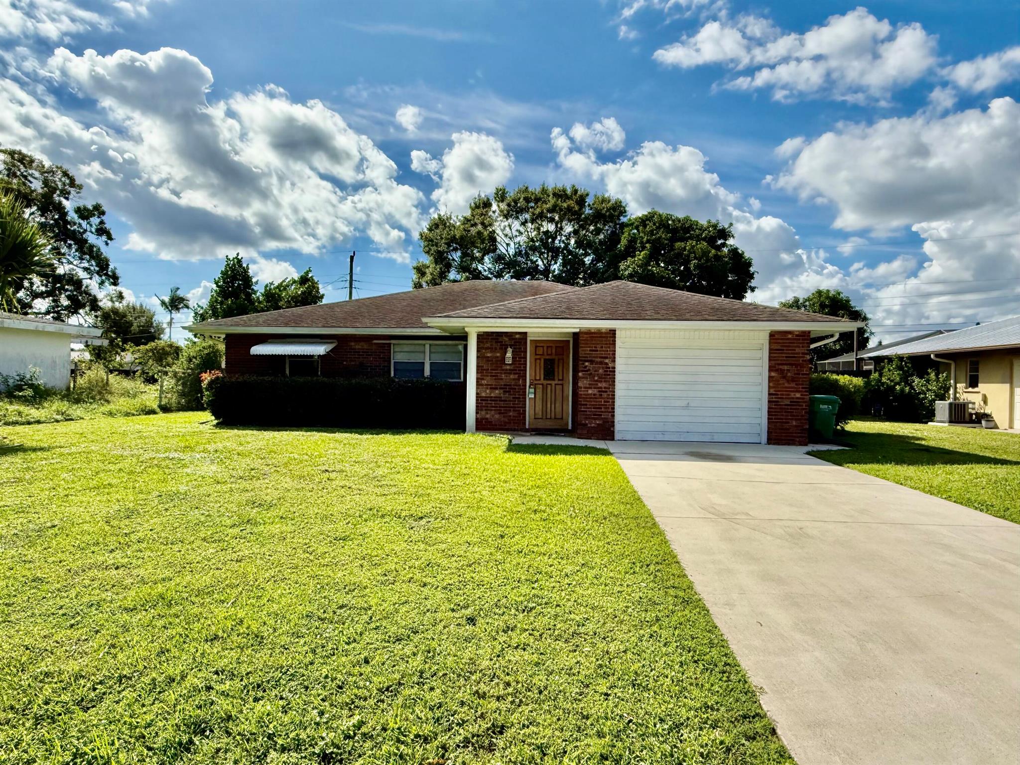 Charming CBS with Brick 2 bedroom, 2 bath home with great potential. Discover the opportunity to make this home your own! Featuring a spacious layout with a pass-through from the kitchen to the den or dining area, this property offers both comfort and flexibility. Enjoy relaxing or entertaining on the screened-in back patio, perfect for Florida living. The home includes a one car garage and a functional floor plan that's ready for your personal touch. Priced right for upgrades needed-choose you own finishes and create your dream space!