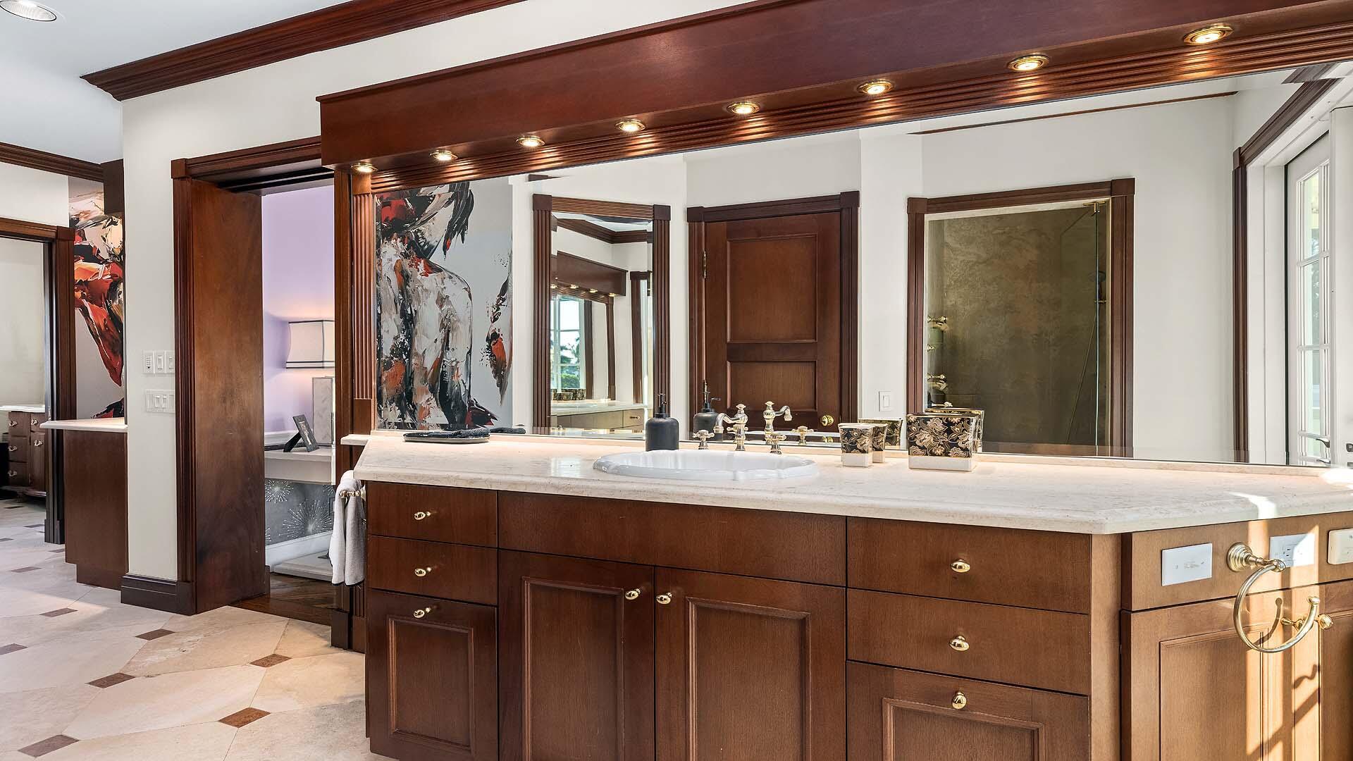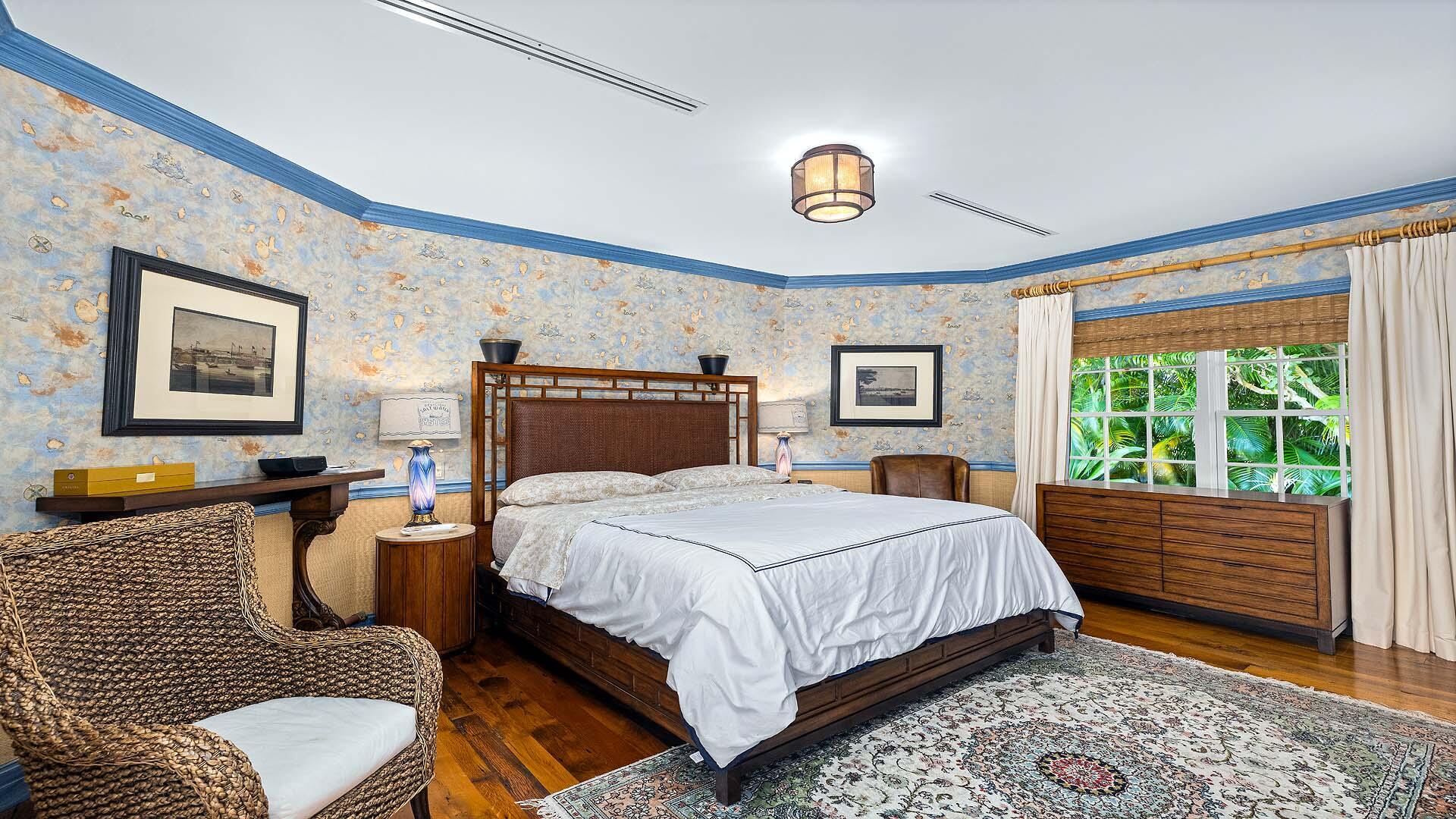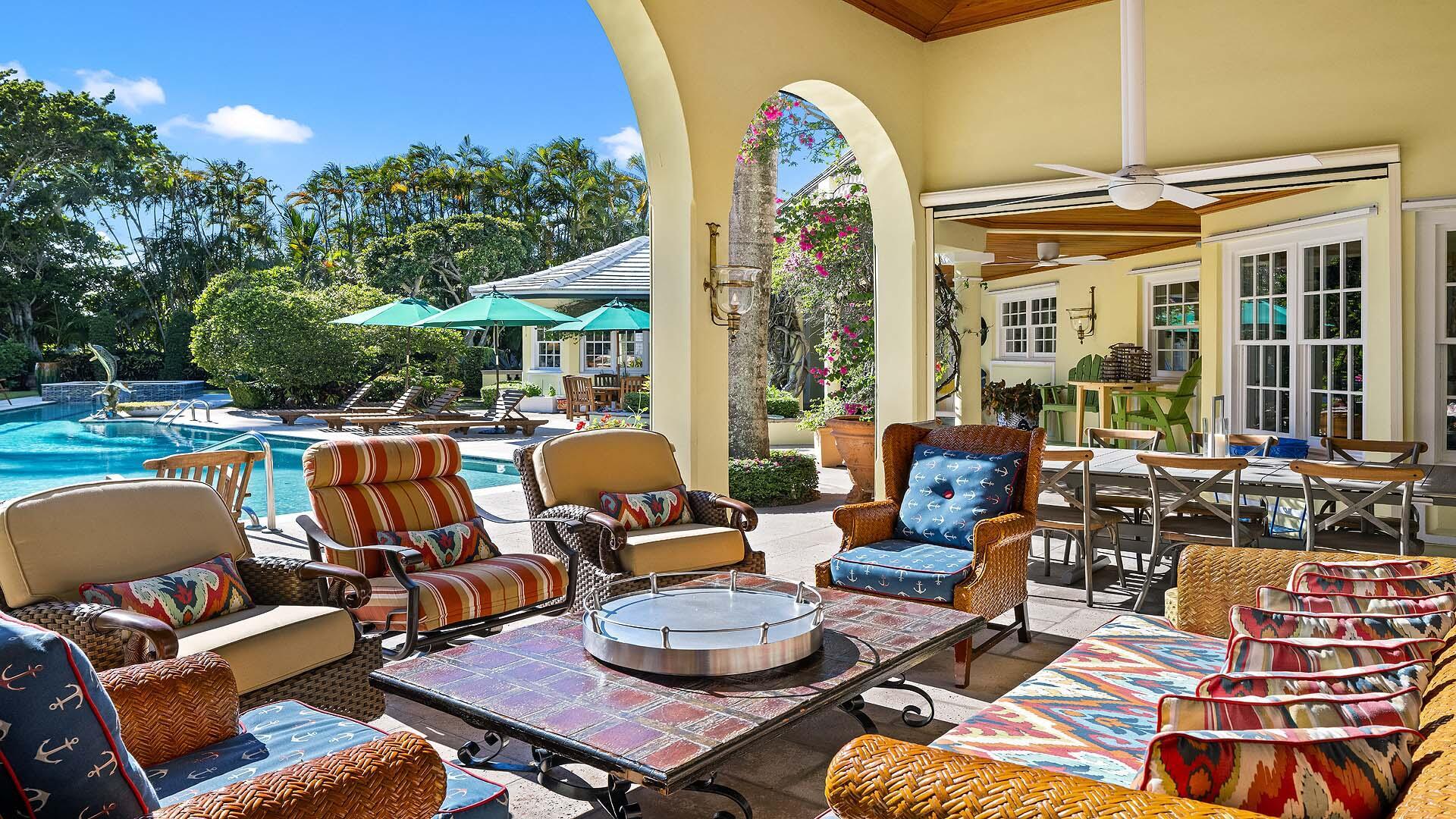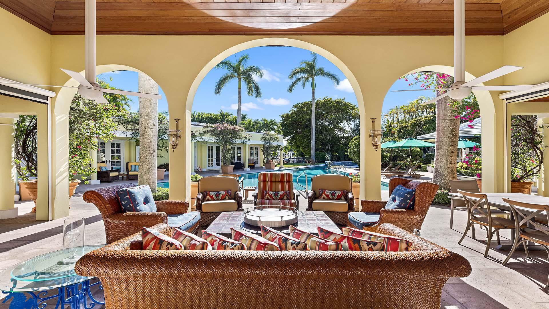 Set on three-quarters of an acre in the heart of Gulf Stream, Palm Beach County's most exclusive seaside enclave, this classic Bermuda-style estate is a rare and remarkable offering that exudes character, privacy, and sophistication at every turn. The residence is offered furnished and includes boat. Surrounded by lush bougainvillea, mature palms, and manicured gardens, the property offers a tranquil retreat just moments from the ocean and Gulf Stream's private beach access, located only a few blocks away. Meticulously updated, the residence reflects timeless architecture and refined living; the kind of home that feels both significant and enduring. With over 6,000 square feet under air and more than 8,400 total square feet, the estate intimate retreats, and seamless indoor-outdoor flow.