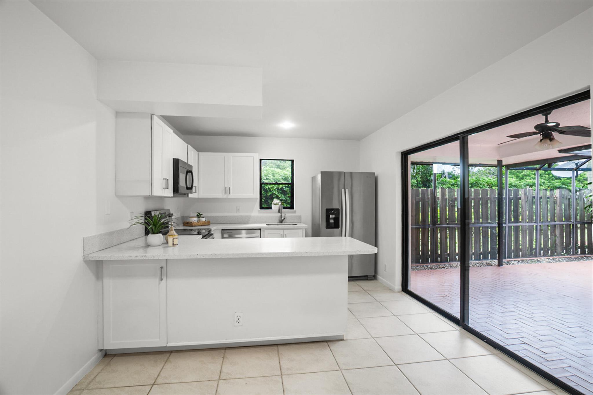 Prime central Boca Raton location! FHA APPROVED...AC & WH 2023! This spacious 3-bedroom, 2.5-bath townhouse offers a comfortable and updated interior with an ideal layout for everyday living. The updated kitchen features quartz countertops and opens to the large screened patio through a sliding glass door. Tile flooring downstairs and upstairs showcases laminate flooring. The downstairs half bath has in-unit laundry. Some photos are virtually staged to illustrate the home's potential! Enjoy the community pool and tranquil small lake. Located just moments from top restaurants, shopping, houses of worship, parks, and major conveniences, this townhome blends lifestyle, value, and sought-after Boca living!