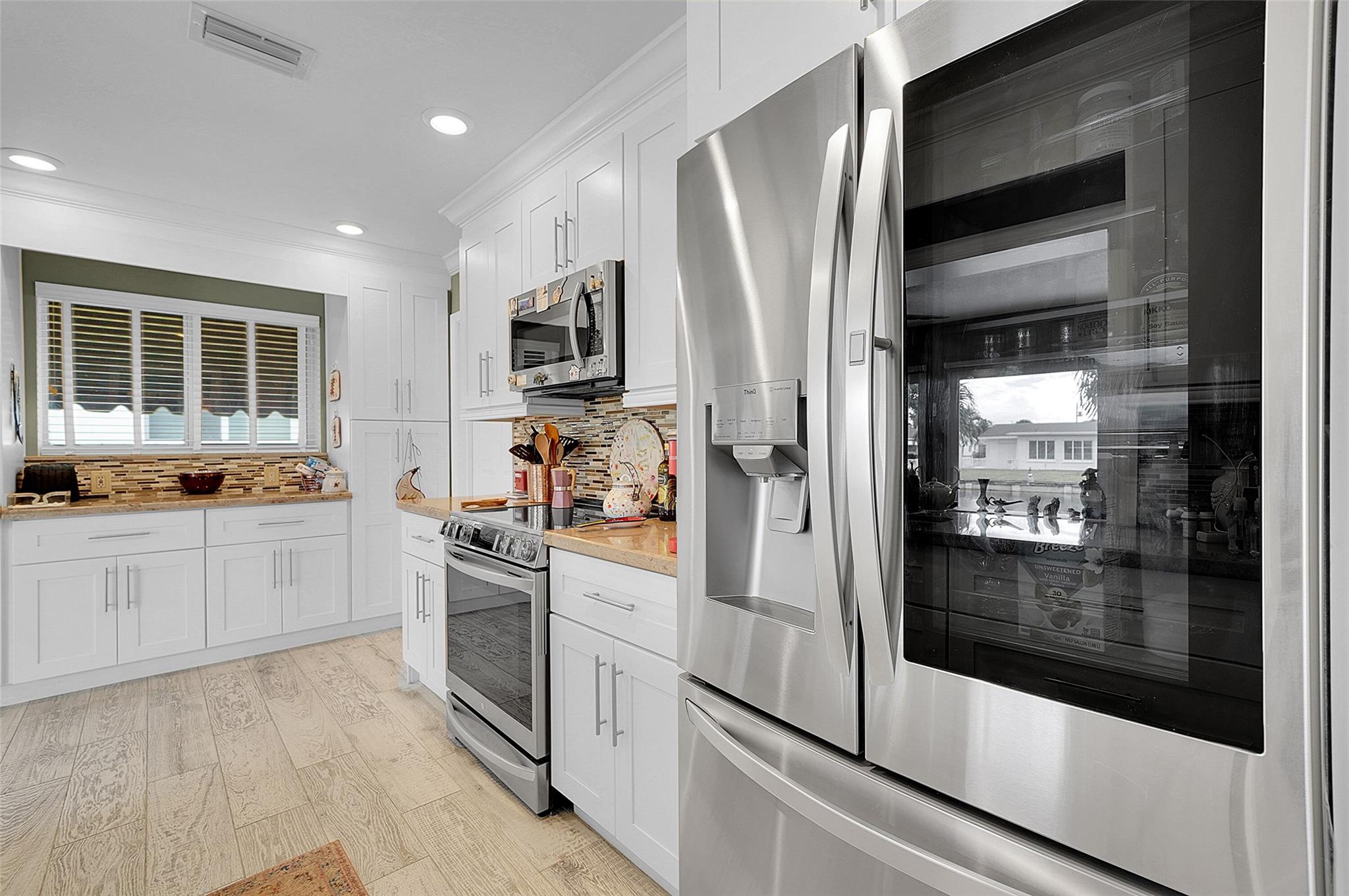 Priced for a quick sale. Wonderfully updated 55+ home with full house Impact windows, including 3 sets of sliders. The kitchen has high end "smart" appliances, crown molding and tall cabinets for lots of good storage. The custom granite sets it apart from others. The enclosed sunroom makes a beautiful setting for a dining room, or office space as well as a family room. Great storage throughout the home. Large bedrooms. Home is located on a dead end street for privacy. See this one first, you will not be sorry.