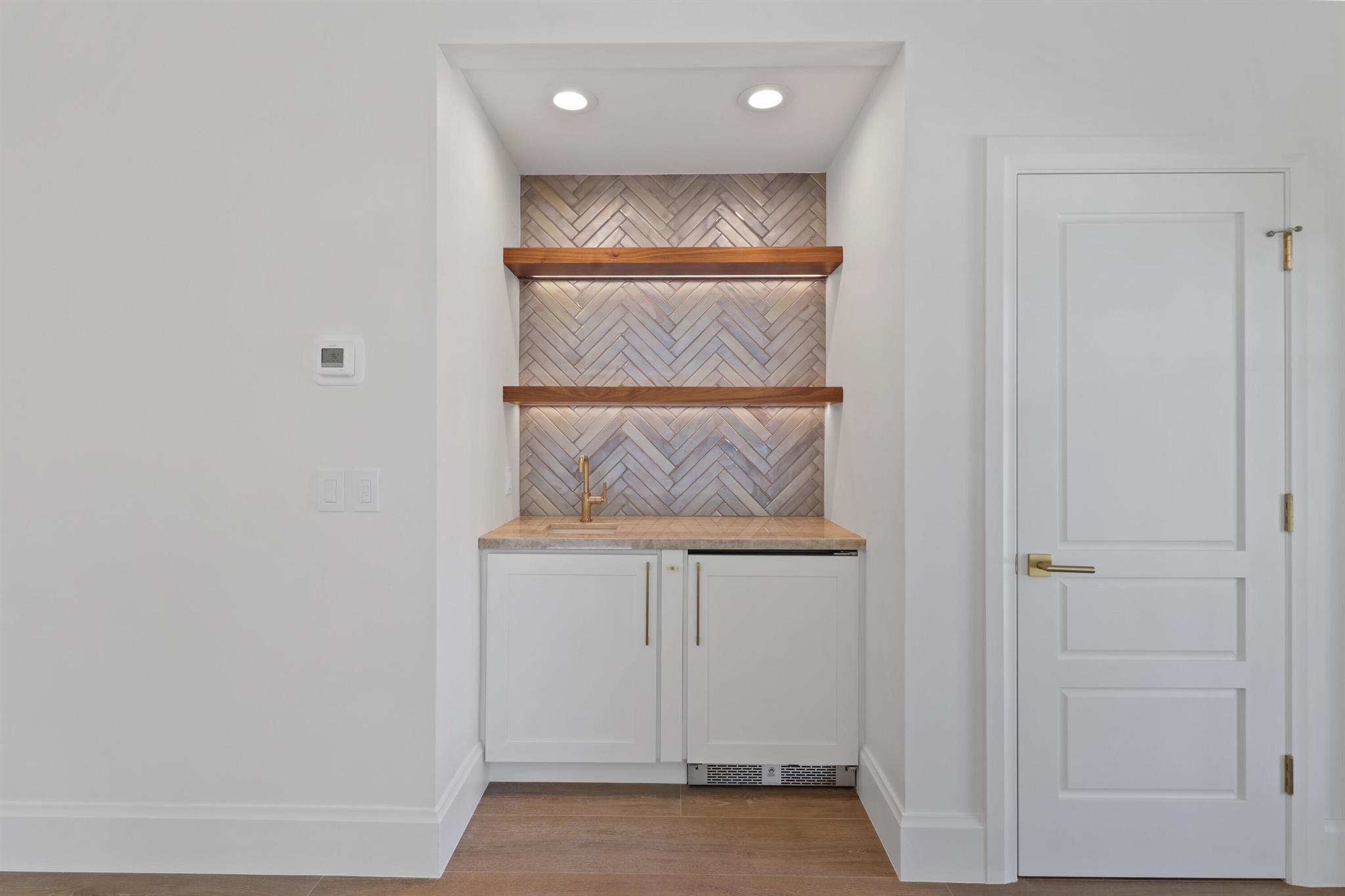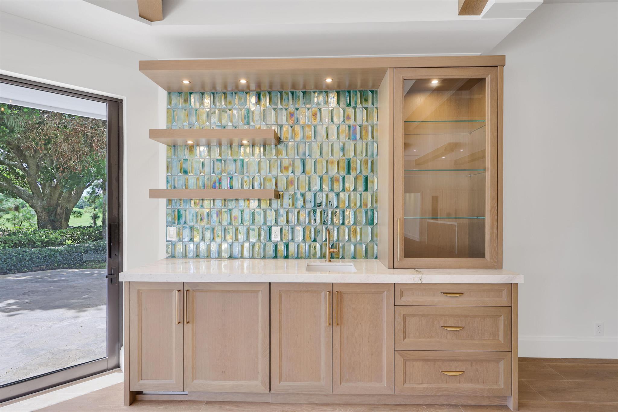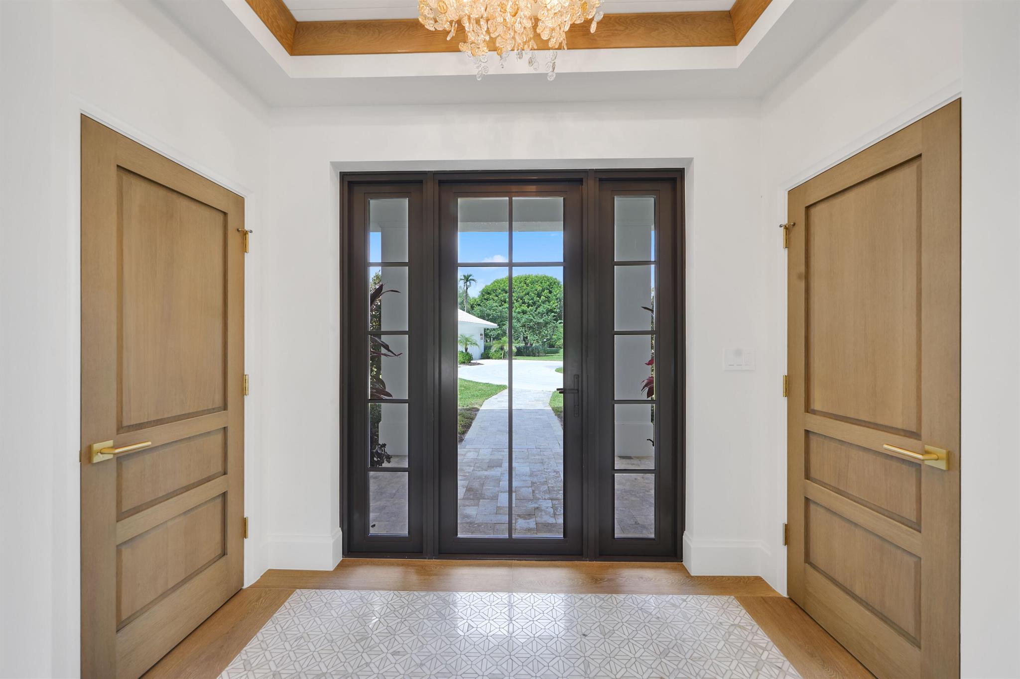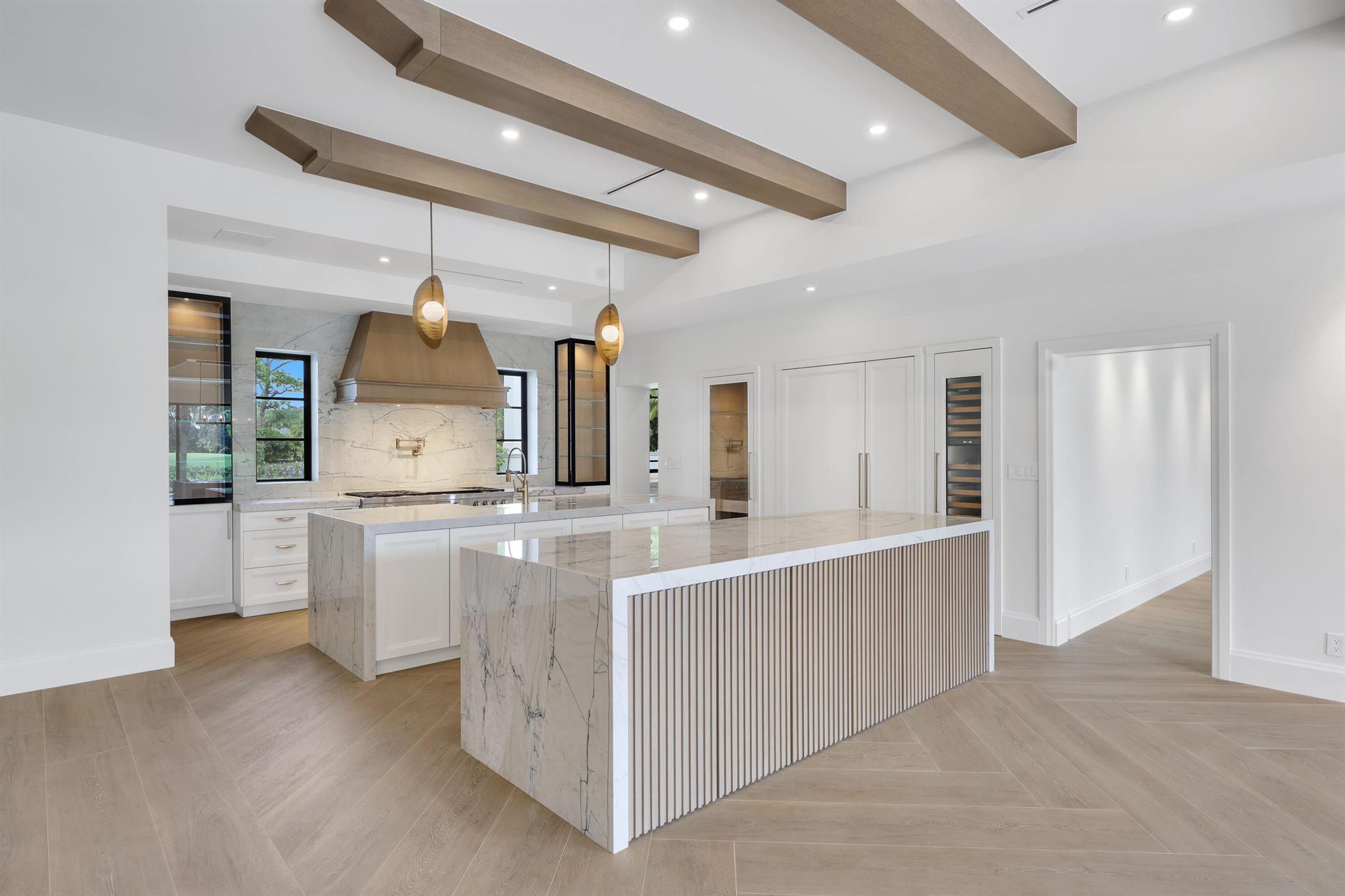 Thoughtfully designed with Bermuda Royale exterior detailing and refined Coastal Moderne interior finishes, this one-of-a-kind custom home offers elegant living with exceptional attention to detail. Grand open-concept living spaces feature soaring ceilings and expansive pocket sliders that open in both directions, seamlessly blending indoor and outdoor living with the lap pool, sundeck, and fountain just steps away. Ceilings throughout the home are maximized in height and adorned with custom rift-cut white oak beams, beautifully stained to highlight their natural character. These warm wood elements are paired with tongue-and-groove accents painted in a soft alabaster satin finish, creating a sophisticated contrast and visual harmony. The home features two luxurious primary suite options