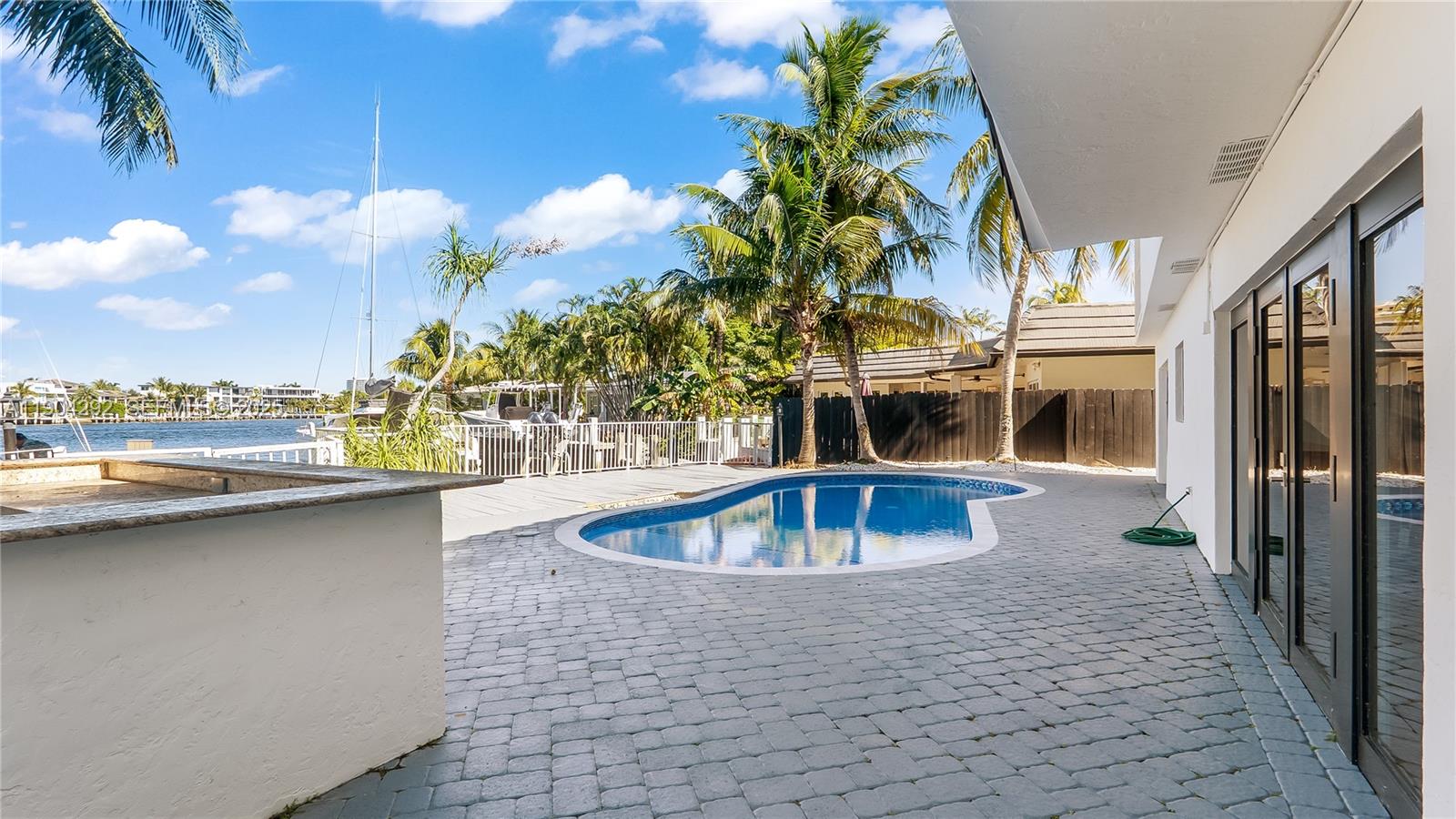 This Rare Waterfront Gem includes 6 LARGE BEDROOMS and 4 Full Baths totaling over 4,400 sq ft. with direct intracoastal and ocean access!! It even includes an additional 7th room which would be perfect for an office. Beautifully remodeled with a Brand new roof, newly renovated pool, impact windows, new paint, new floors, new landscaping, an outdoor kitchen, and the list goes on! A giant backyard which is perfect for entertaining and beautiful views from nearly every room of the house! Just in case of a storm you have a whole home generator which can be powered for weeks! Over 50 feet of water frontage and an extended finger shaped dock giving you direct and easy dockage. Making this is a Boaters Paradise!