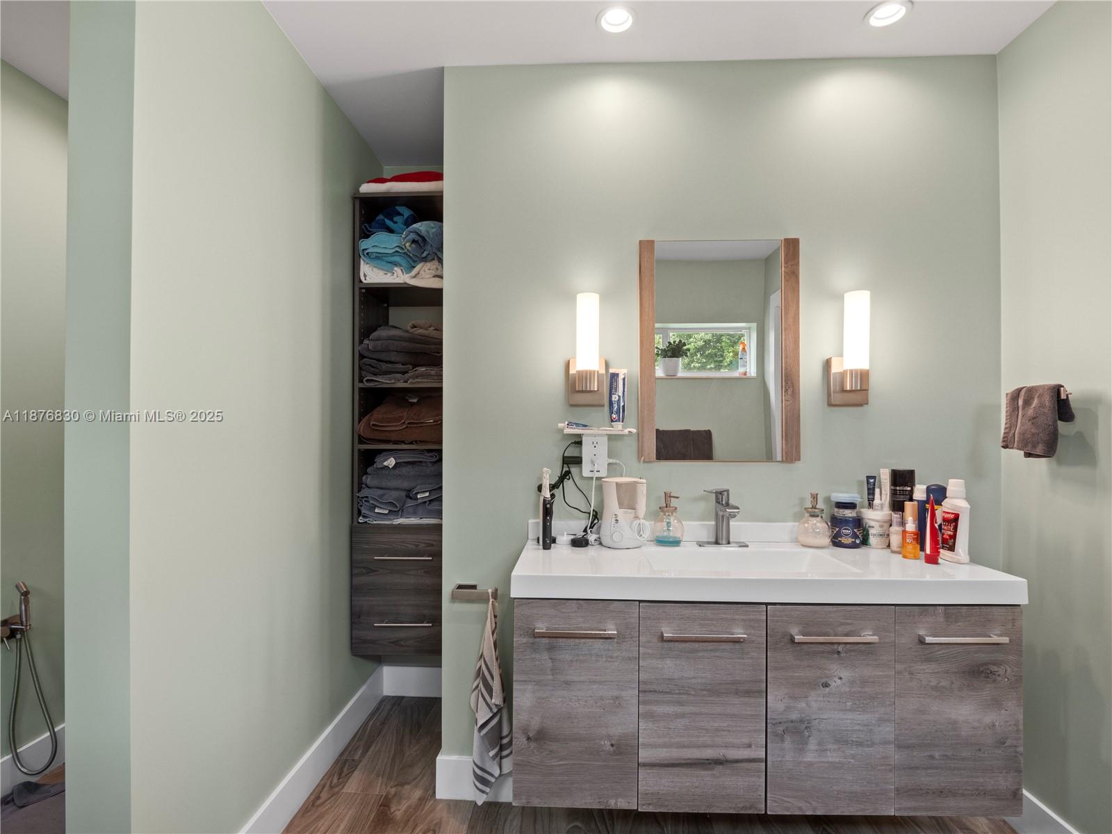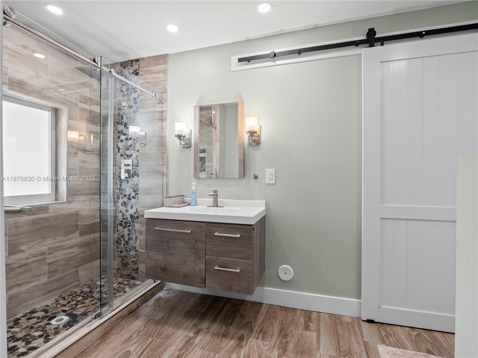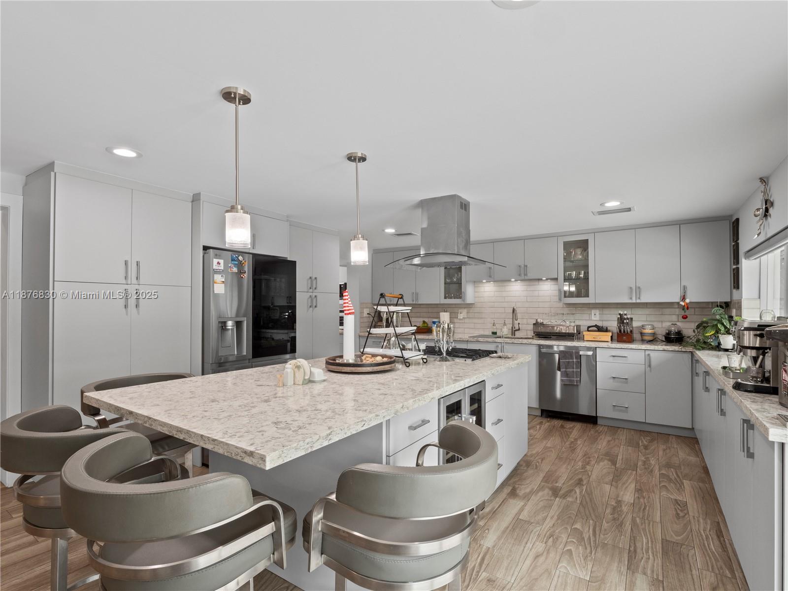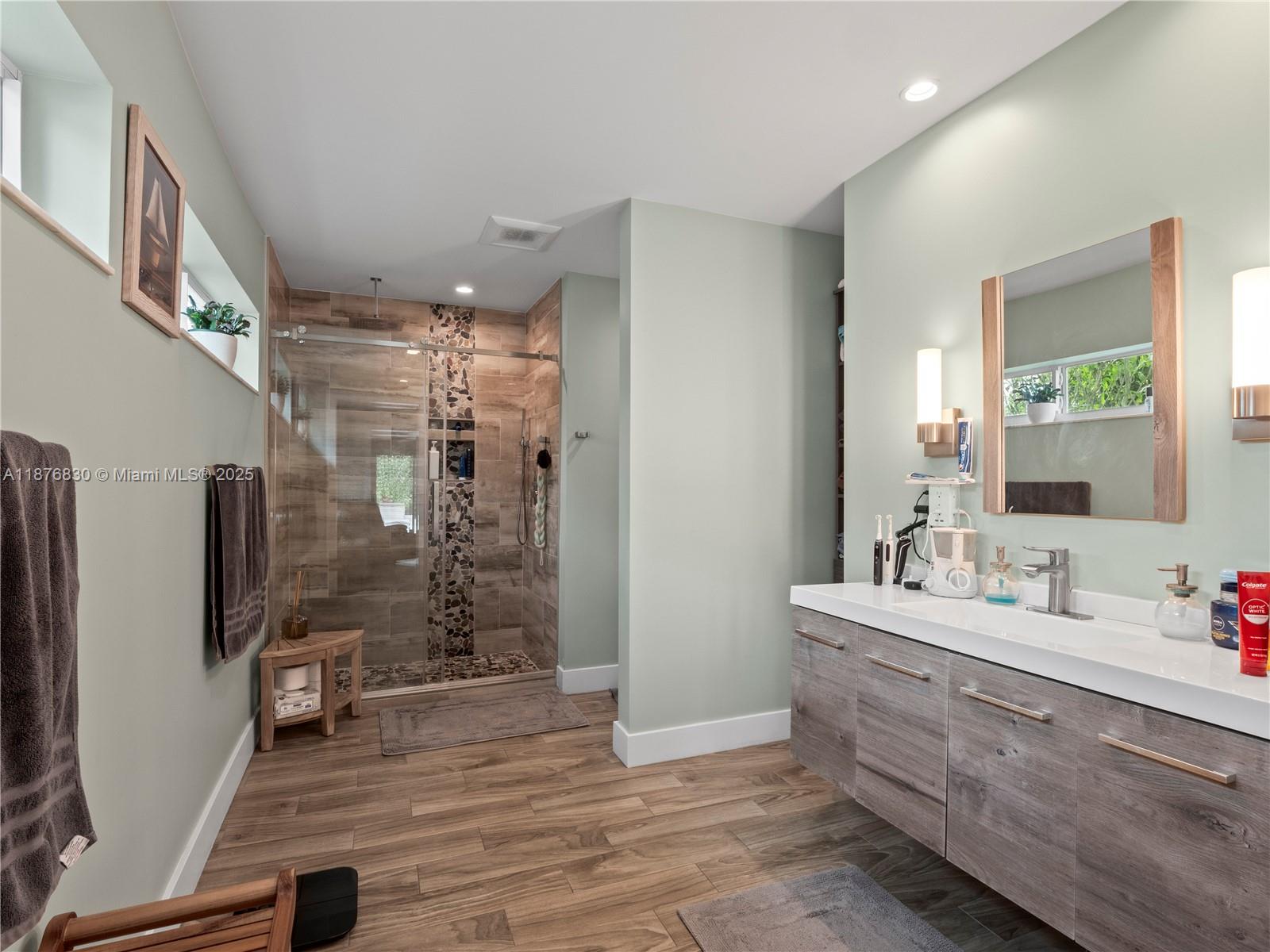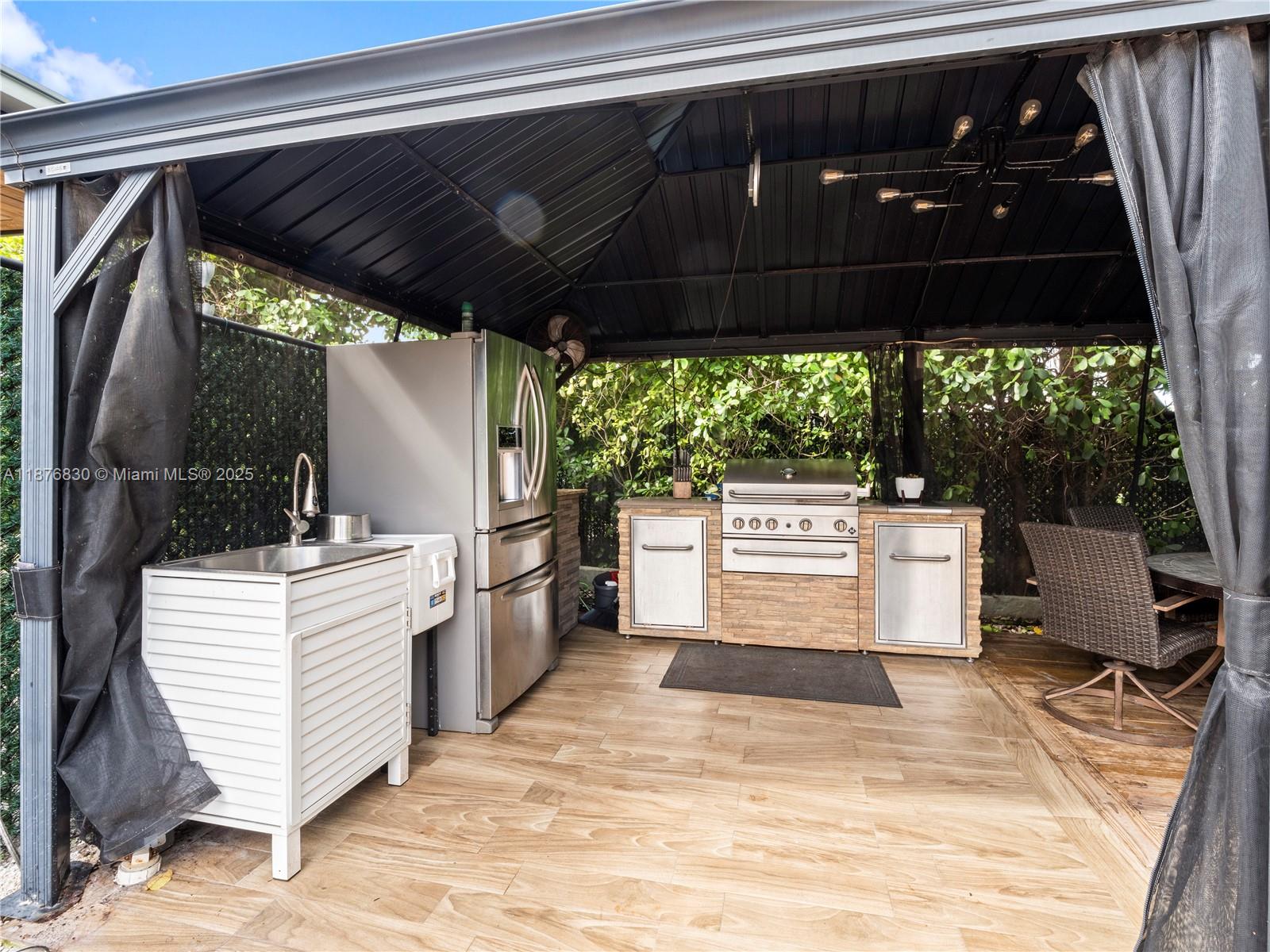DAZZLING HOUSE!!! Located in a tranquil cul-de-sac, this home features 3 spacious bedrooms, each with its own bathroom. The master suite includes an extra room, perfect for a nursery or office. Completely renovated in 2020, the house boasts a new kitchen, bathrooms, flooring, ceilings, walls, updated plumbing, electrical, internet wiring, and A/C ducts. It is equipped with a gas stove, water heater, and clothes dryer. The open-concept layout seamlessly connects the living, dining, and kitchen areas, along with a pantry, laundry room, and office. Outdoors, enjoy a private oasis with a pool, gazebo, outdoor bathroom, gas grill kitchen, fruit trees, and ample parking. Move-in ready, this home is ideal for families and entertaining.