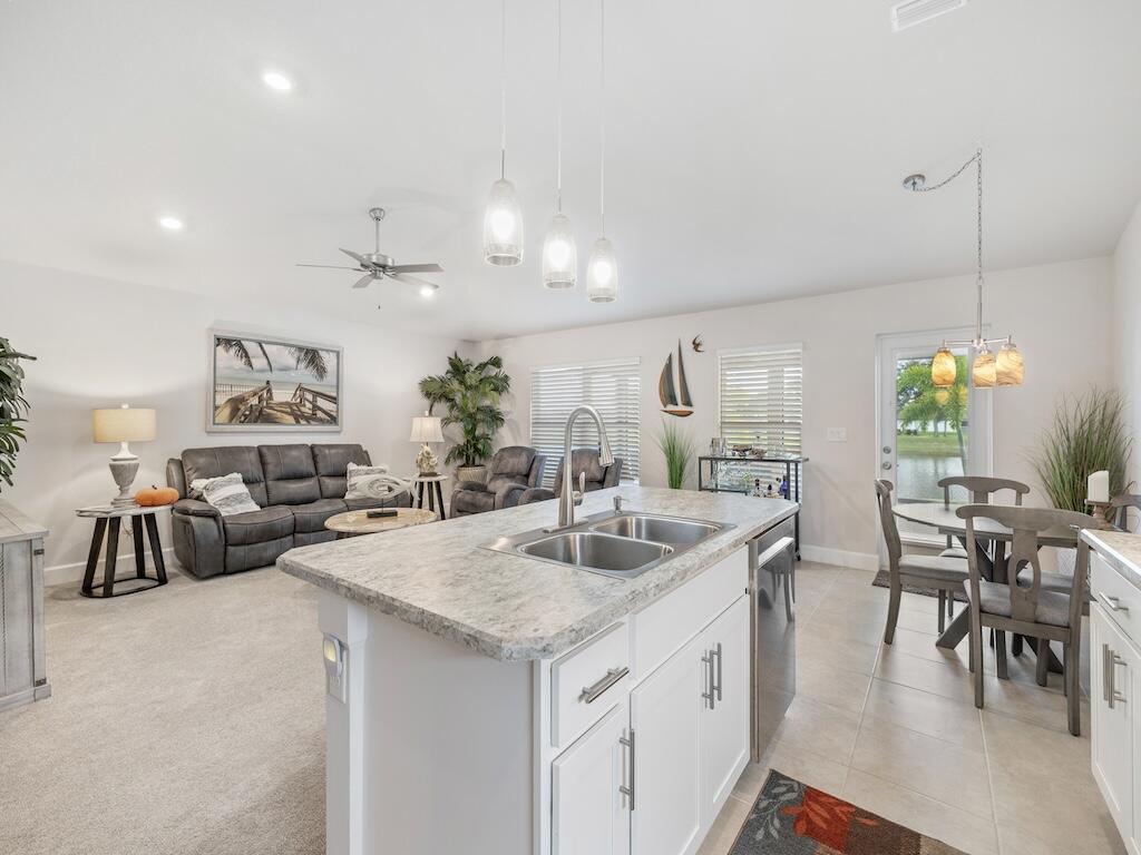 Fully furnished and turnkey! This beautifully 2022-built waterfront home features an oversized 3-car insulated garage with keypad access, new LG appliances, vaulted ceilings, new blinds, and an updated walk-in shower. Enjoy a deeper kitchen sink with under-cabinet lighting and a screened patio overlooking the water--perfect for relaxing or entertaining. Move-in ready with every detail done--just bring your suitcase!