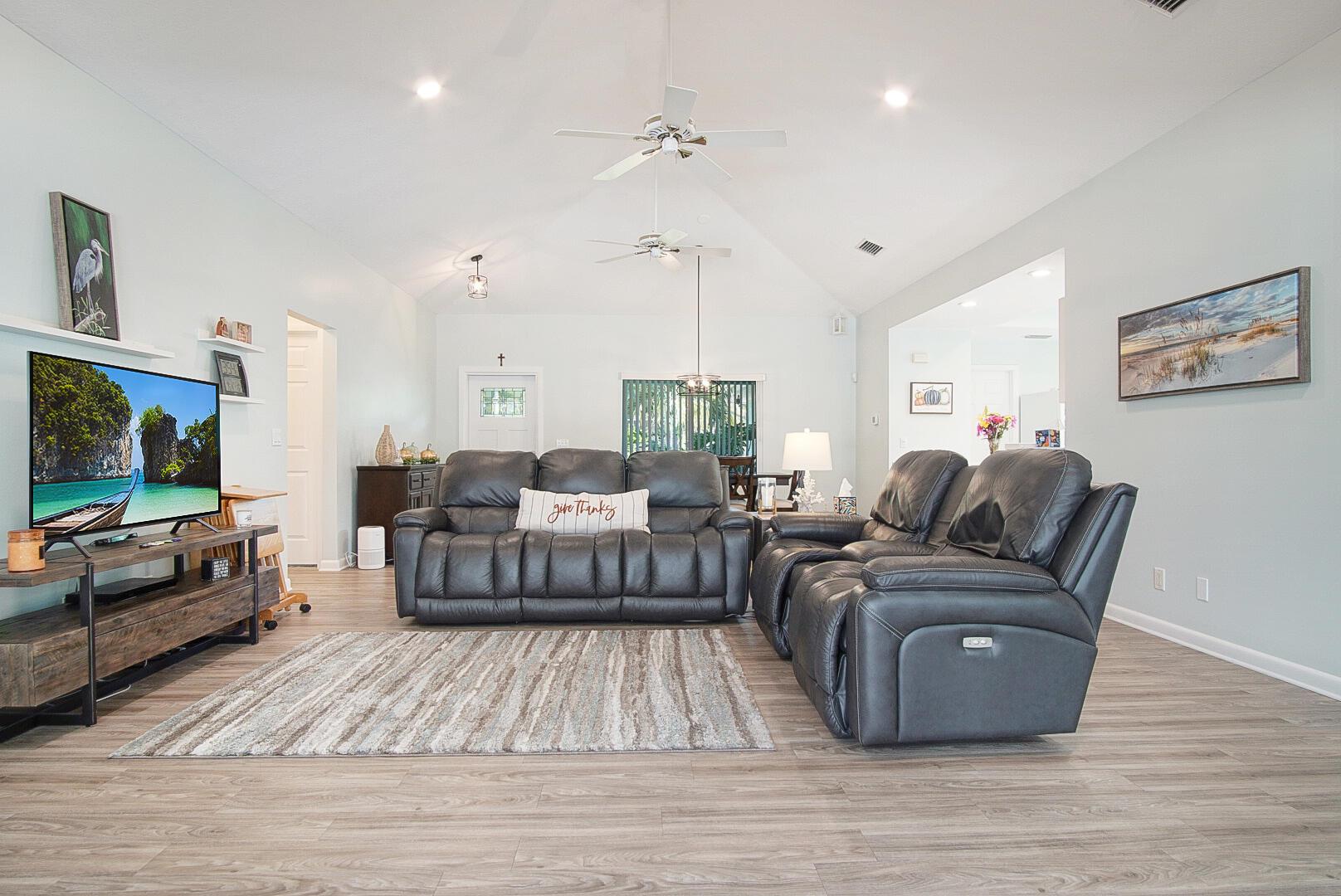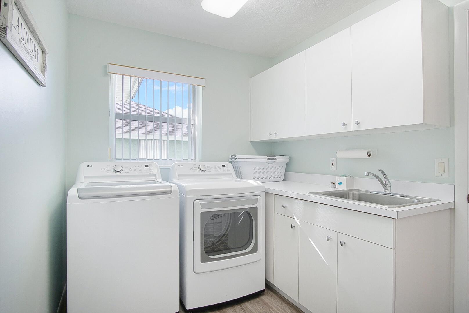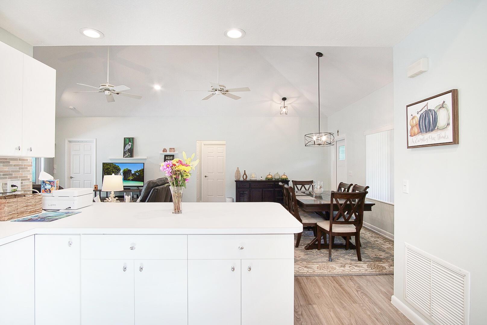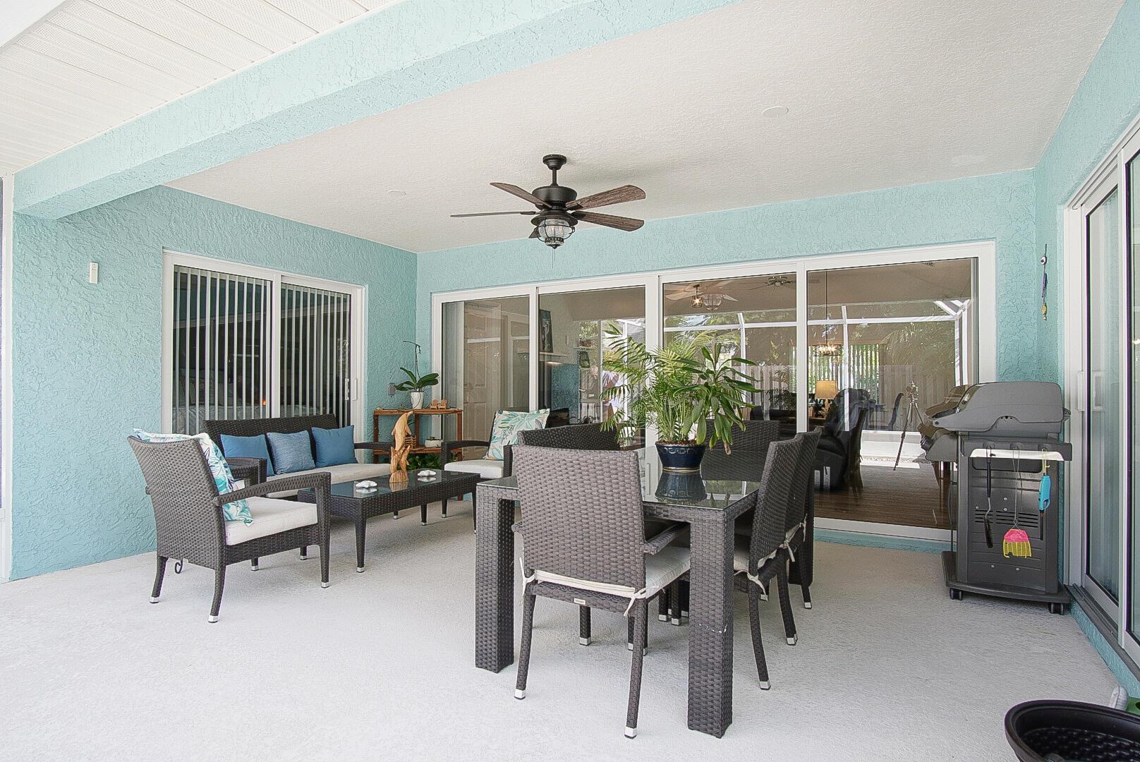 Super Clean, partially upgraded 3/3/2 home in deisrable Zeus Park neighborhood just 1-1/2 miles to beach. Vaulted ceilings, overhead lighting, lots of windows and wall to wall sliders opening to outside covered patio, expand the living space. The home boasts 2 Master Suites, vinyl flooring, lots of cabinets and prep space in white kitchen with Breakfast Bar, 2022 Bottom Freezer Refrigerator, 2024 Washer / Dryer, w/warranties, 2025 New Hurricane Impact Windows/Sliders, 2025 R38 Insulation added. Move-In ready!! Residents of this area can walk/bike to beach,restaurants, shops, parks and have many options for golf and boating. Residents have private boat ramp rights through the Hobe Sound Boat & Dock Assoc, public tennis, pickleball, racquetball, soccer & baseball fields. Florida living!